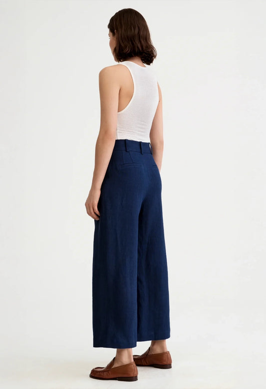 Linen Cropped Pleated Trouser