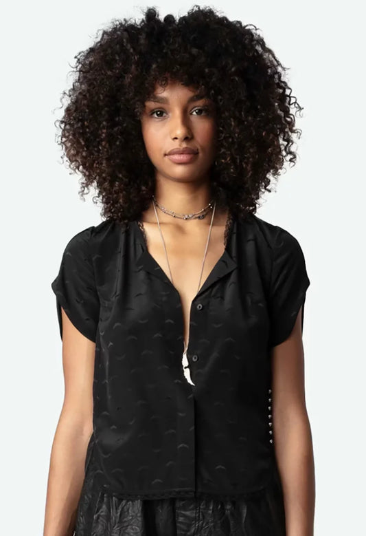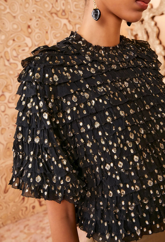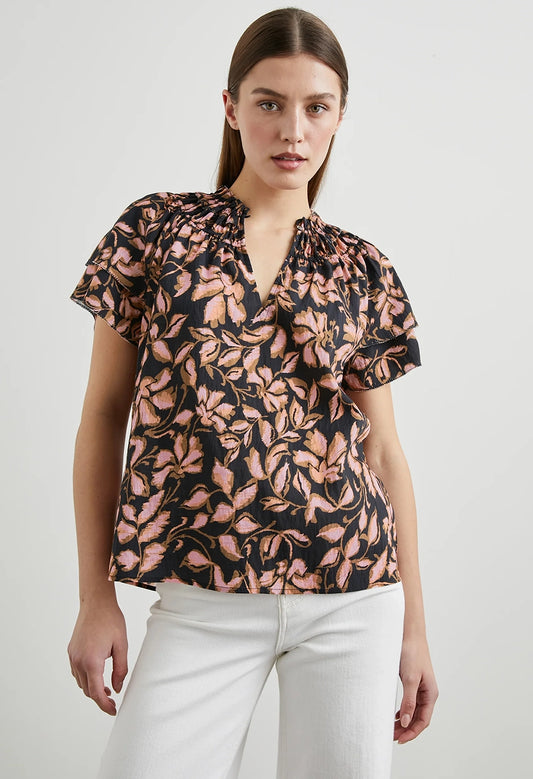 Betty Printed Silk Cotton Voile Long Sleeve Top