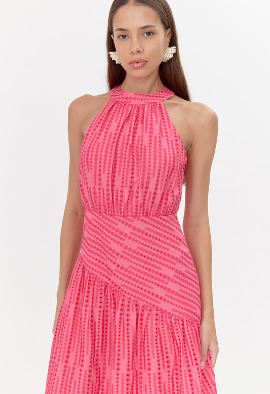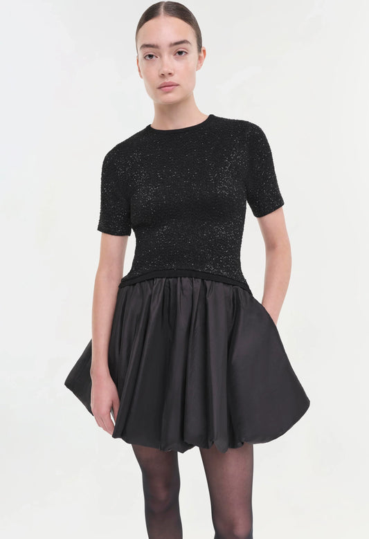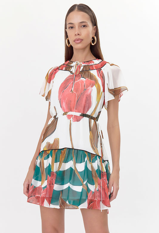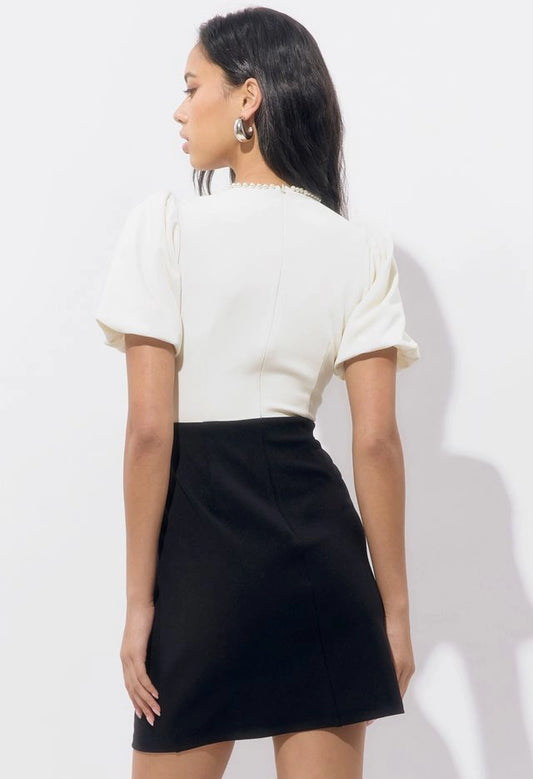 Kenz Short Sleeve Knit Combo Ruffle Mini Dress