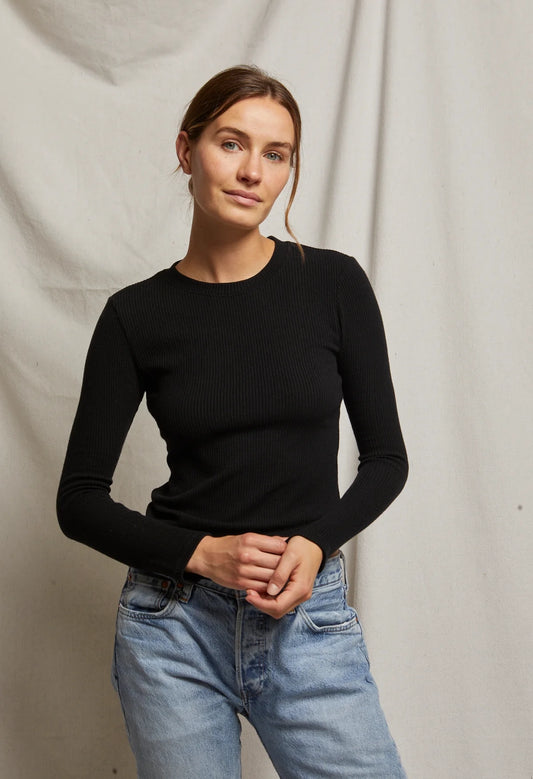 Jolie Sweater Rib Crew Neck Long Sleeve Top