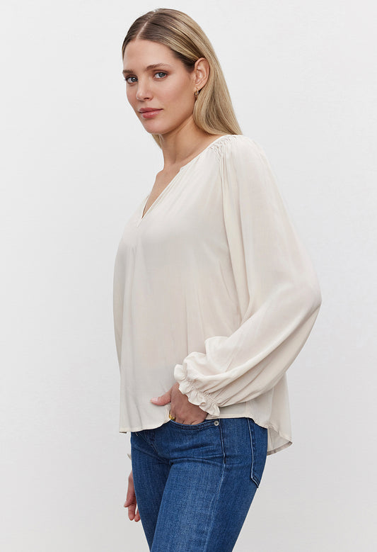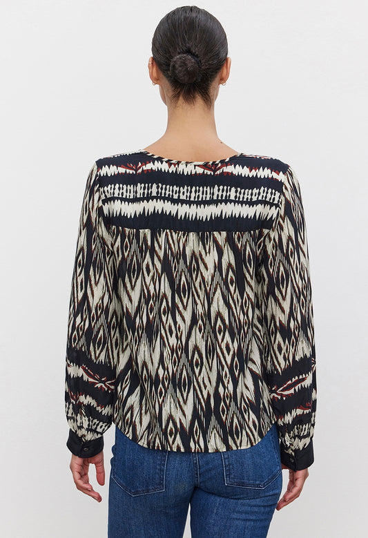 Betty Printed Silk Cotton Voile Long Sleeve Top