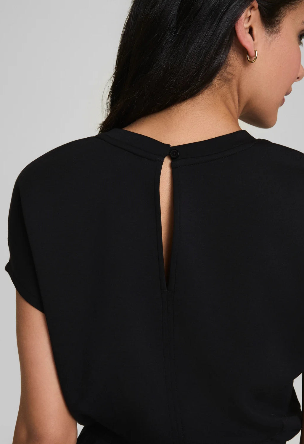 The SPANX AirEssentials® Cap Sleeve Cinched Jumpsuit is crafted from our lightweight, breathable, and ultra-soft spacer fabric. Designed with a crew neckline, cap sleeves, and angled front pockets, it includes a tie waist that enhances your silhouette. Whether dressed up or casual, this versatile jumpsuit offers a convenient, stylish option that suits any occasion effortlessly.