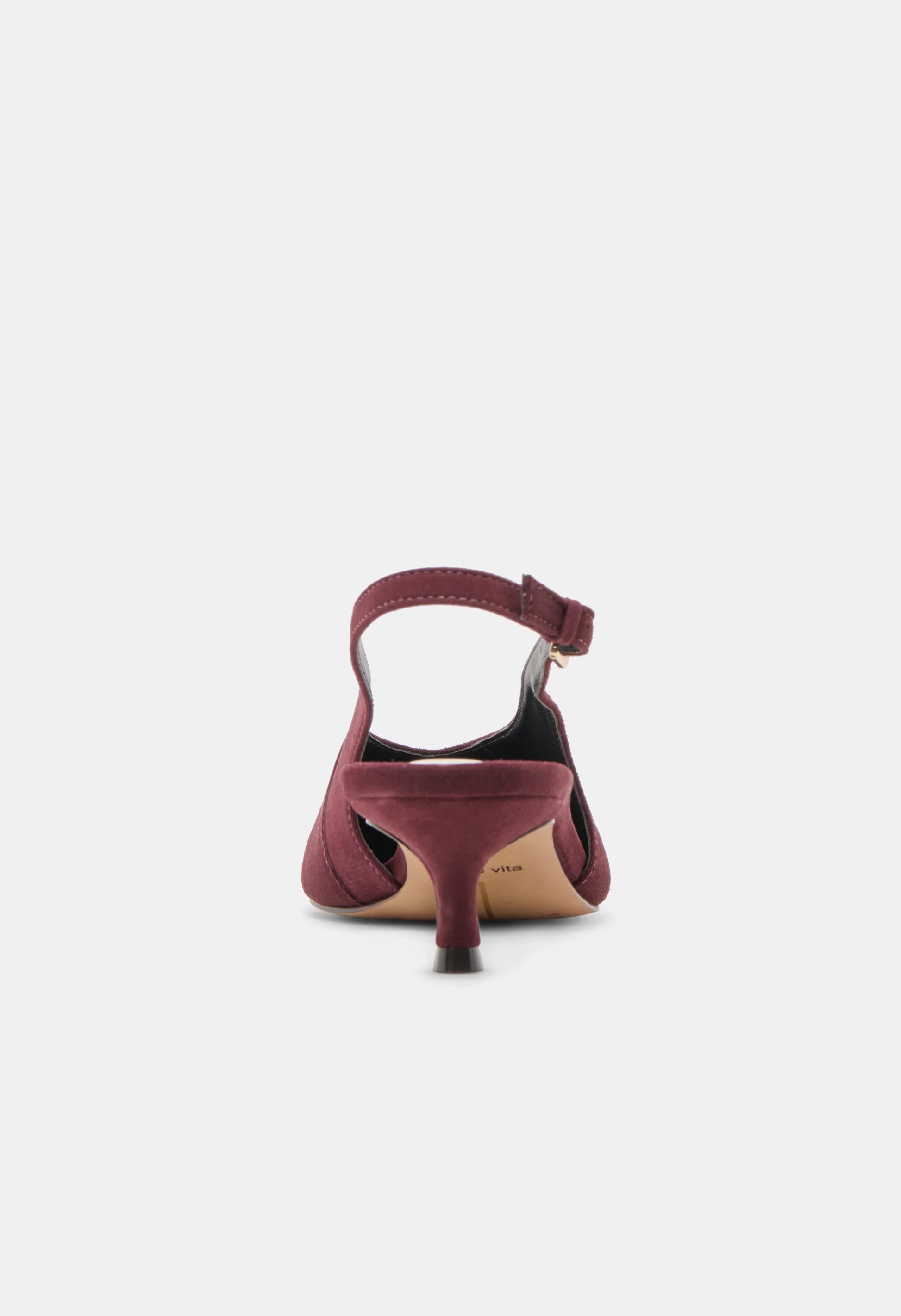 ALENNA features a minimalist sling-back silhouette with a streamlined appearance. Its low kitten heel ensures comfortable wear, while the V-shaped cutout and pointed toe add a refined touch. Perfect for the office or elegant evenings, ALENNA offers a simple yet sophisticated style.