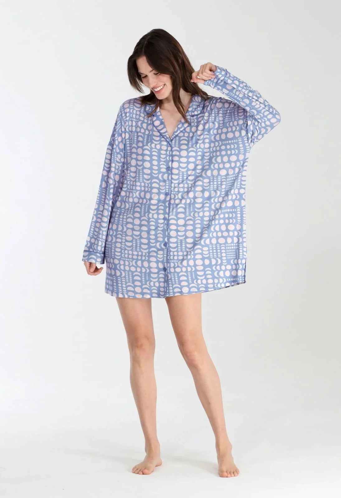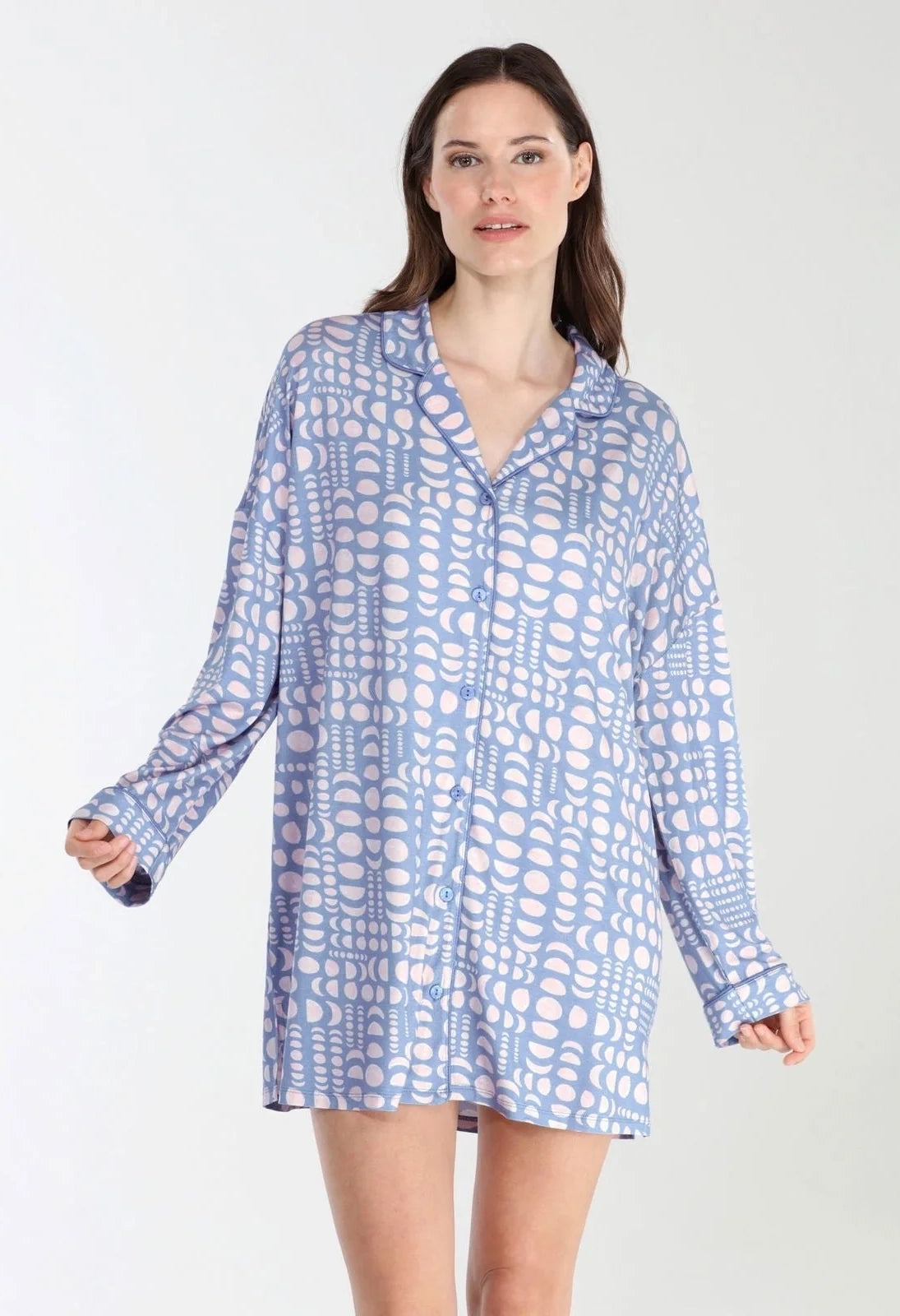 An oversized sleepshirt with a notch collar button down long sleeve - for a perfect sleep!