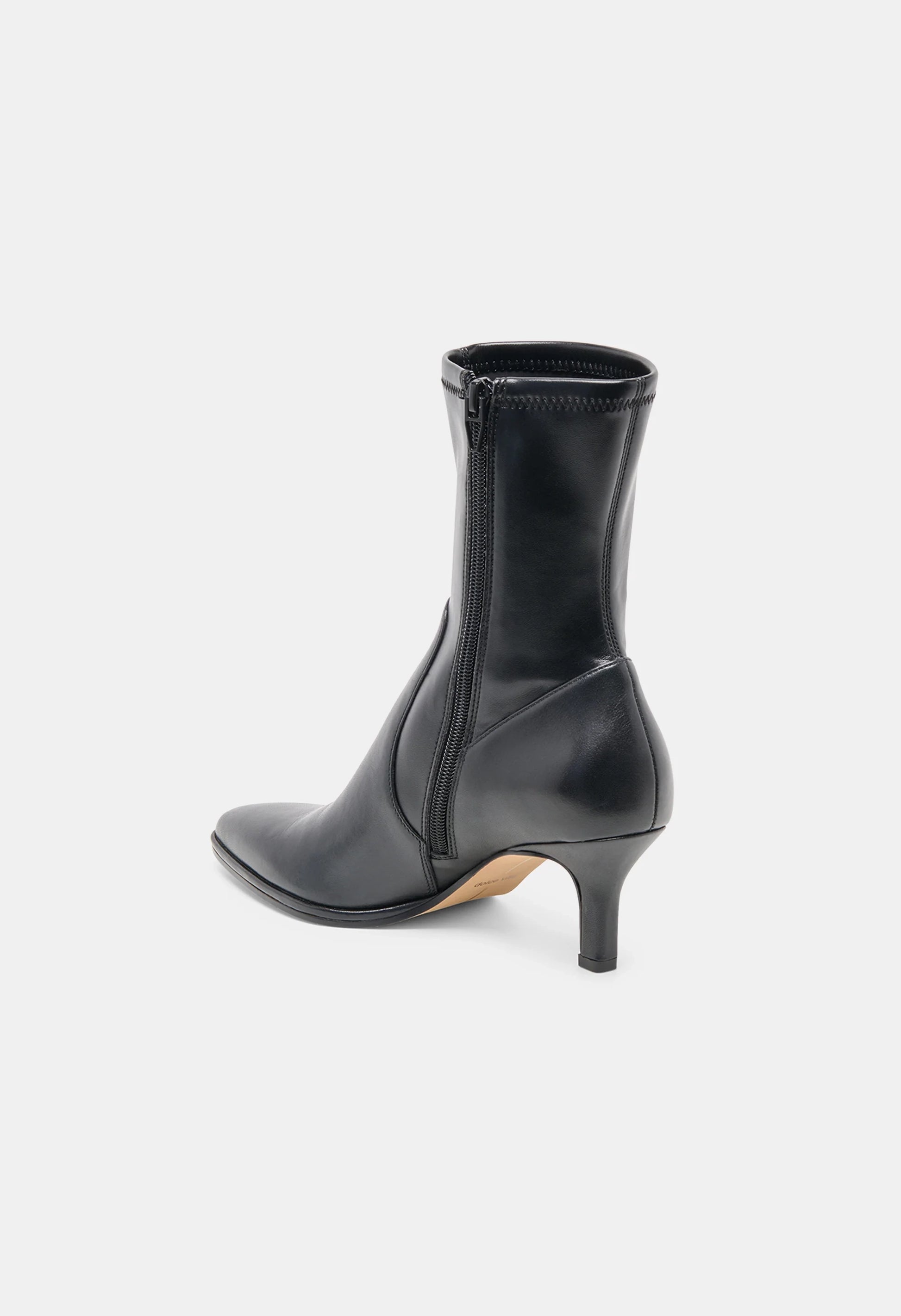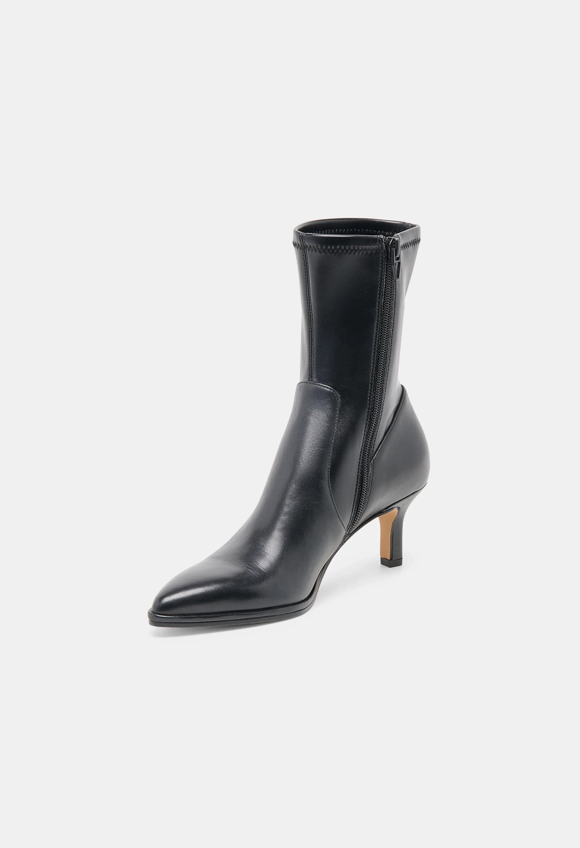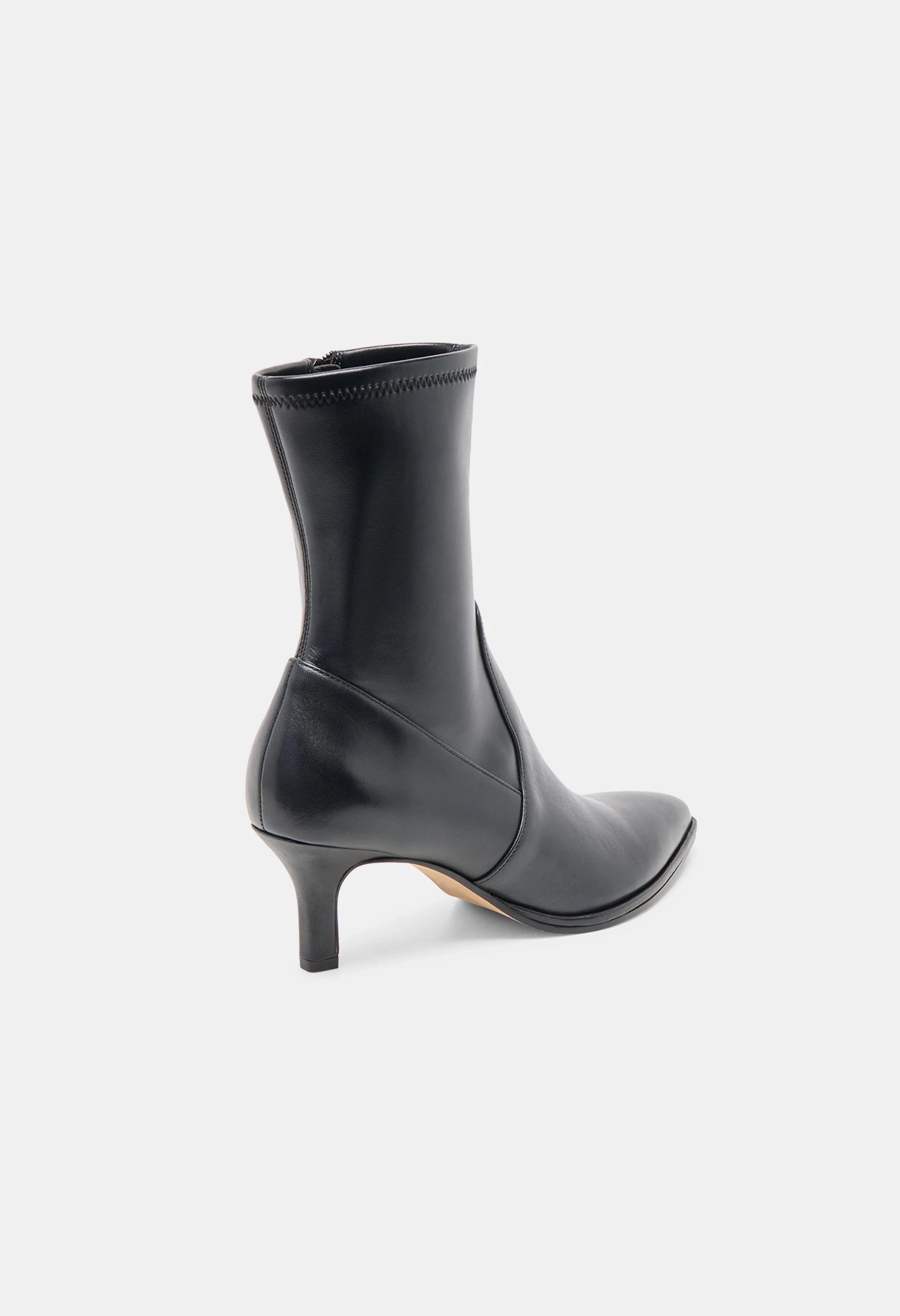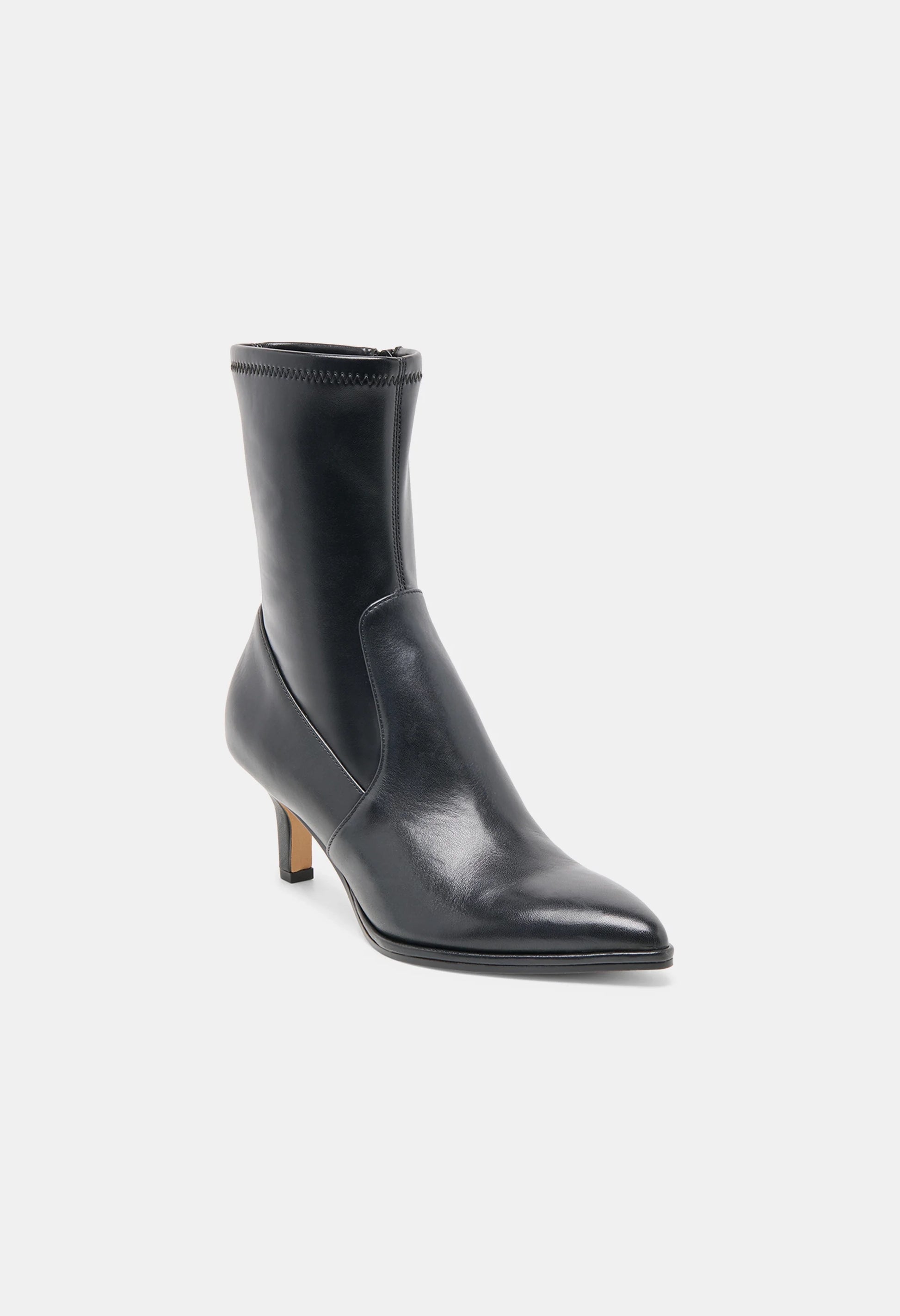 Slightly western and entirely sleek. AMARA’s pointed toe and subtle stitching detail give this heeled fitted bootie a little edge.