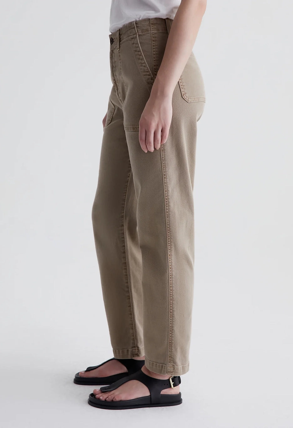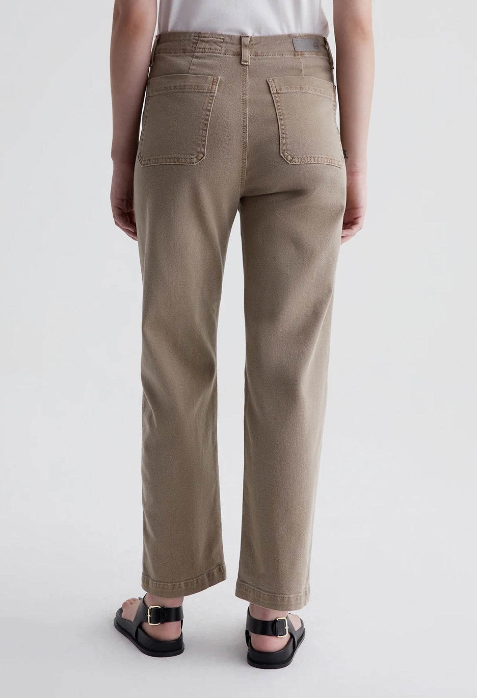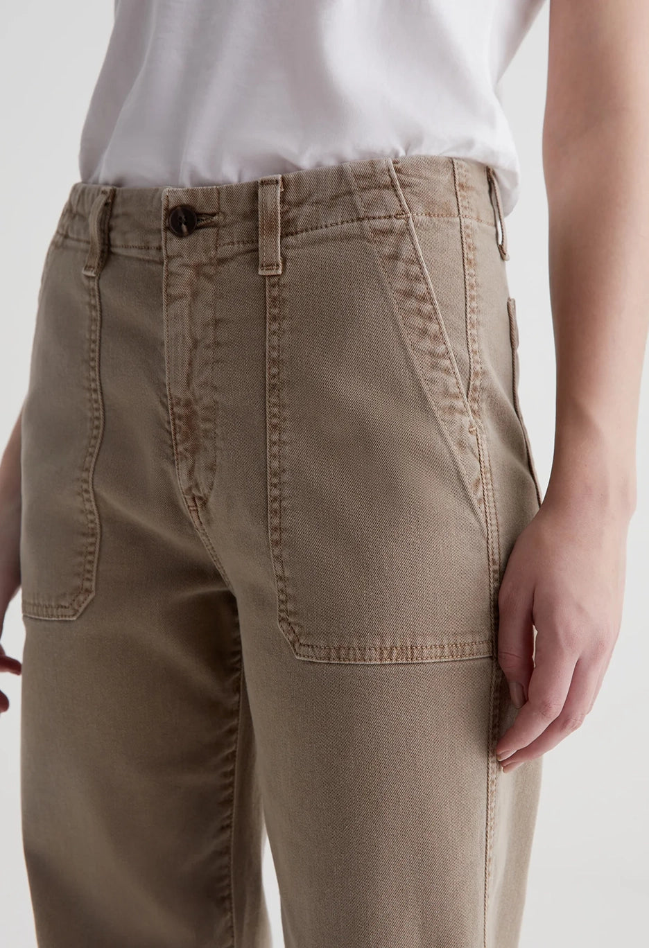 The Analeigh is the new high-rise straight crop in AG Cloud Soft Denim™ that's been sulfur-dyed for a faded khaki shade. This ankle-baring style sits high on the natural waist and features a straight-leg silhouette with workwear-inspired pockets. It's made from 8.7 oz. Hyper Soft Bull Denim, a left-hand twill fabric that allows the yarns to gently relax and untwist for a supple, velvety-soft feel. Designed for increased softness with every wear, the fabric has superstretch construction for ultimate comfort and enhanced recovery.