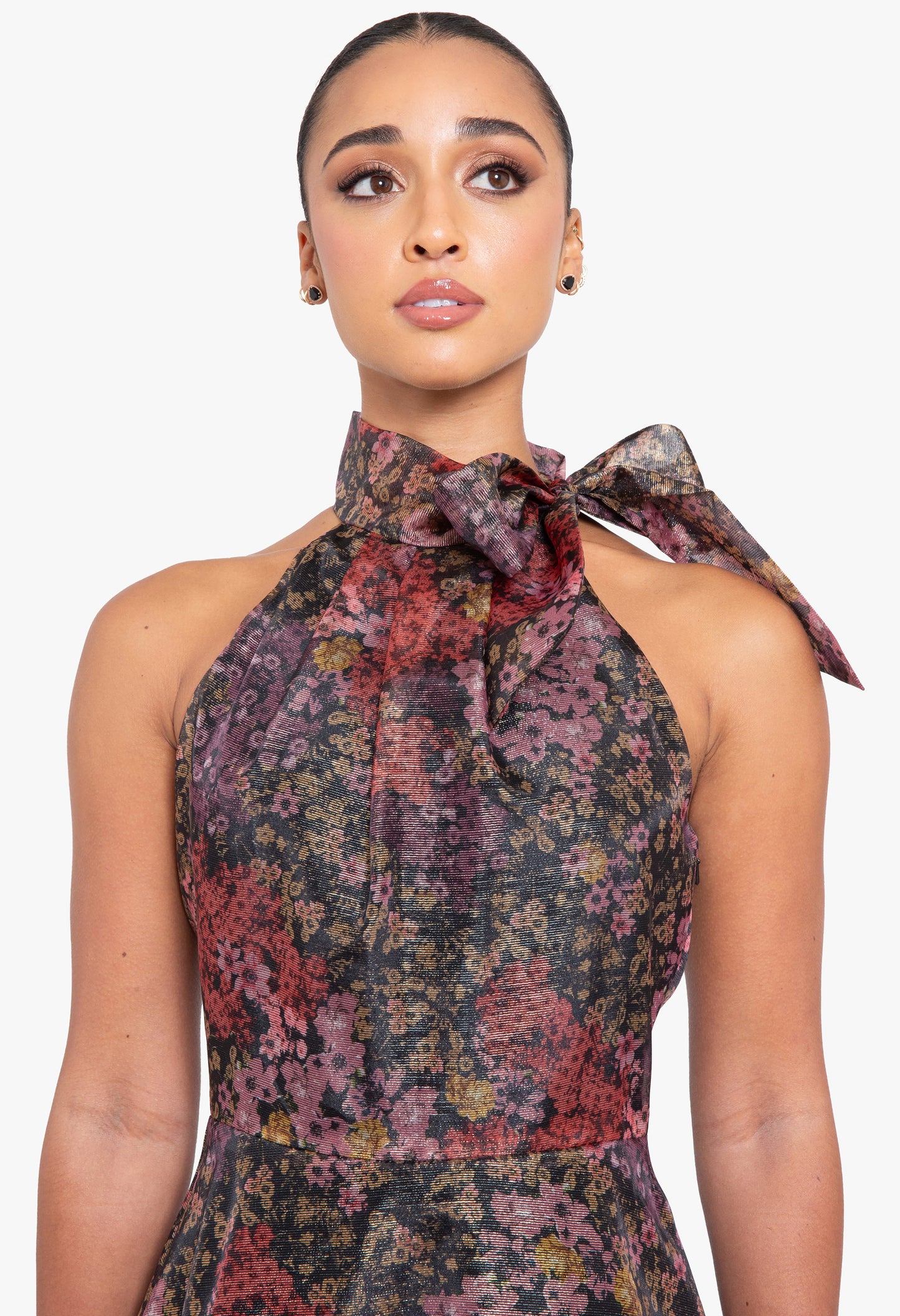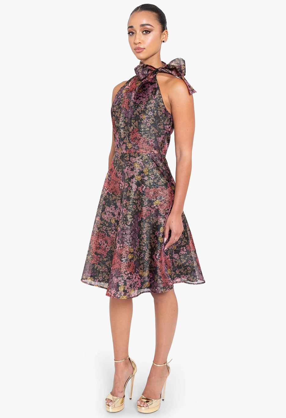 Elevate your evening with this captivating cocktail dress. Designed to highlight your silhouette with a flattering halter neckline and a stylish tie detail, this dress exudes elegance with a twist.