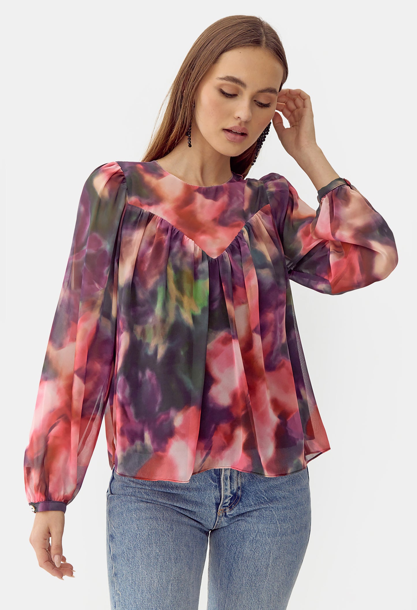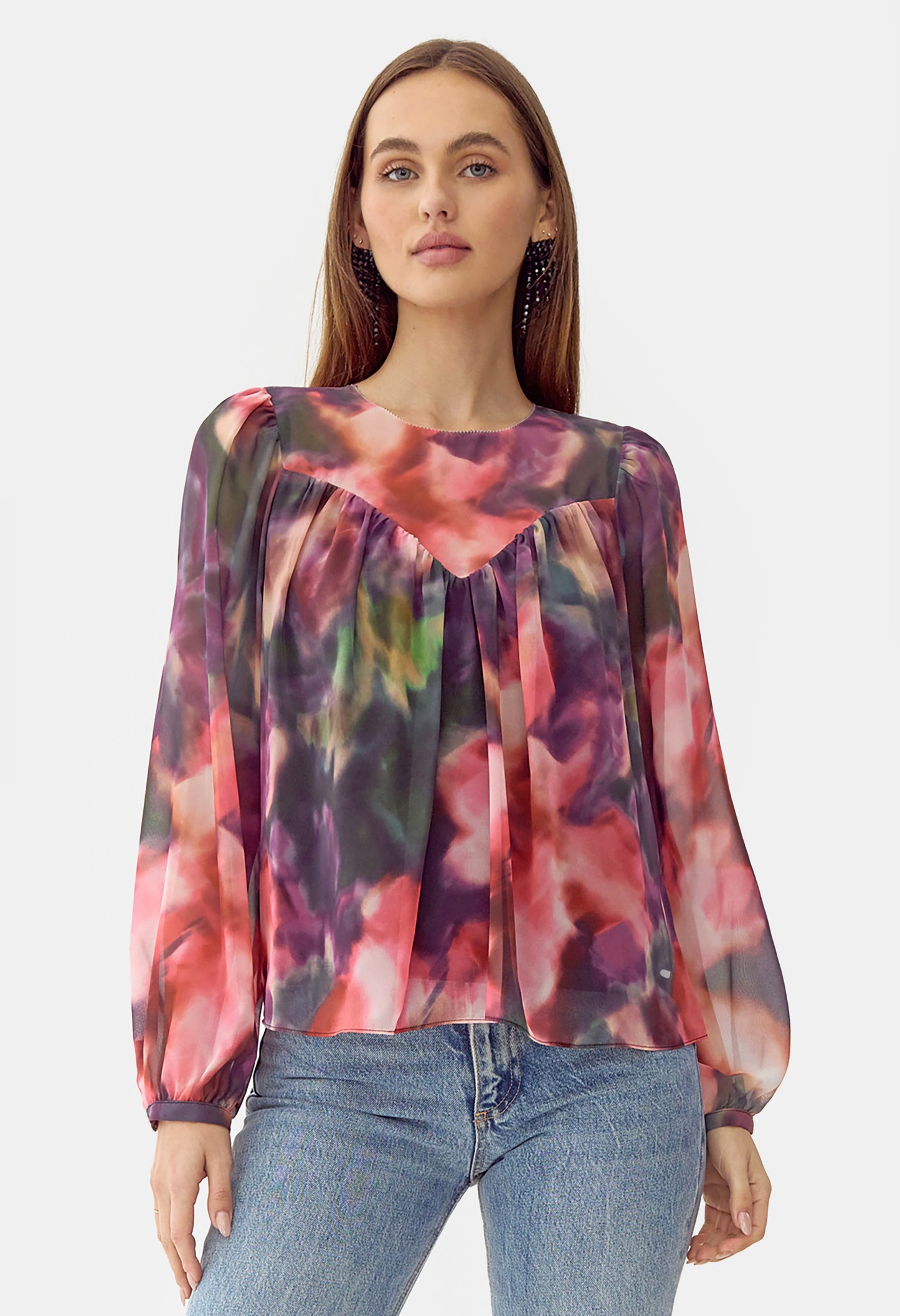 This long-sleeve floral blouse offers a touch of elegance to any outfit. With a delicate floral pattern, it adds a feminine touch while the long sleeves provide coverage to keep you comfortable. Perfect for dressing up for any occasion, this blouse is a versatile and stylish addition to your wardrobe.