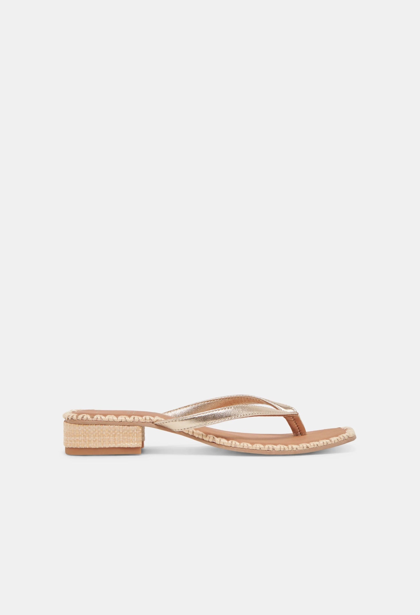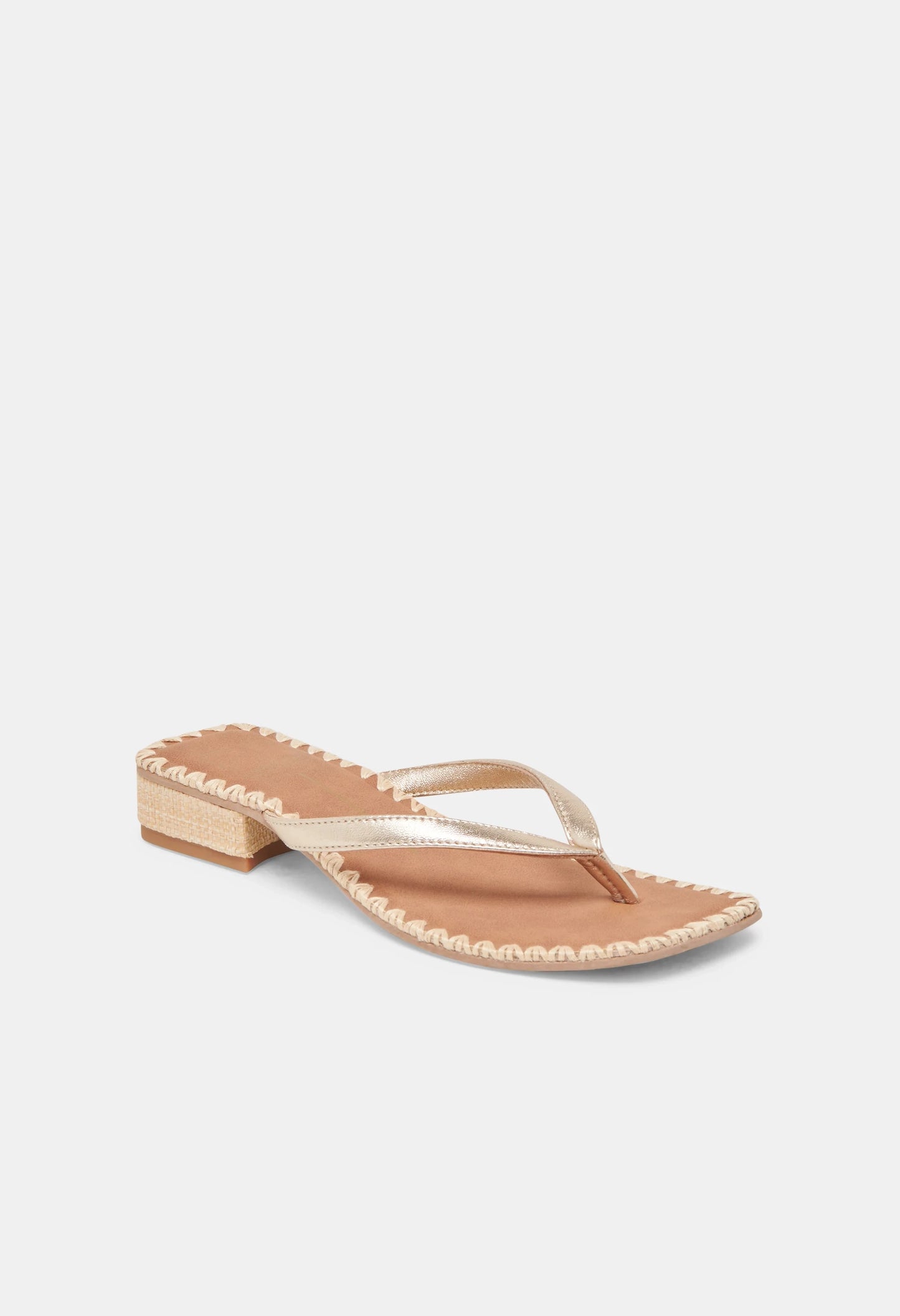 Barty is a sophisticated twist on the timeless flip-flop, featuring a square toe, stitching accents, and a subtle low block heel. It's effortlessly stylish and comfortable.