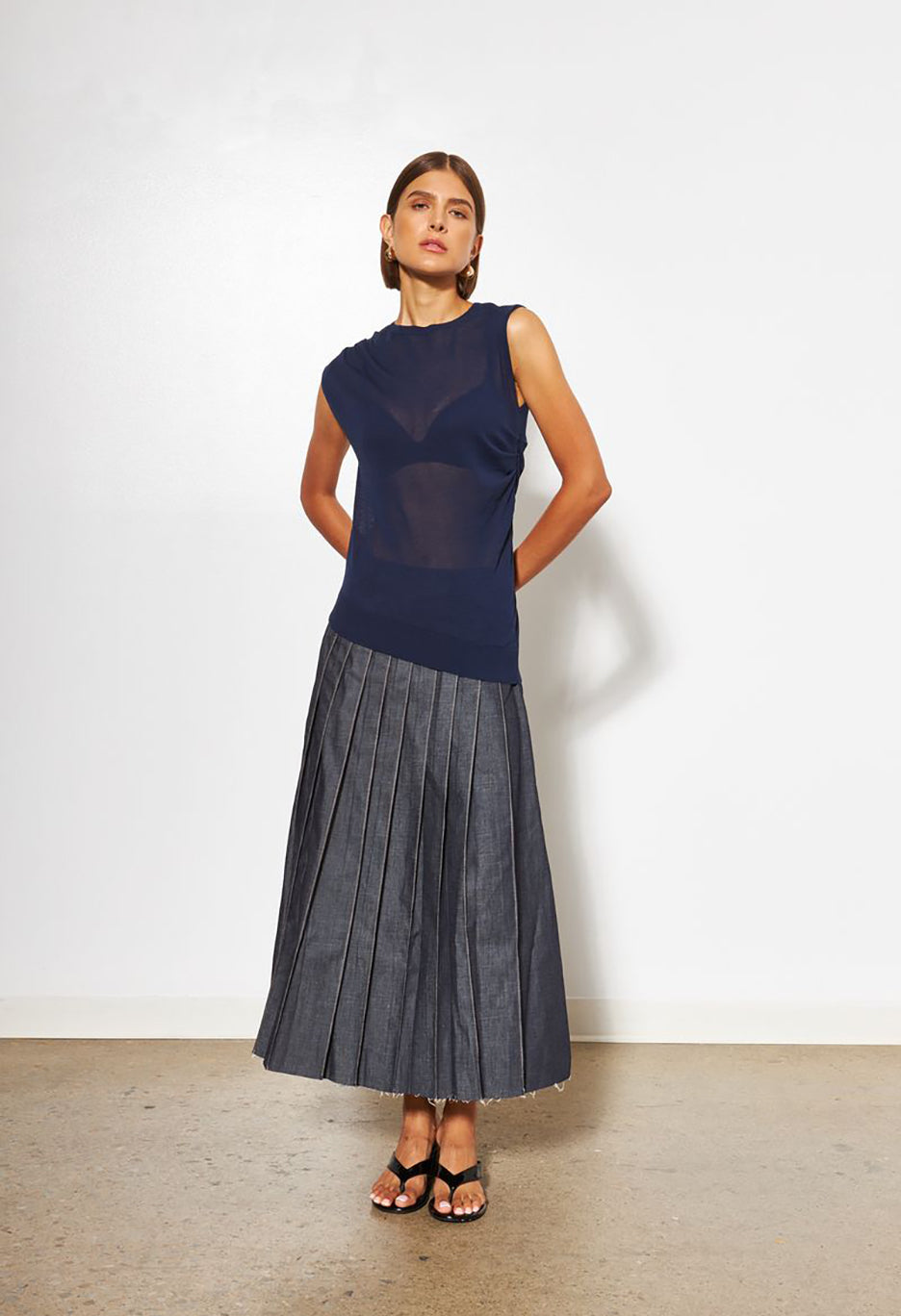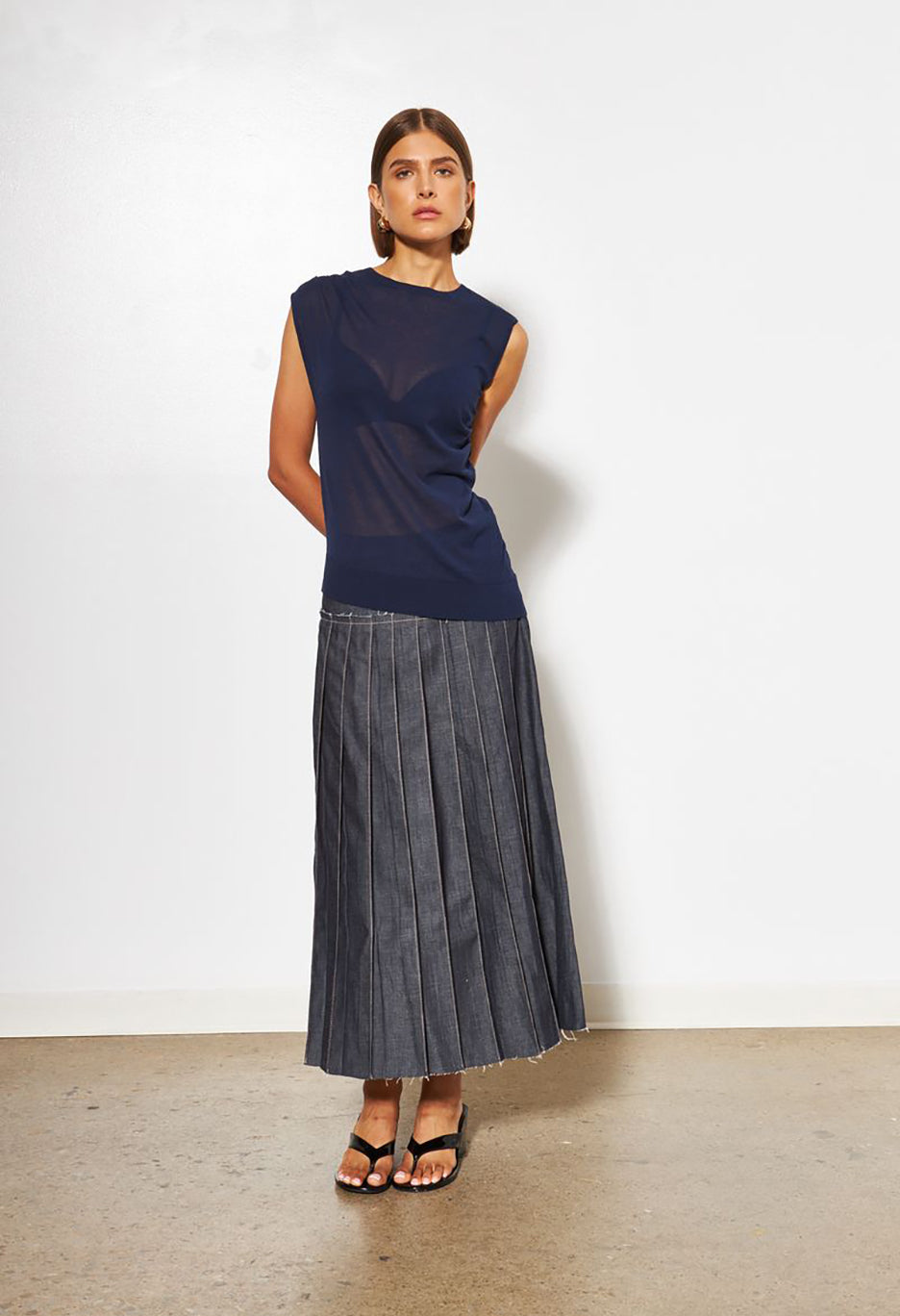 Effortless elegance meets layering versatility with Blaire. This lightweight knit features an open, breathable weave that drapes beautifully. Perfect for transitional seasons or adding dimension to your everyday look. The sleeveless silhouette offers freedom of movement while maintaining a polished, intentional aesthetic.