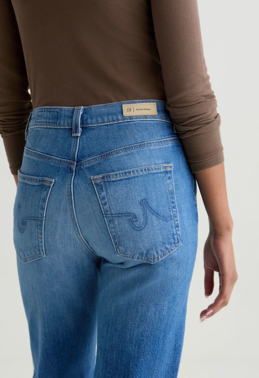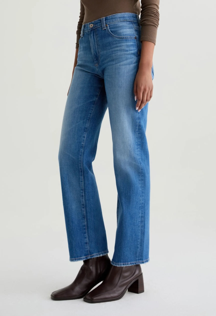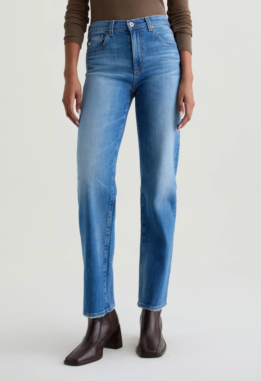 Brinley is a mid-rise straight jean designed for comfort and style. Made from premium stretch denim imported from Italy’s renowned Candiani Mill, it features an AG-ed™ wash that mimics 13 years of natural wear for an authentic, broken-in appearance. The distressed hems add a modern edge while maintaining everyday ease, making Brinley a versatile choice for lasting wear and refined casual looks.
