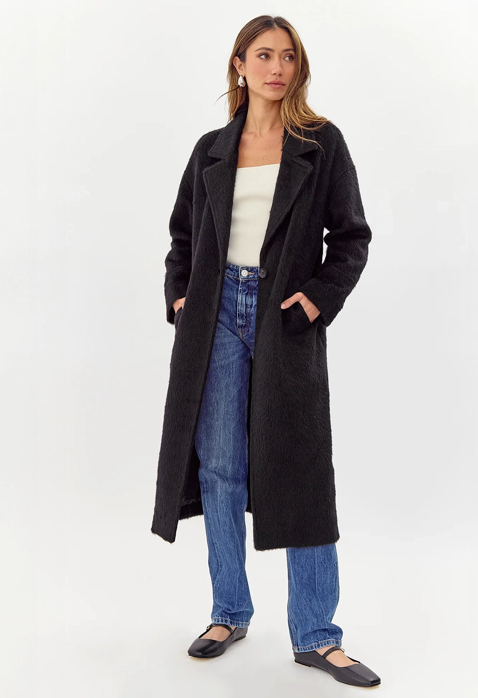 The Bryce Coat is expertly designed to provide a heavy and stylish look without the uncomfortable weight. It effortlessly layers over chunky knitwear and structured tailoring, thanks to its wool blend material. With dropped shoulders, side pockets, and an oversized fit, this coat allows for easy movement and adds a touch of luxury to any outfit.