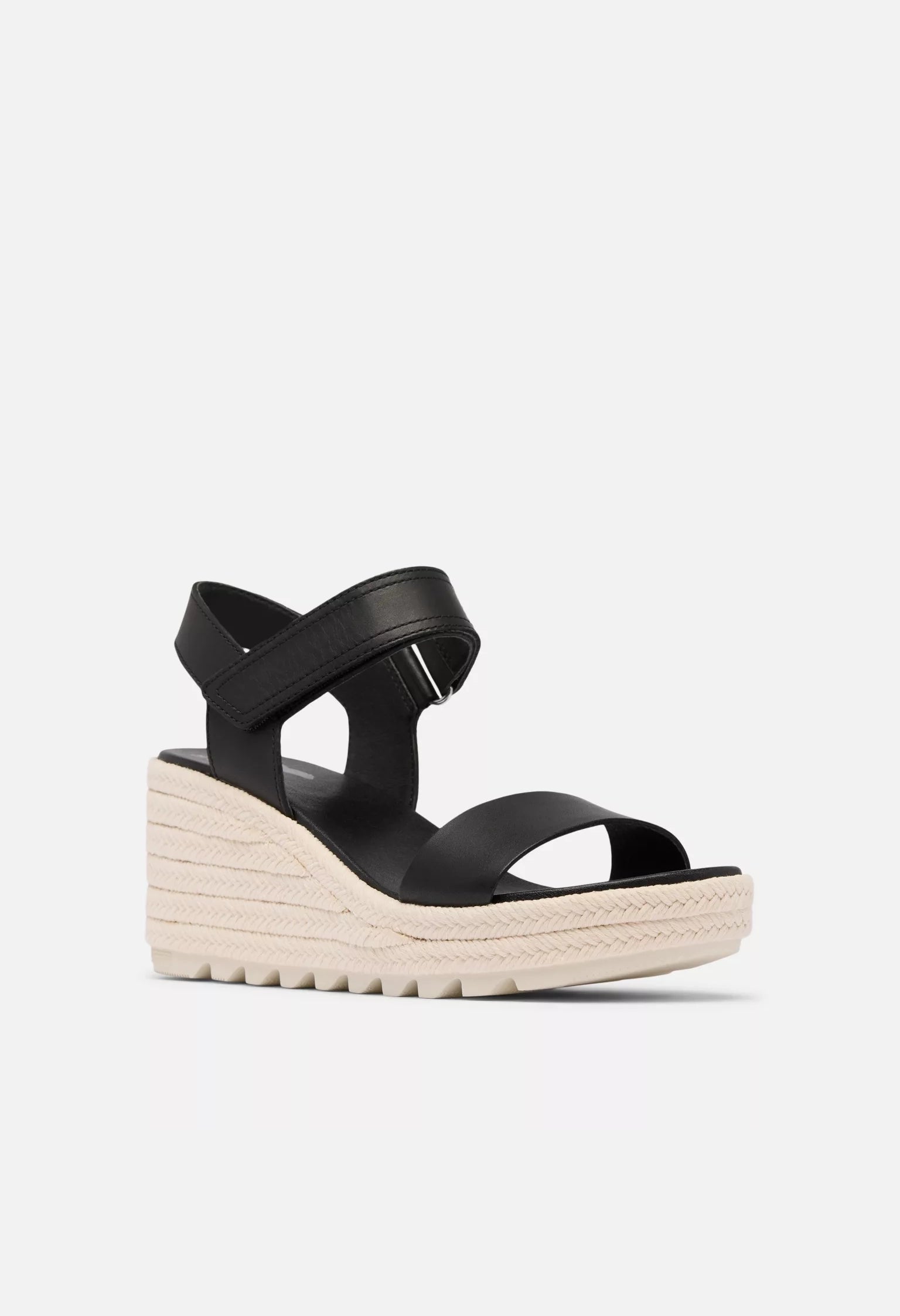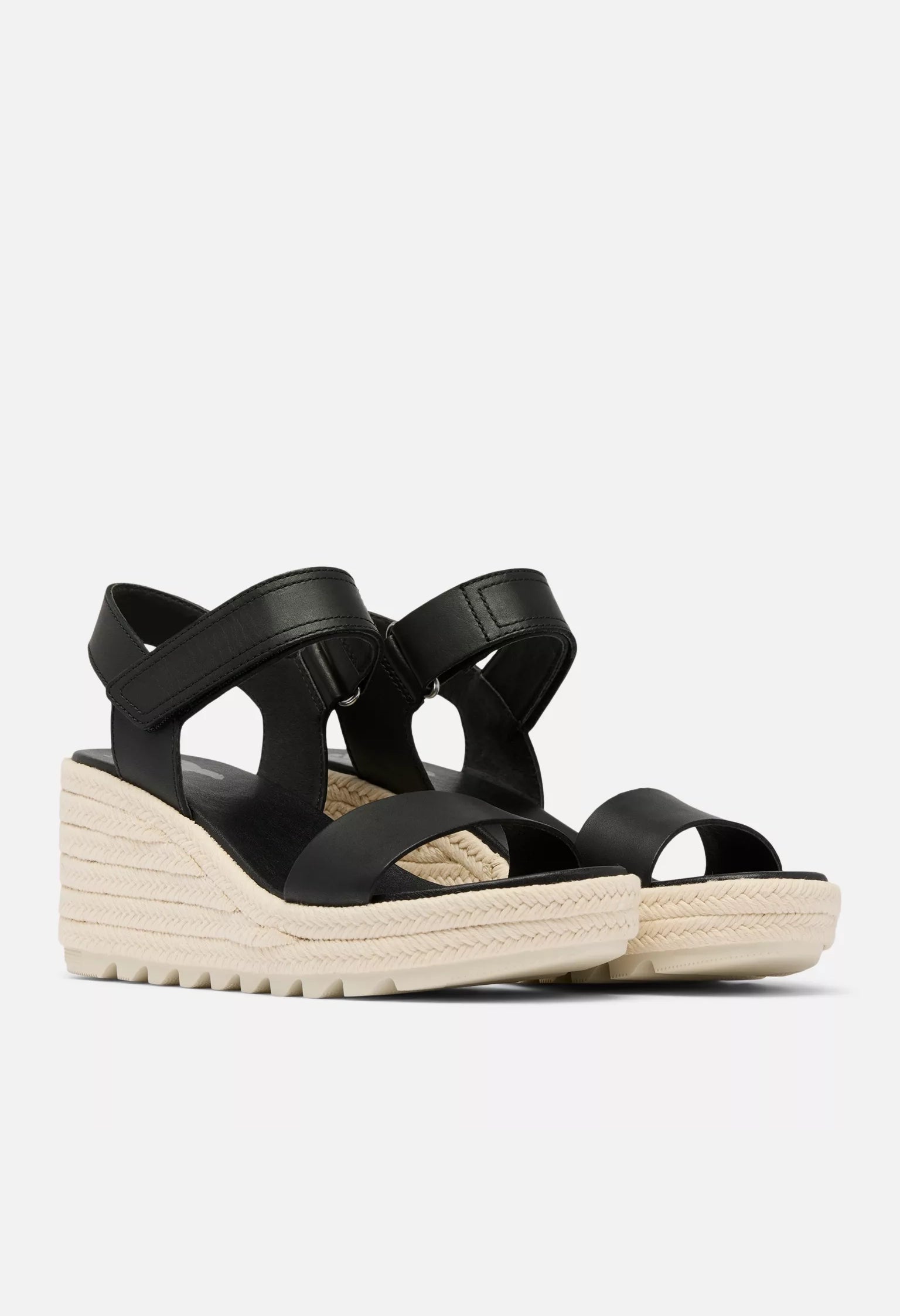Walk-all-day comfort meets bold design. This versatile wedge offers a comfortable EVA footbed plus a hook and loop closure for an easy, adjustable fit. Available in two colors, this pair makes a statement wherever you go.