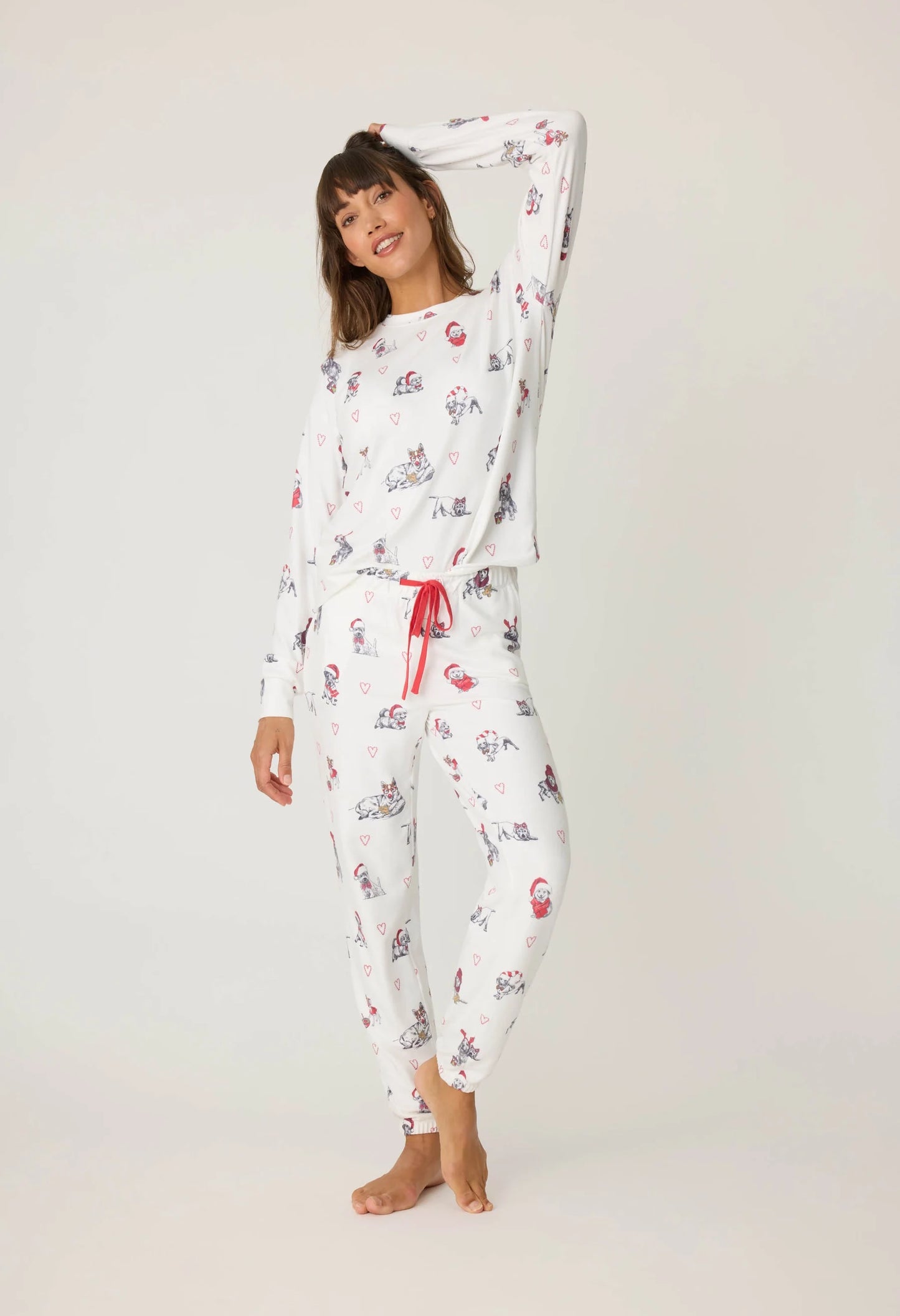 Celebrate the holiday season with the charming Candy Cane Lane Pj Set. This adorable pajama set showcases a festive dog pattern with cute red hats and is made with soft, breathable fabric for optimal comfort. A must-have for any dog lover, this set is the perfect way to add some festive flair to your sleepwear collection.