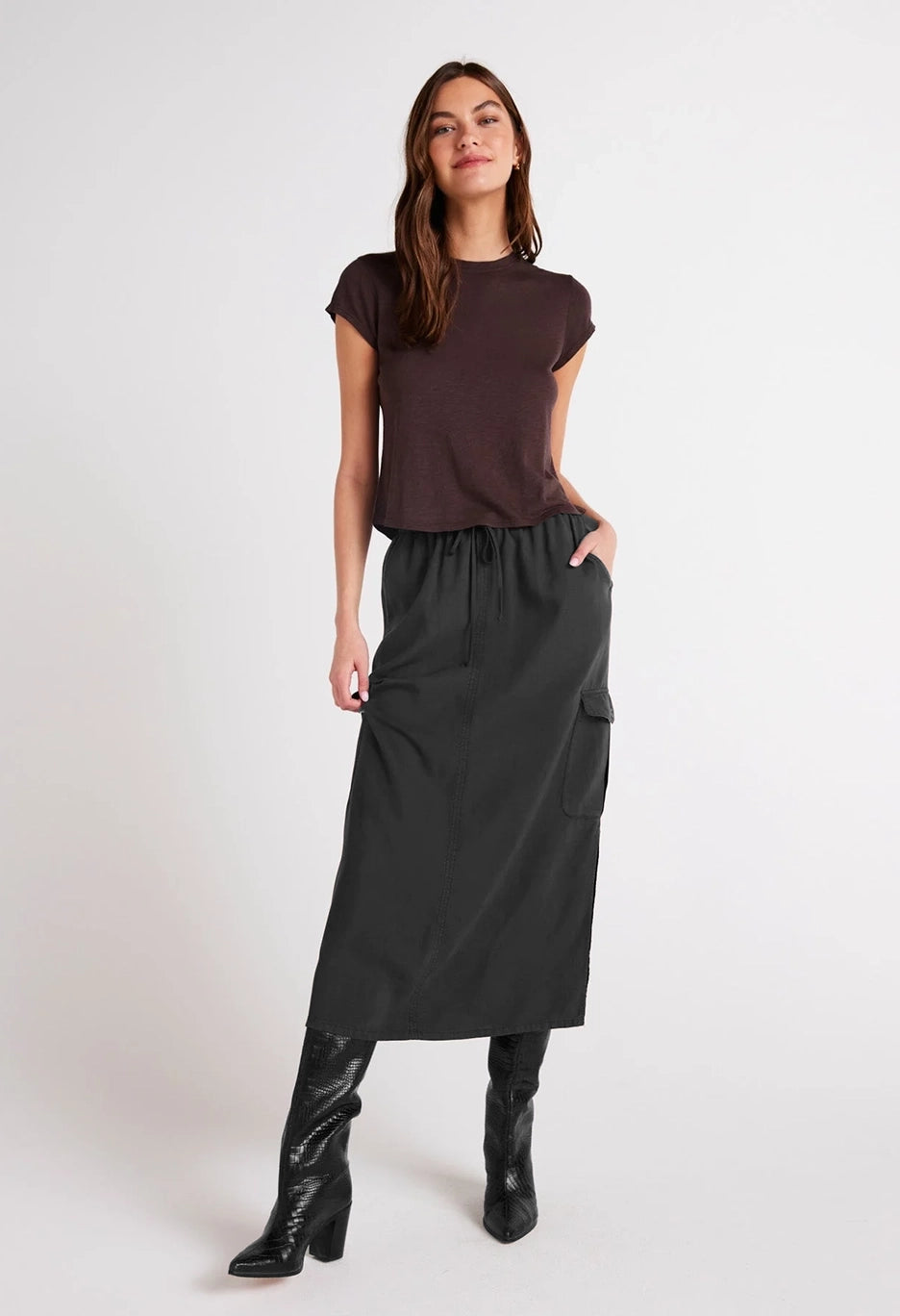 Add a touch of versatility to your wardrobe with the Cargo Midi Skirt. Designed with side slits to allow for effortless movement and functional pockets for your convenience. Crafted from luxurious Tencel fabric, this offers unmatched comfort.