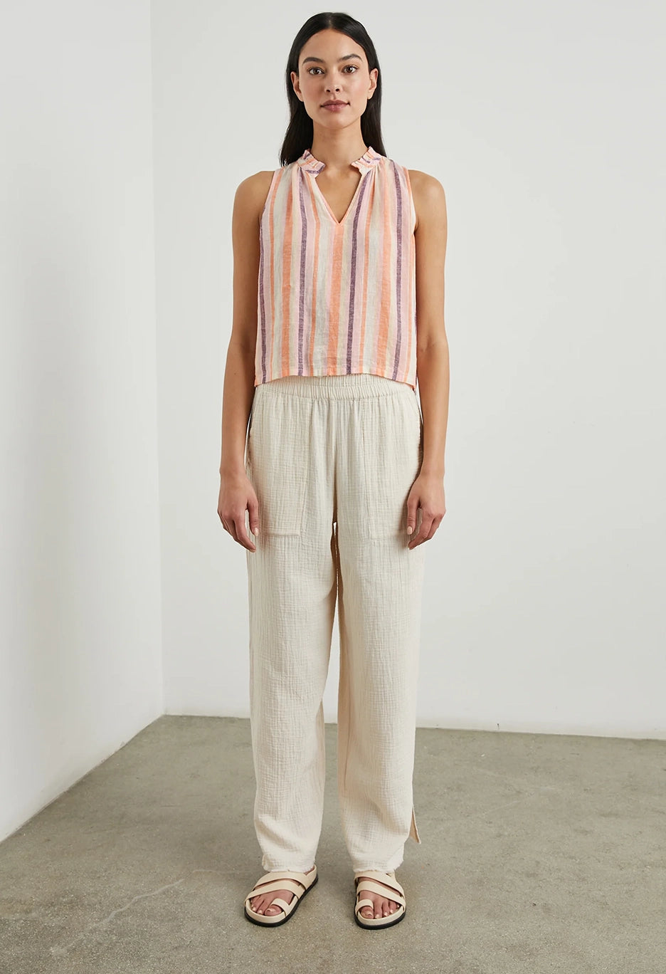 Crafted from airy luxe linen in Papaya Stripe, the Christy will be your go-to for the season for all your weekend activities.