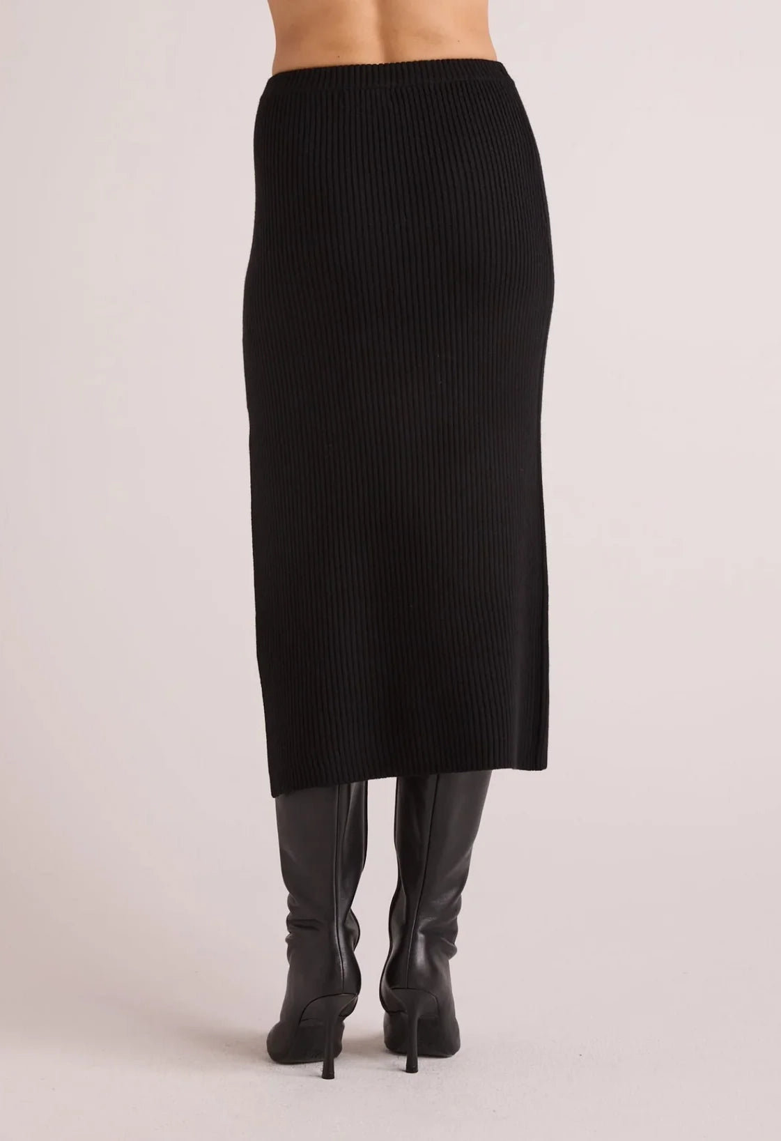 This ribbed knit midi skirt is an essential piece for your autumn collection. It offers a sleek, fitted design complemented by a side slit that adds a stylish touch. Ideal for pairing with boots, it provides both elegance and warmth, making it a versatile choice for cooler seasons.