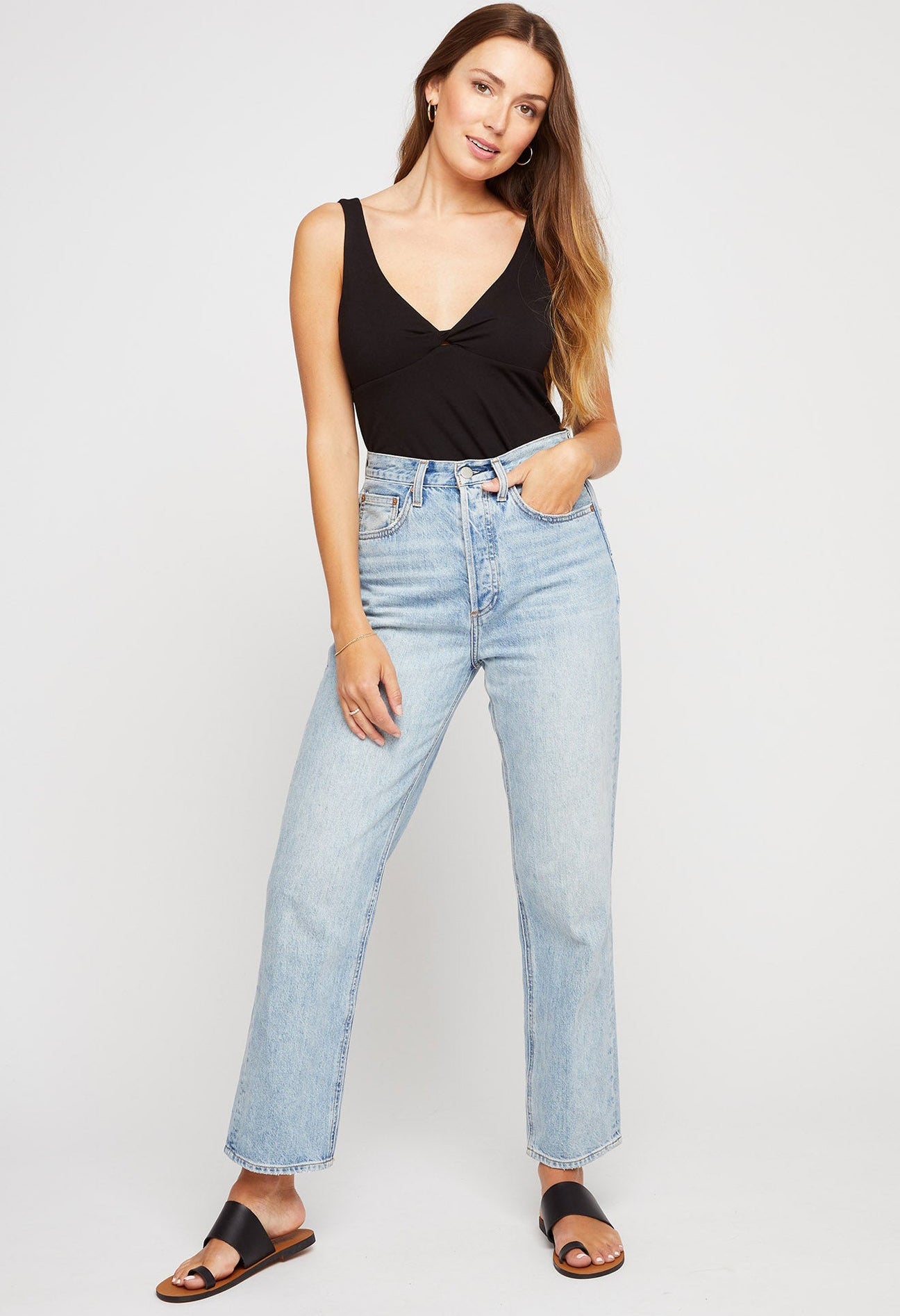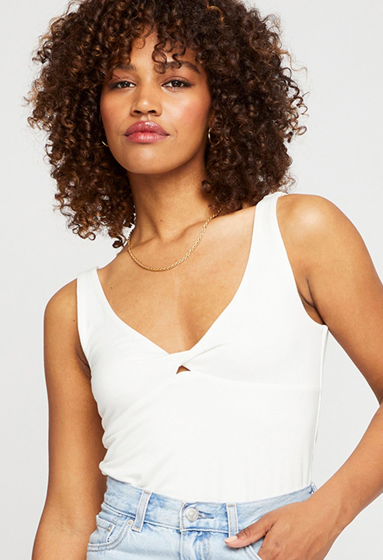 The Corsica tank is made of super soft rayon jersey and is fully lined for ease of wear. Features include a front and back v-neckline with a front twist detail.