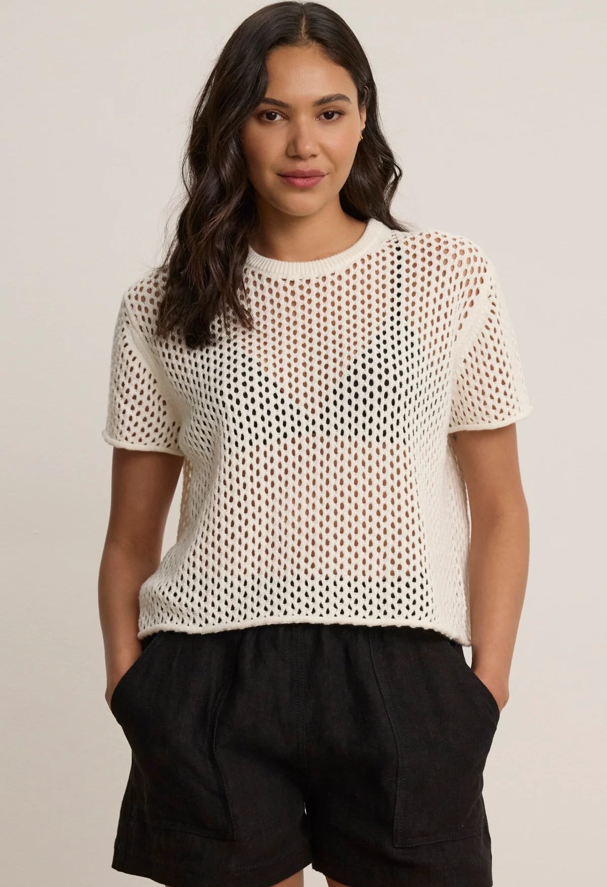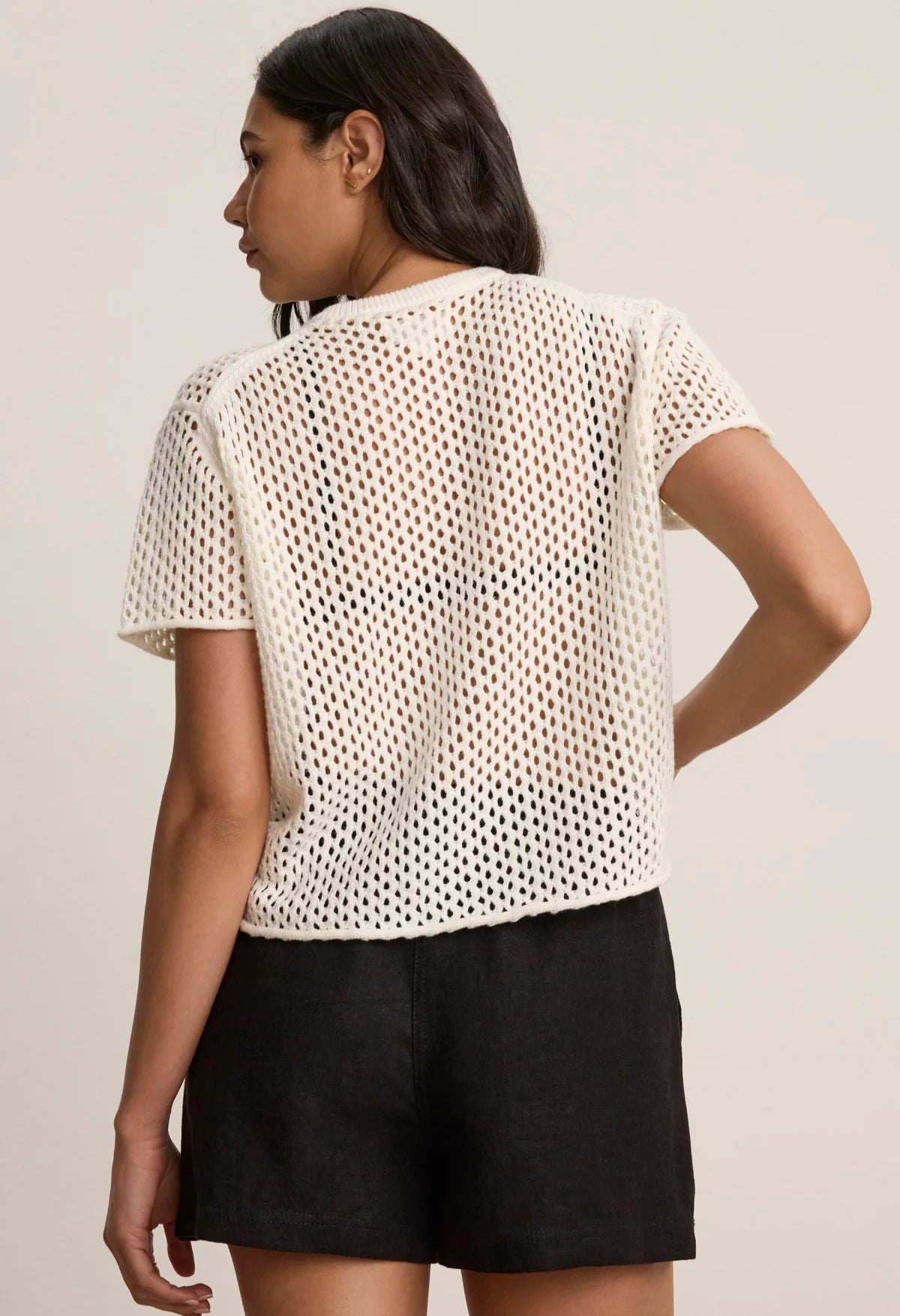 Crafted from a luxurious cotton-cashmere blend mesh knit, this sweater offers a lightweight and breathable fit. Featuring a classic crew neckline with ribbed detailing and rolled edges on the cuffs and hem, this sweater is perfect for layering or wearing on its own.