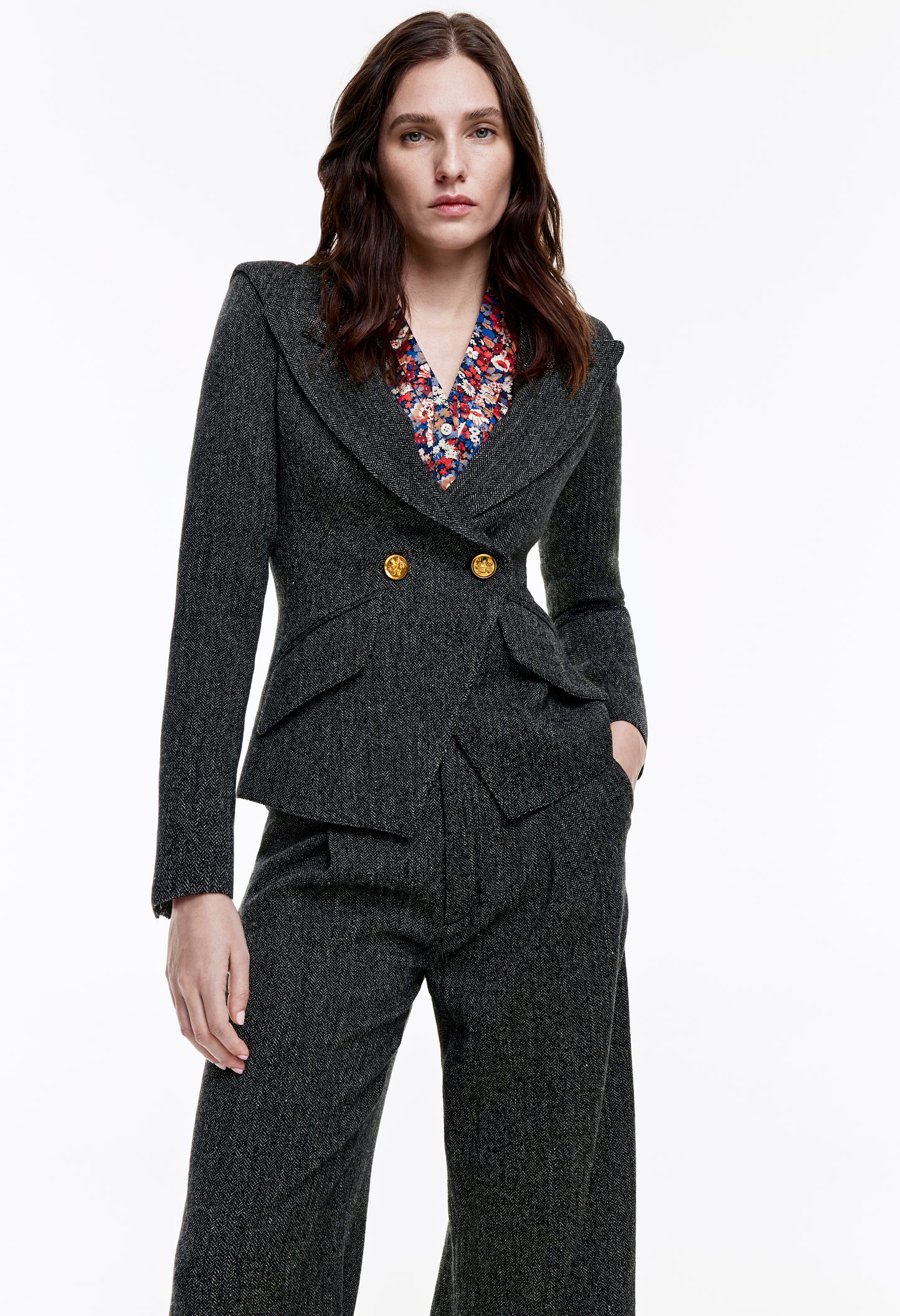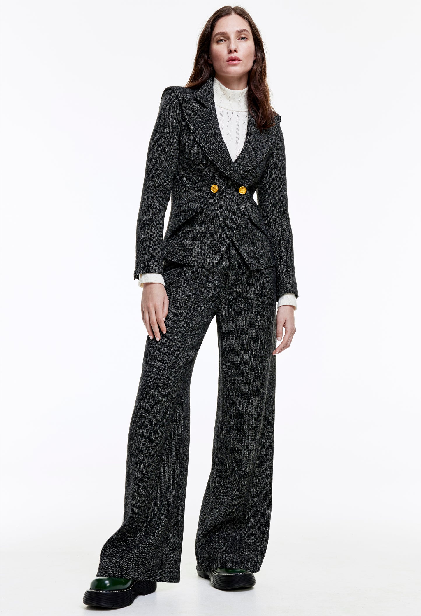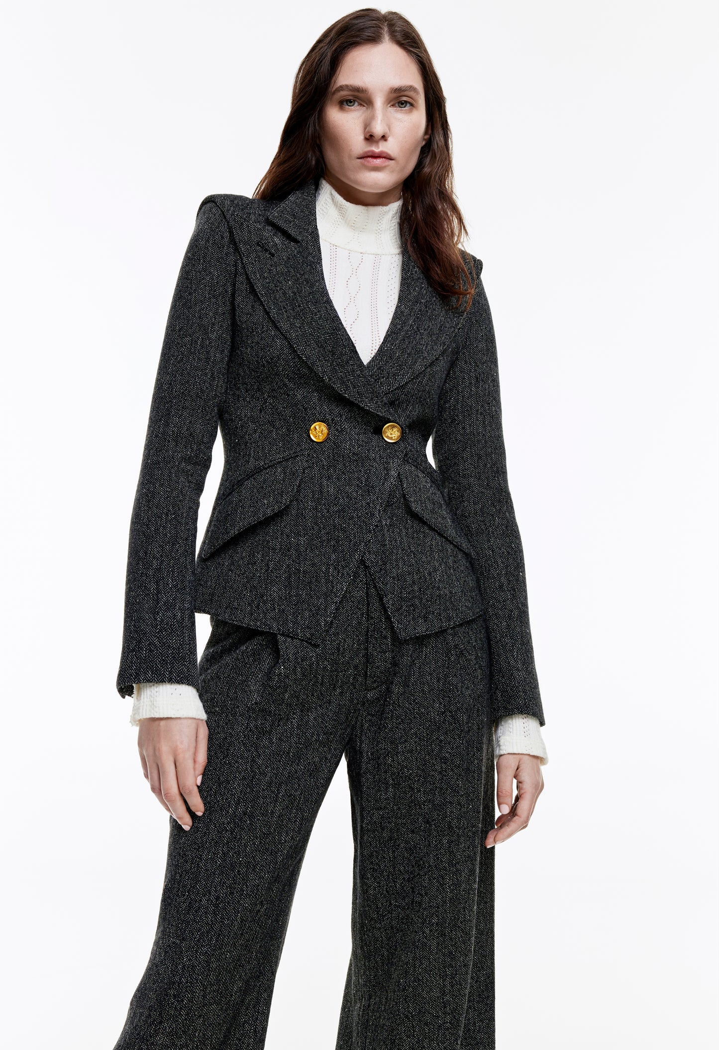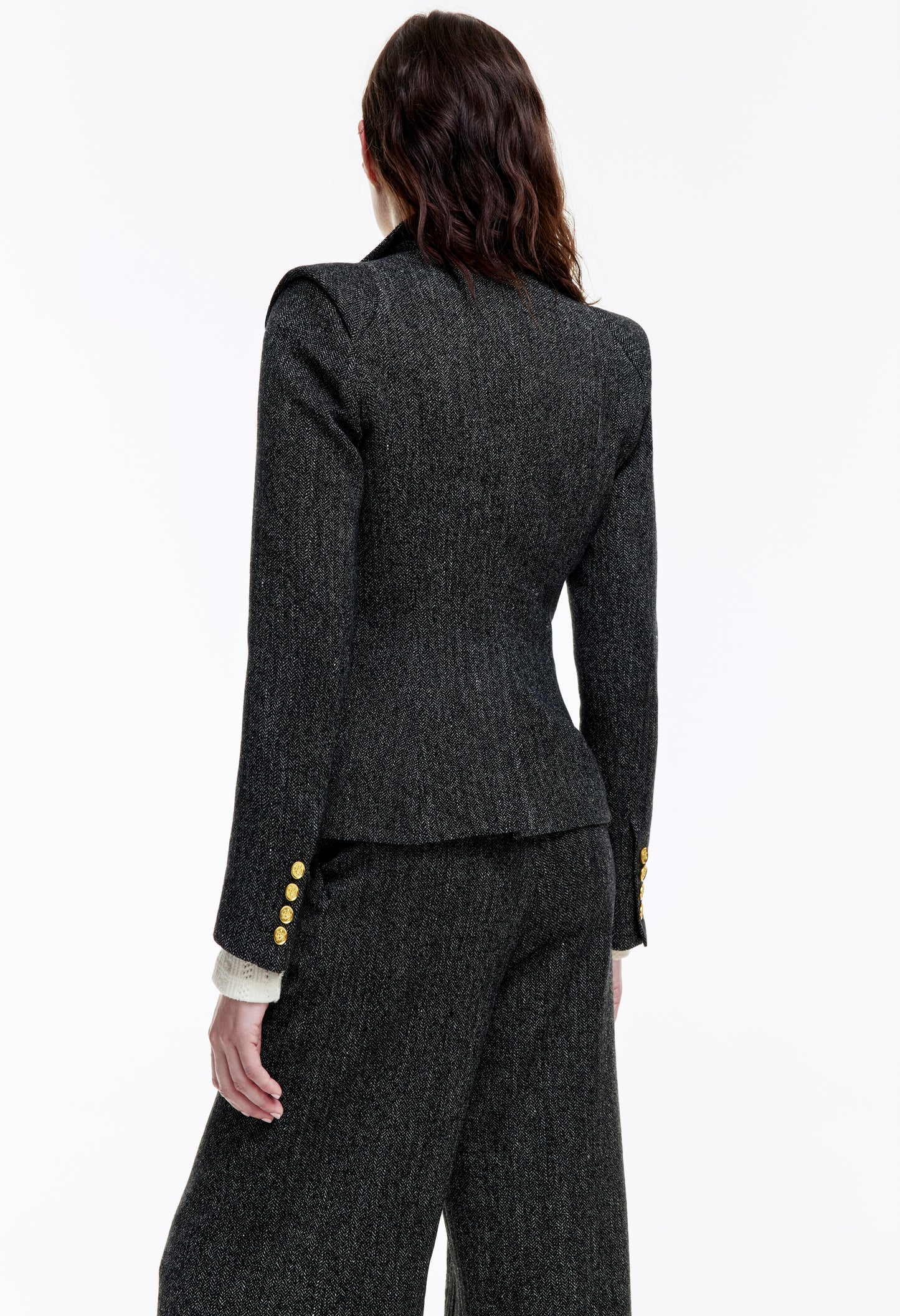 Expertly tailored for a sleek silhouette, our Crossover Blazer boasts a classic lapel design, sharp shoulders, and a double-breasted closure. With a hip-length fit, this blazer offers a structured and polished look for any occasion. Elevate your professional wardrobe with this timeless piece.