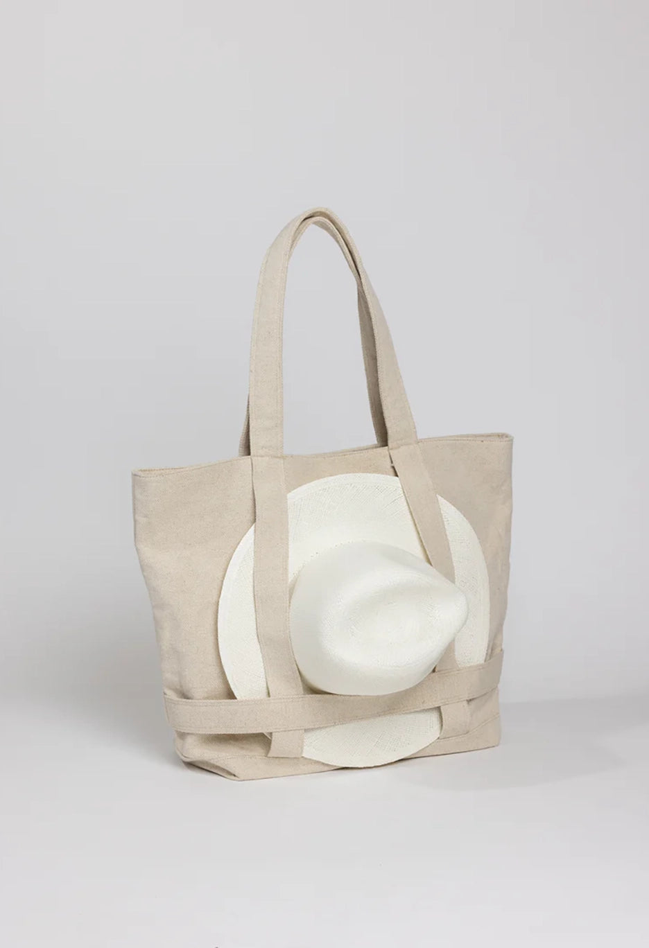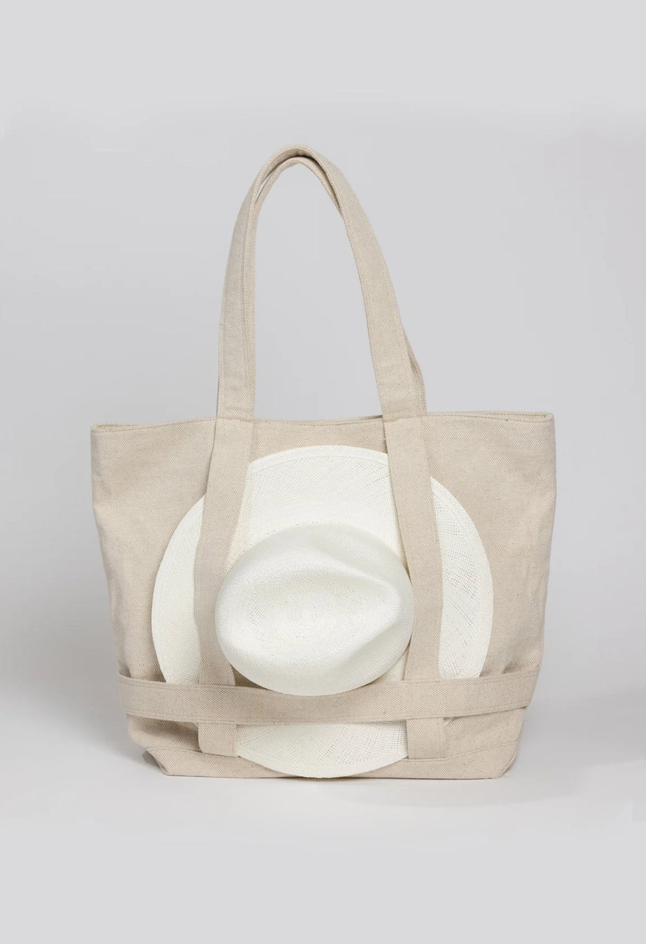 The Original Straw Traveler is now offered in canvas! It is sure to brighten up your spring and summer with a special built in spot for you favorite sunhat! Packable for easy travel and roomie for all of your sarongs, bathing suits and sunscreen.