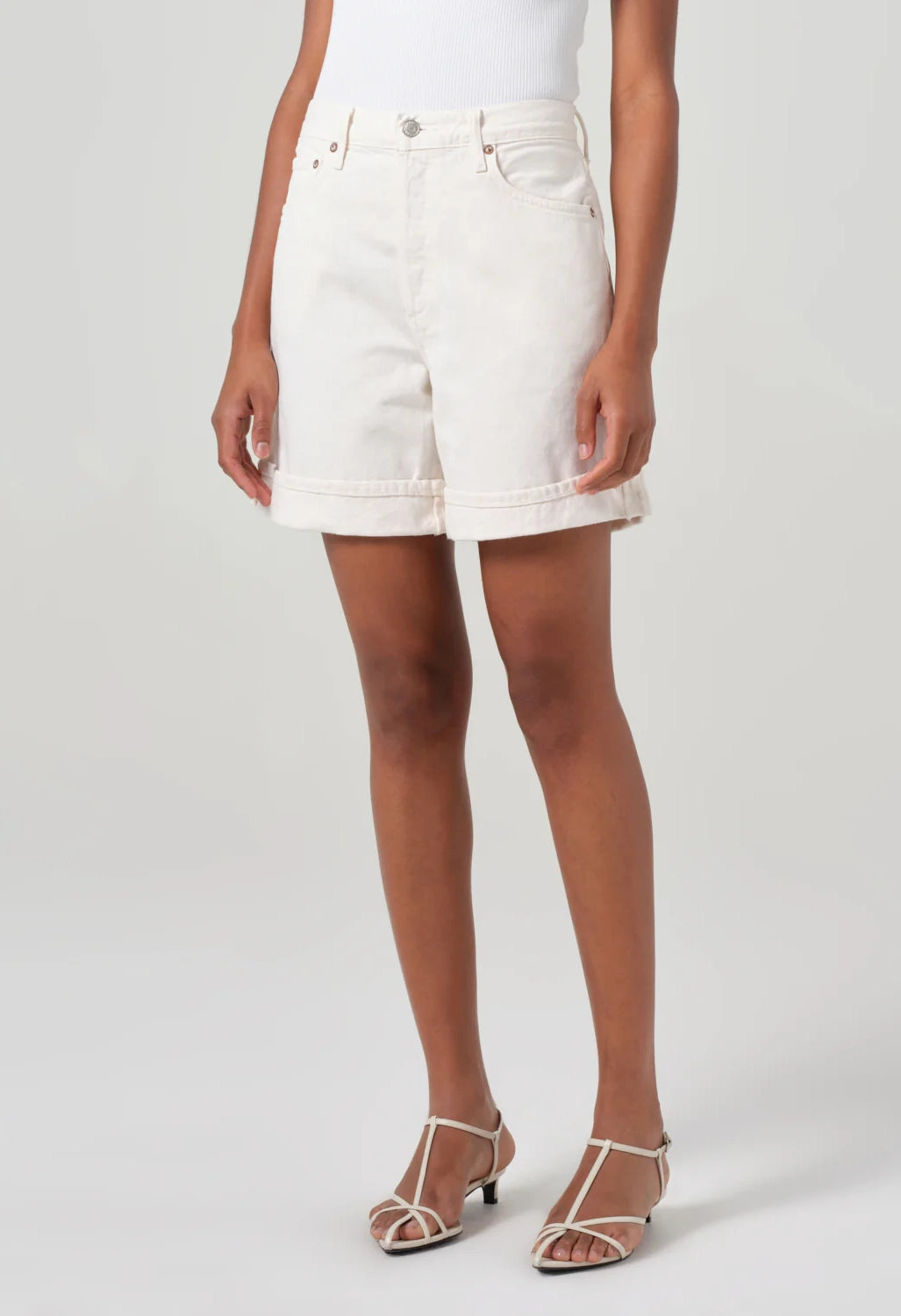 Experience comfort and effortless style with the Dame Short. Made from regenerative cotton, these eggshell white shorts have a high-rise fit, relaxed silhouette, and wide leg opening. The clean hem adds a polished touch, making them perfect for pairing with a tank or oversized shirt for a chic, warm-weather look.