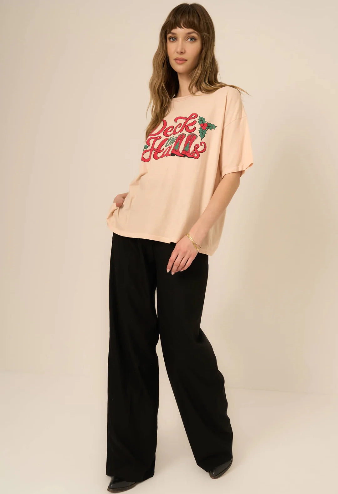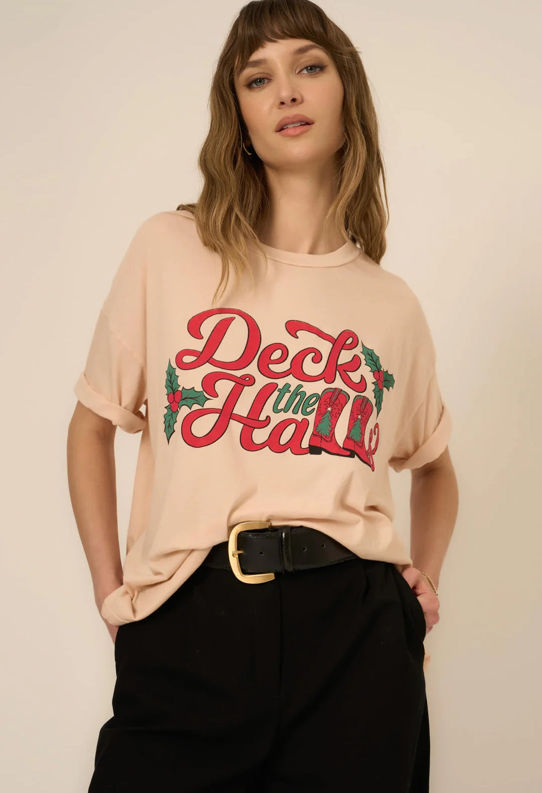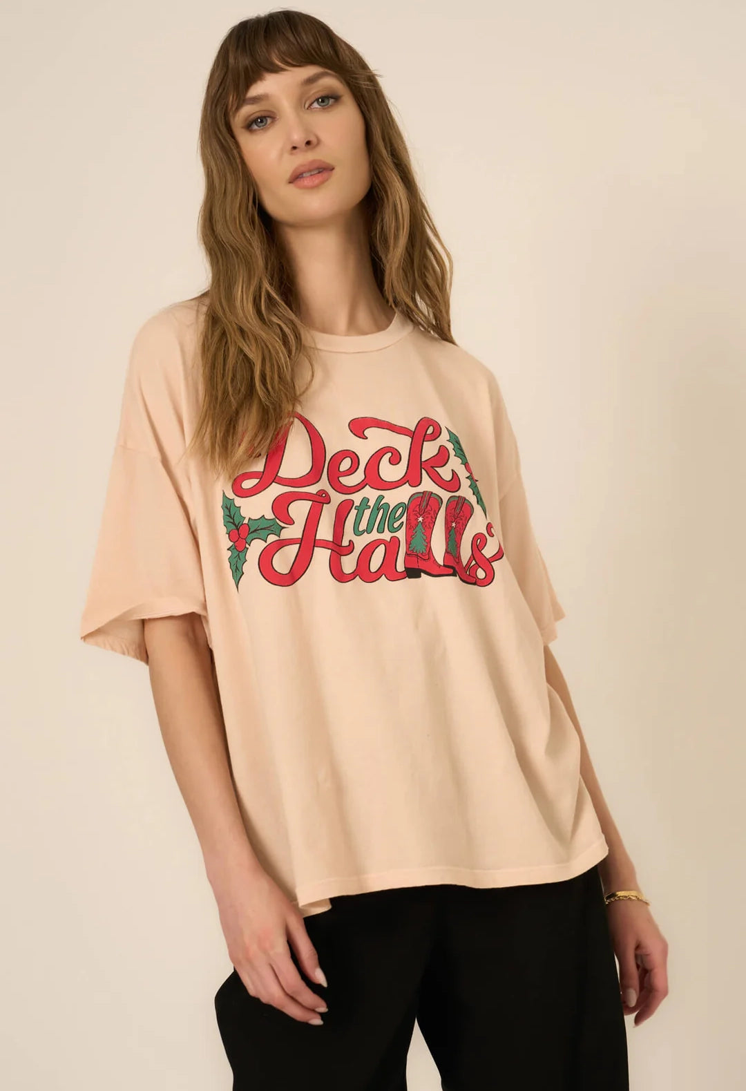 Celebrate the season in style with the Deck The Halls Perfect Boyfriend Tee. Designed with a western twist, this tee features bold colors that pop and a relaxed boyfriend fit for both coziness and coolness. Made from soft 100% cotton jersey, it's the perfect choice for festive occasions.