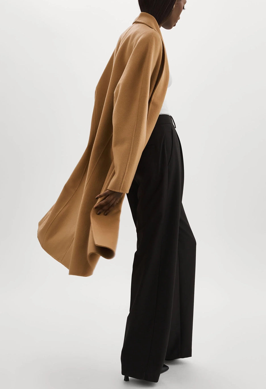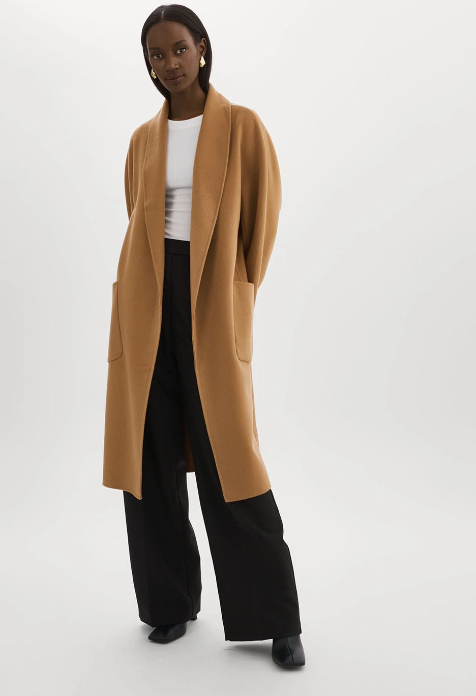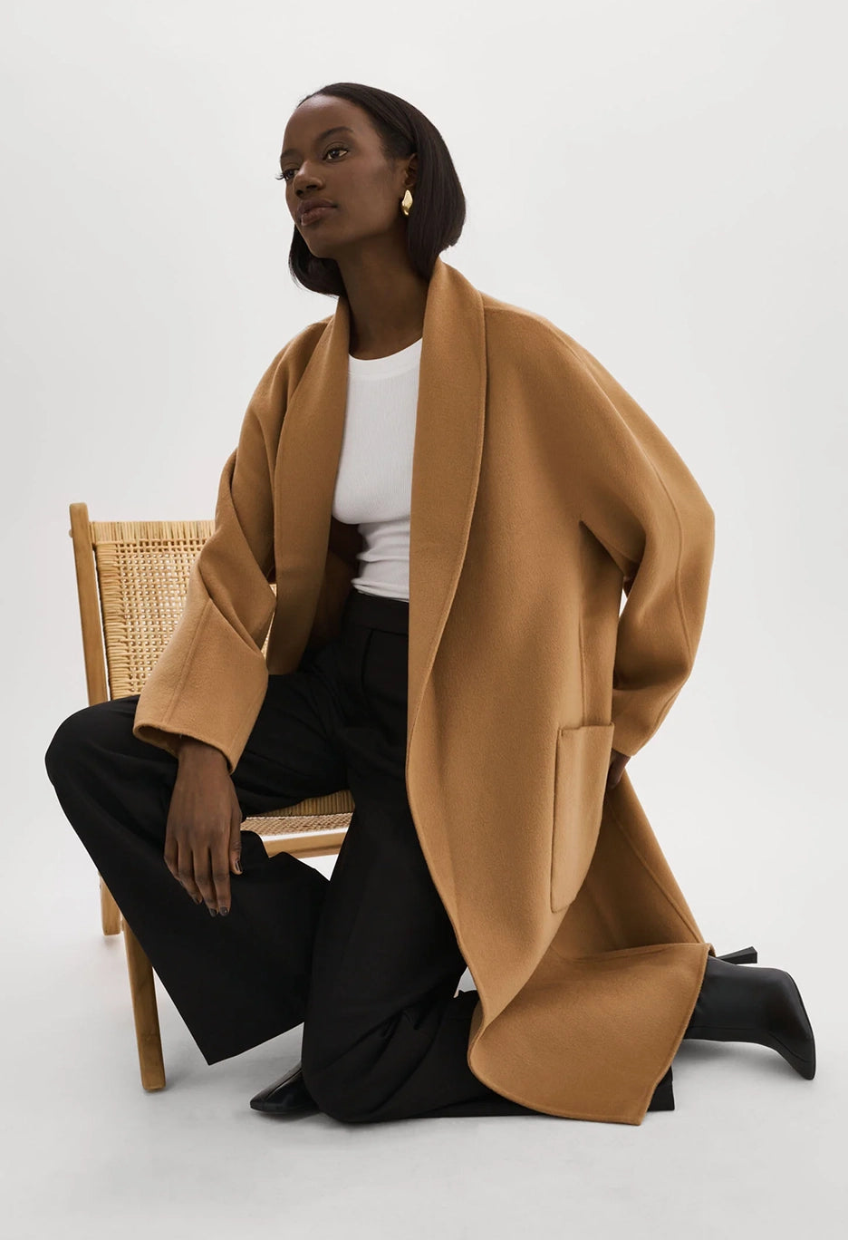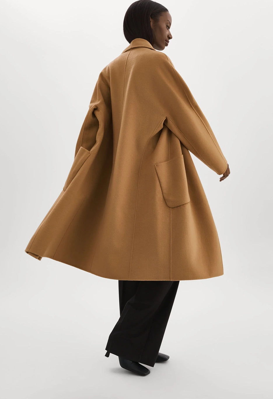 The Thara Double Face Wool Coat is a must-have for the cold weather season. With its shawl collar and oversized sleeves, it exudes both elegance and coziness. Made with double-faced wool, this coat is not only functional but also incredibly warm. Adding practicality to style, it also features patch pockets for convenience.