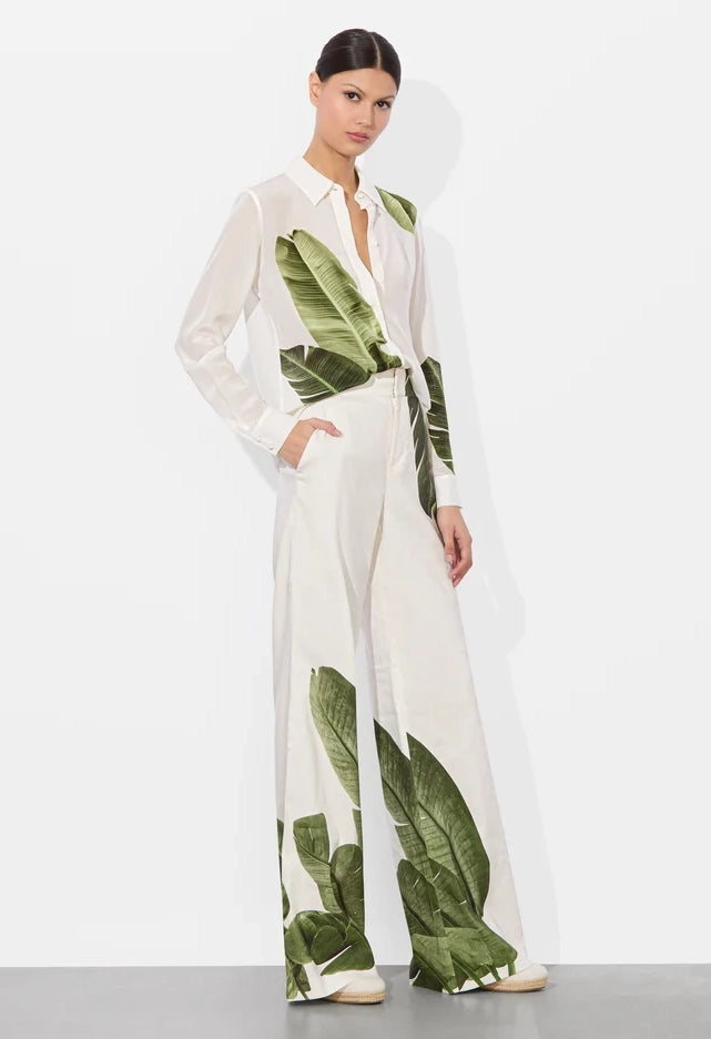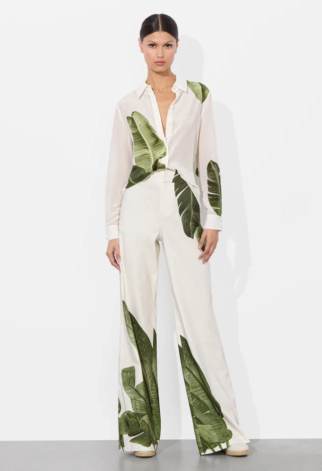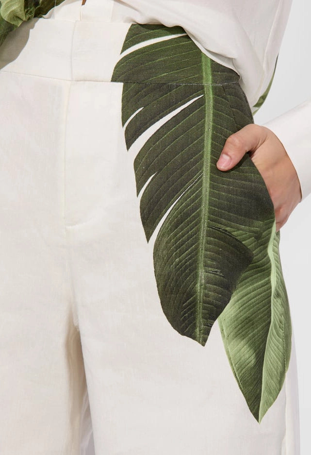 Introducing the Dylan Wide Leg Pant- the perfect blend of vacation and tailored style. Made from breathable digitally printed linen, these pants feature a high waist to elongate your legs and a clean front closure. Whether you're exploring the city or lounging on the beach, these pants will keep you comfortable and chic. Complete the look with the matching Elna blazer.