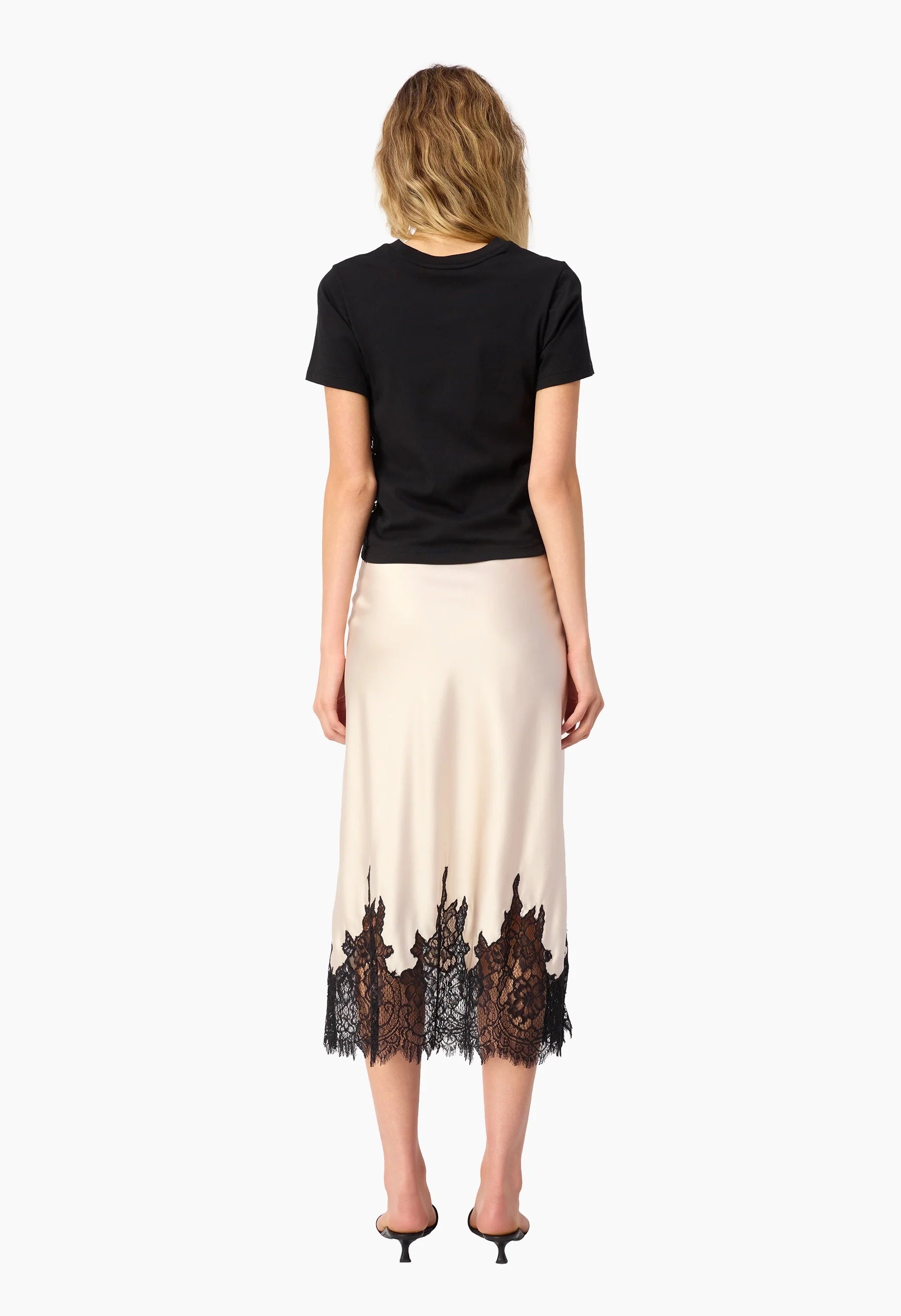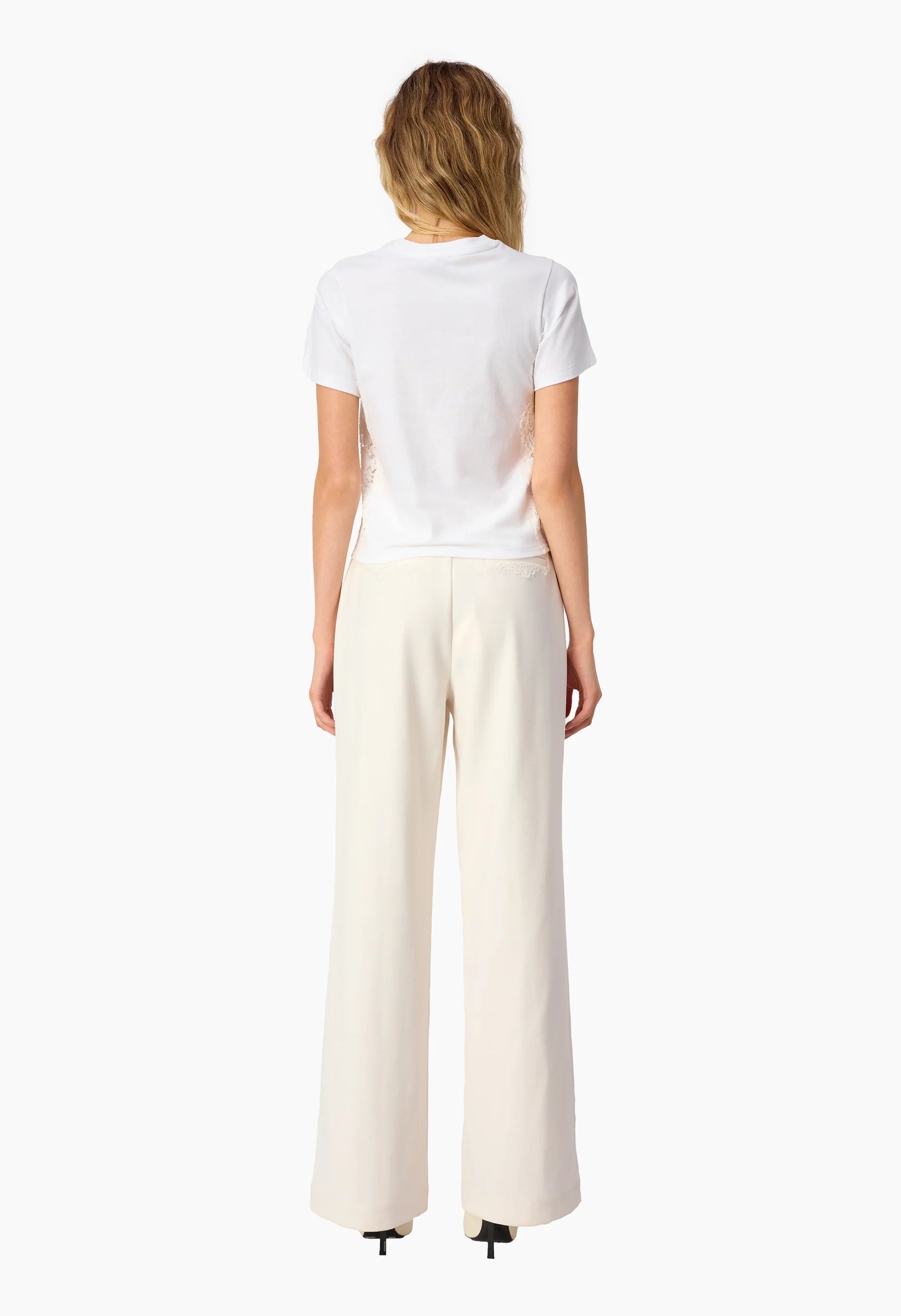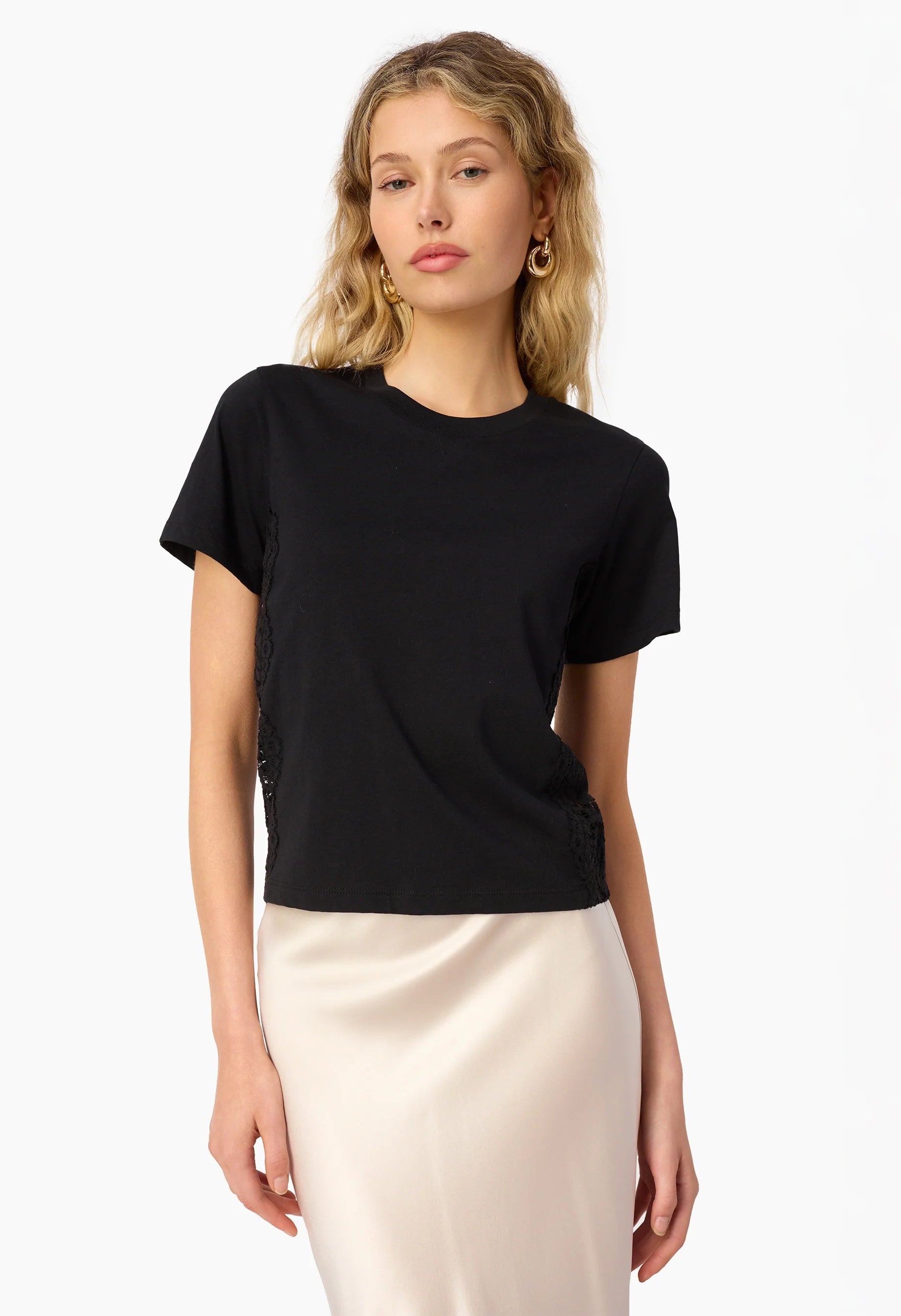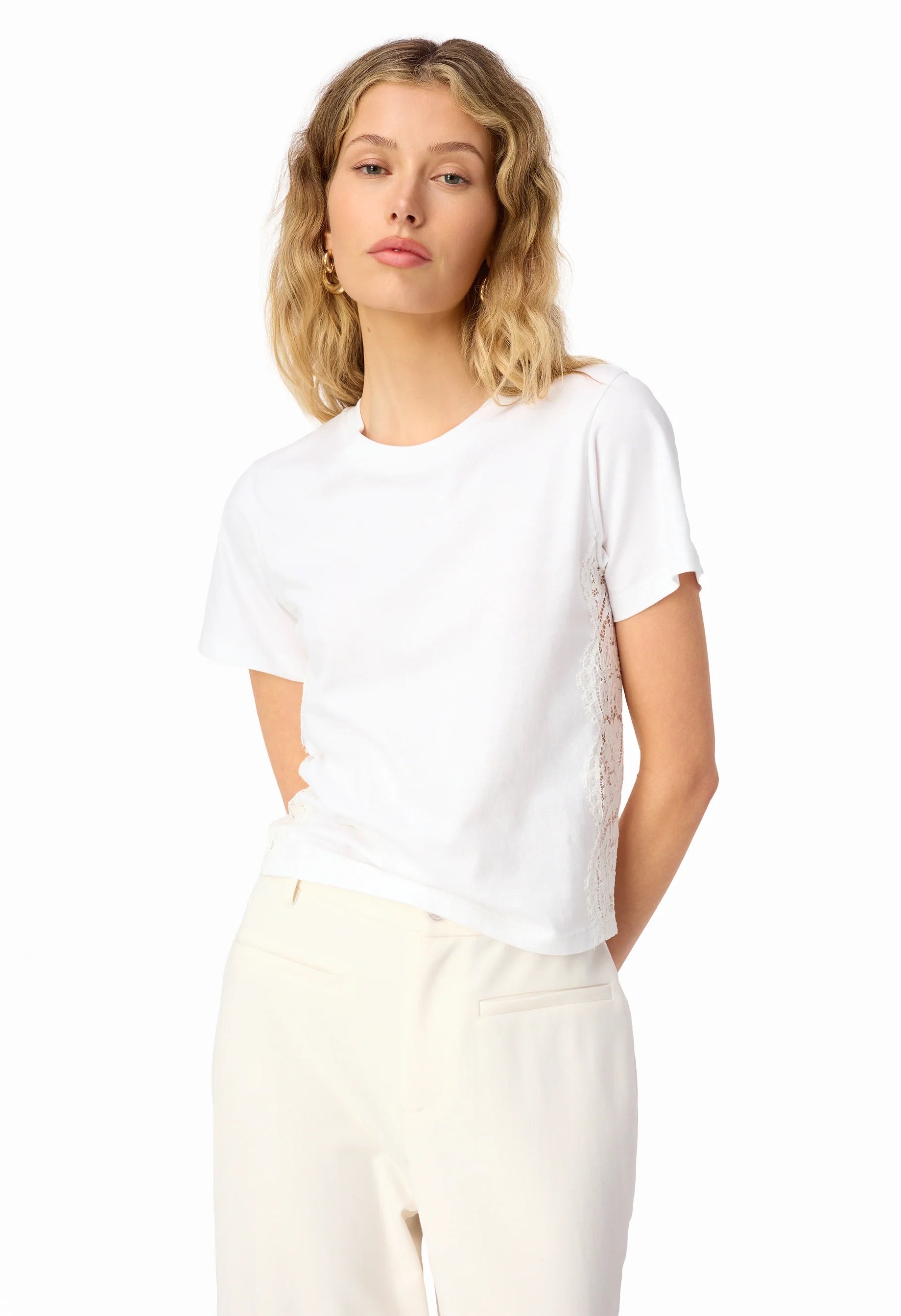 The Ebra Top features a cropped, boxy fit crafted from soft cotton for comfortable wear. Its sheer lace panels along the side seams add a subtle, elegant touch, blending casual style with refined detailing. Ideal for those seeking a modern, versatile piece with a unique edge.