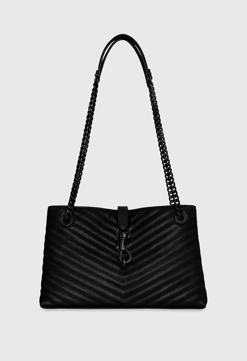 Crafted from luxe leather, our Edie Medium Tote features an extra spacious interior that’s complete with interior zip compartments to keep your daily essentials organized (think your laptop, gym clothes, phone, wallet, etc.) With metal-chain shoulder straps, a chevron-quilt design, and a discreet snap-fastening in front, this versatile beauty makes the perfect day-to-night bag.