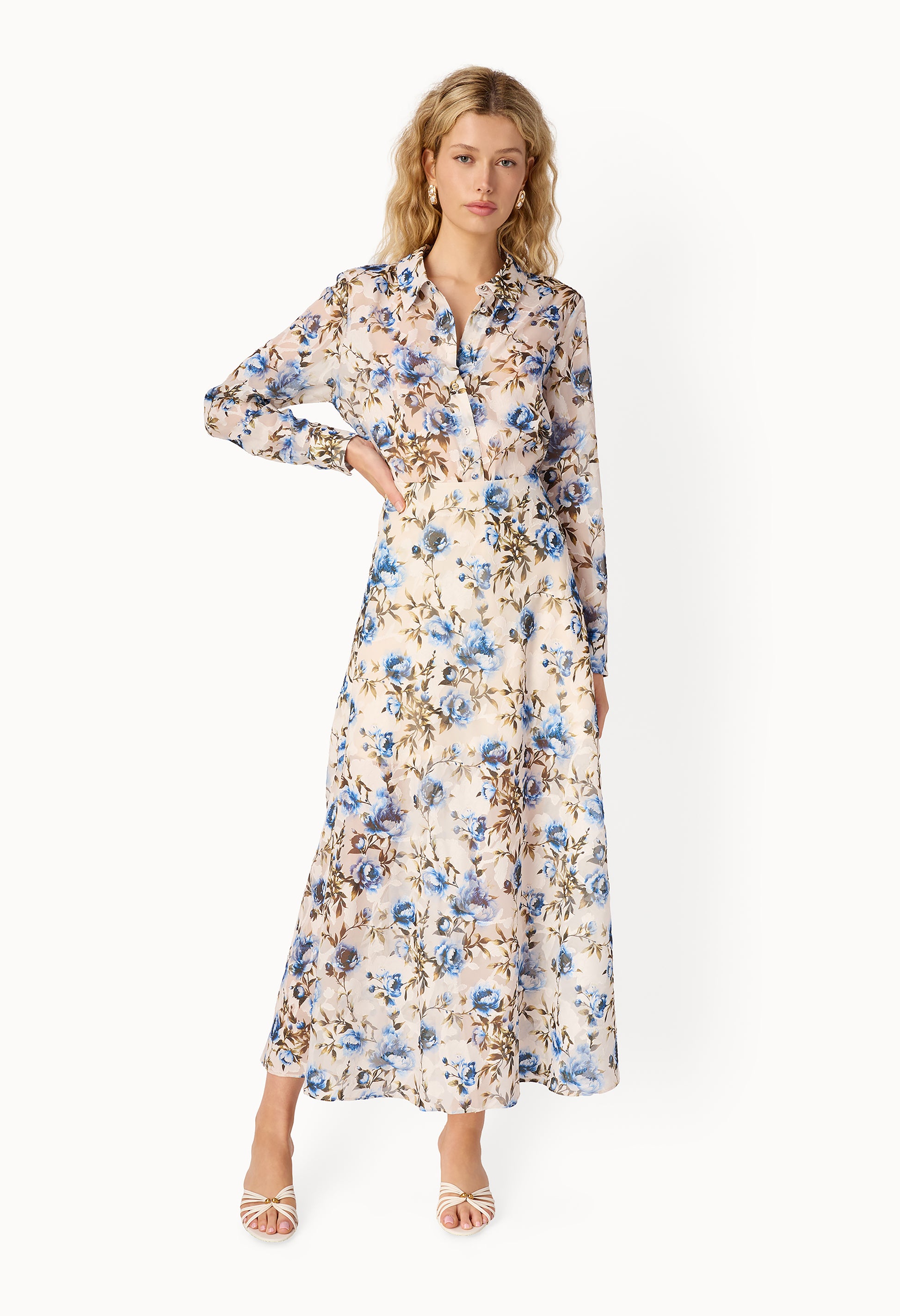 Drift through your day in effortless elegance with the Elouisa Burnout Chiffon Gown. This maxi-length piece features a delicate floral print that catches the light beautifully, while the lightweight chiffon fabric moves gracefully with every step. Perfect for garden parties, weddings, or any occasion calling for understated sophistication. The burnout texture adds subtle dimension and visual interest, making this gown a versatile addition to your wardrobe.