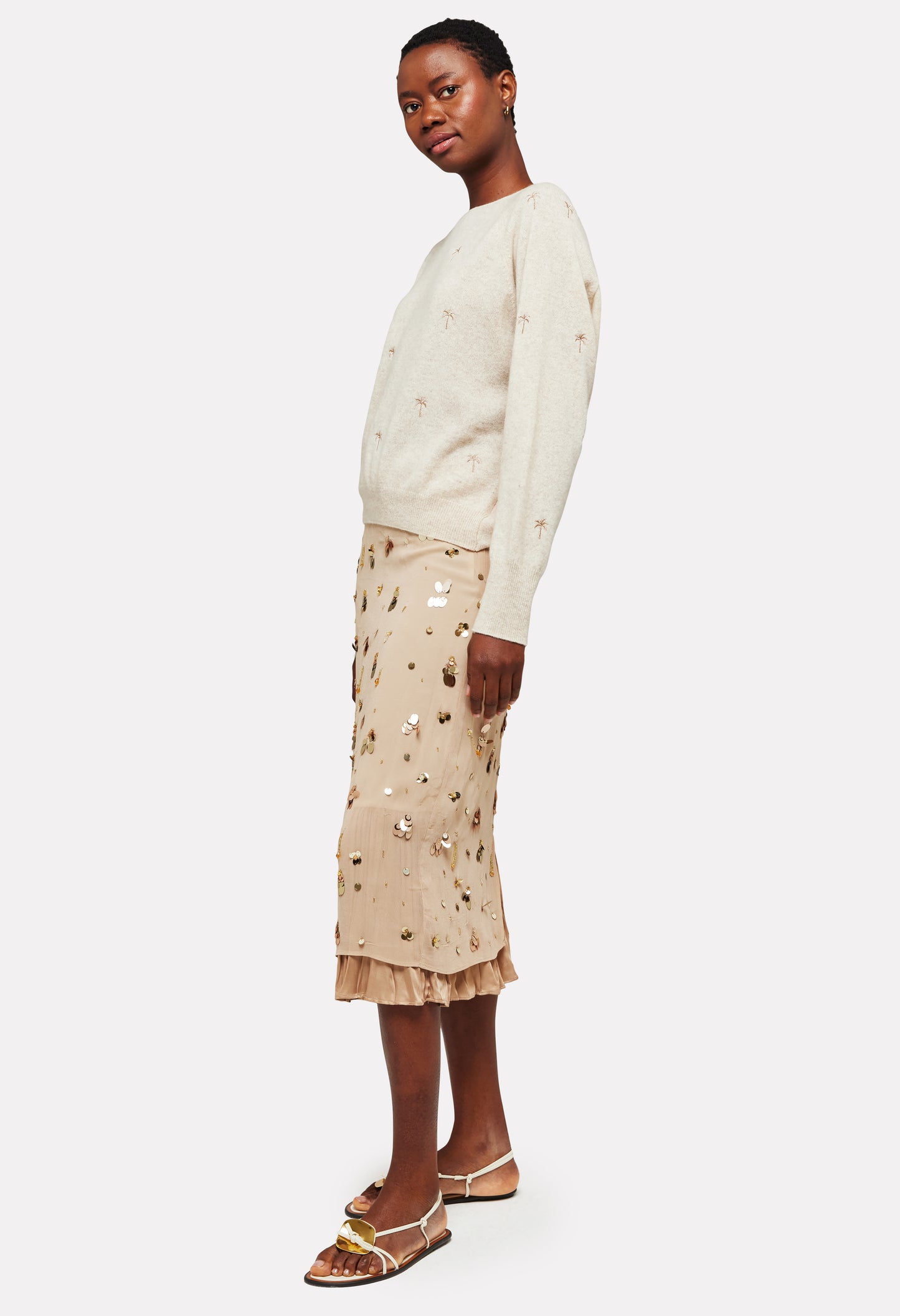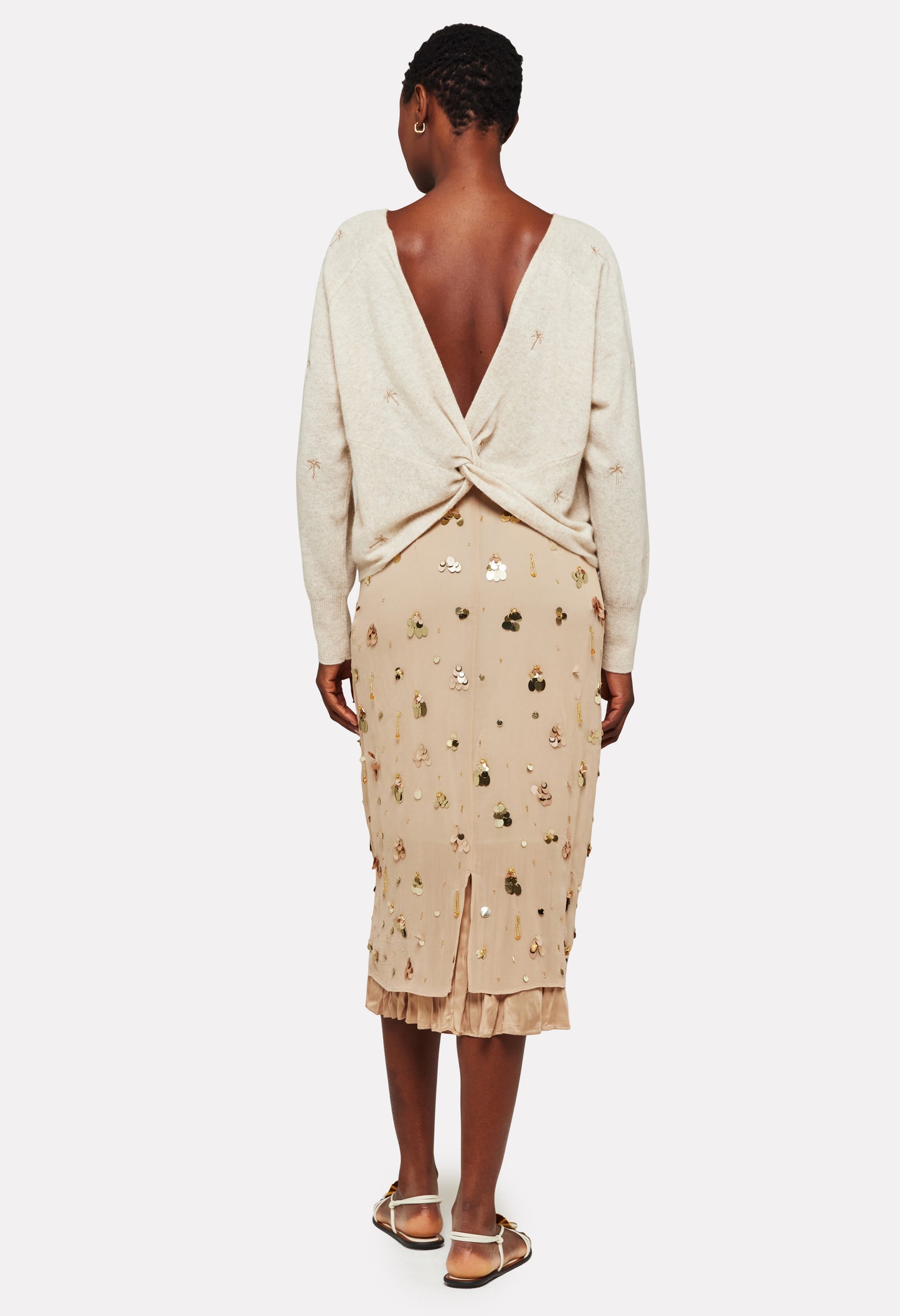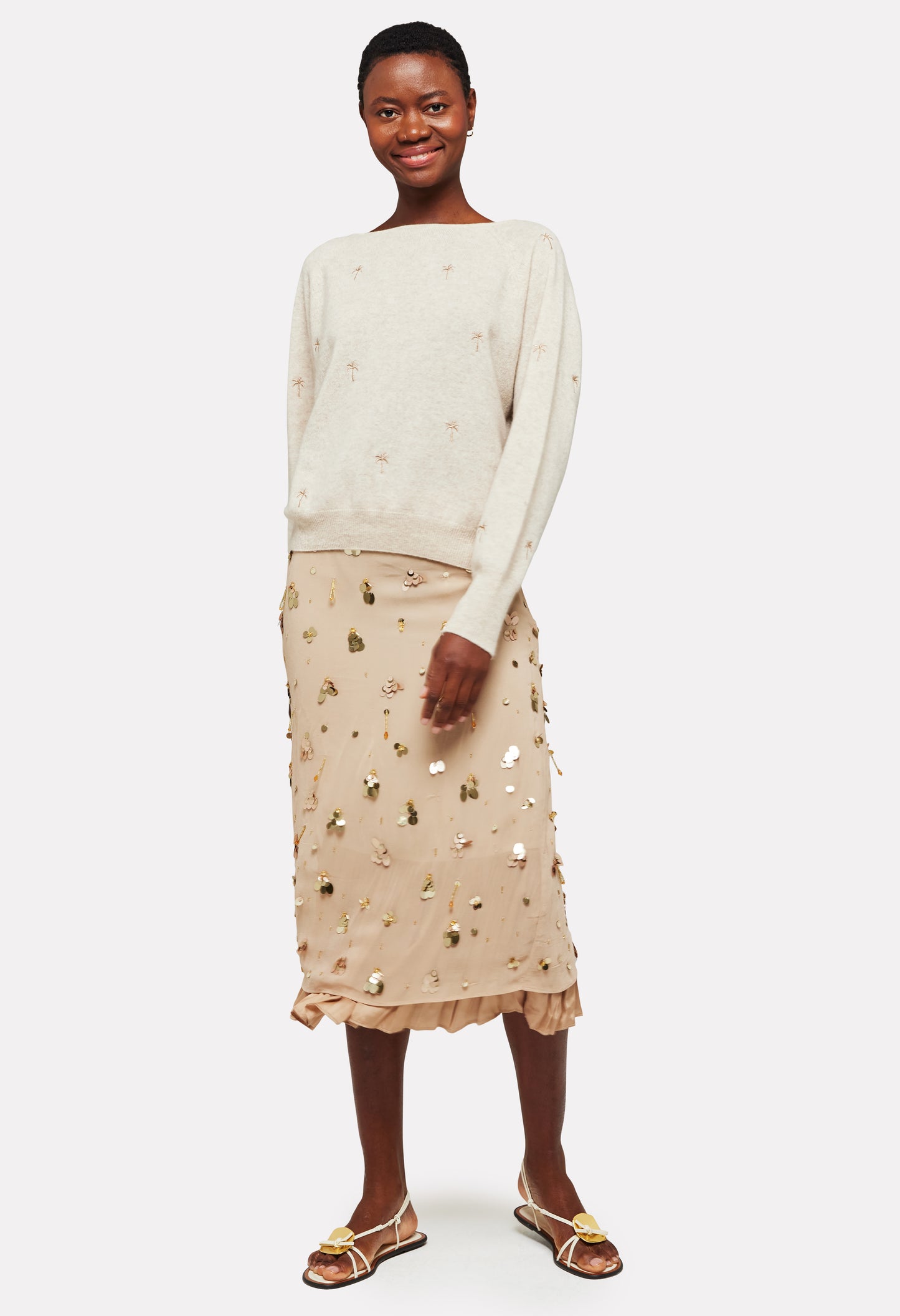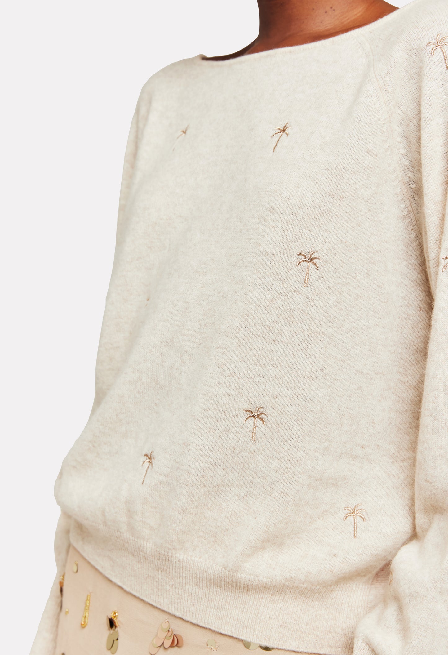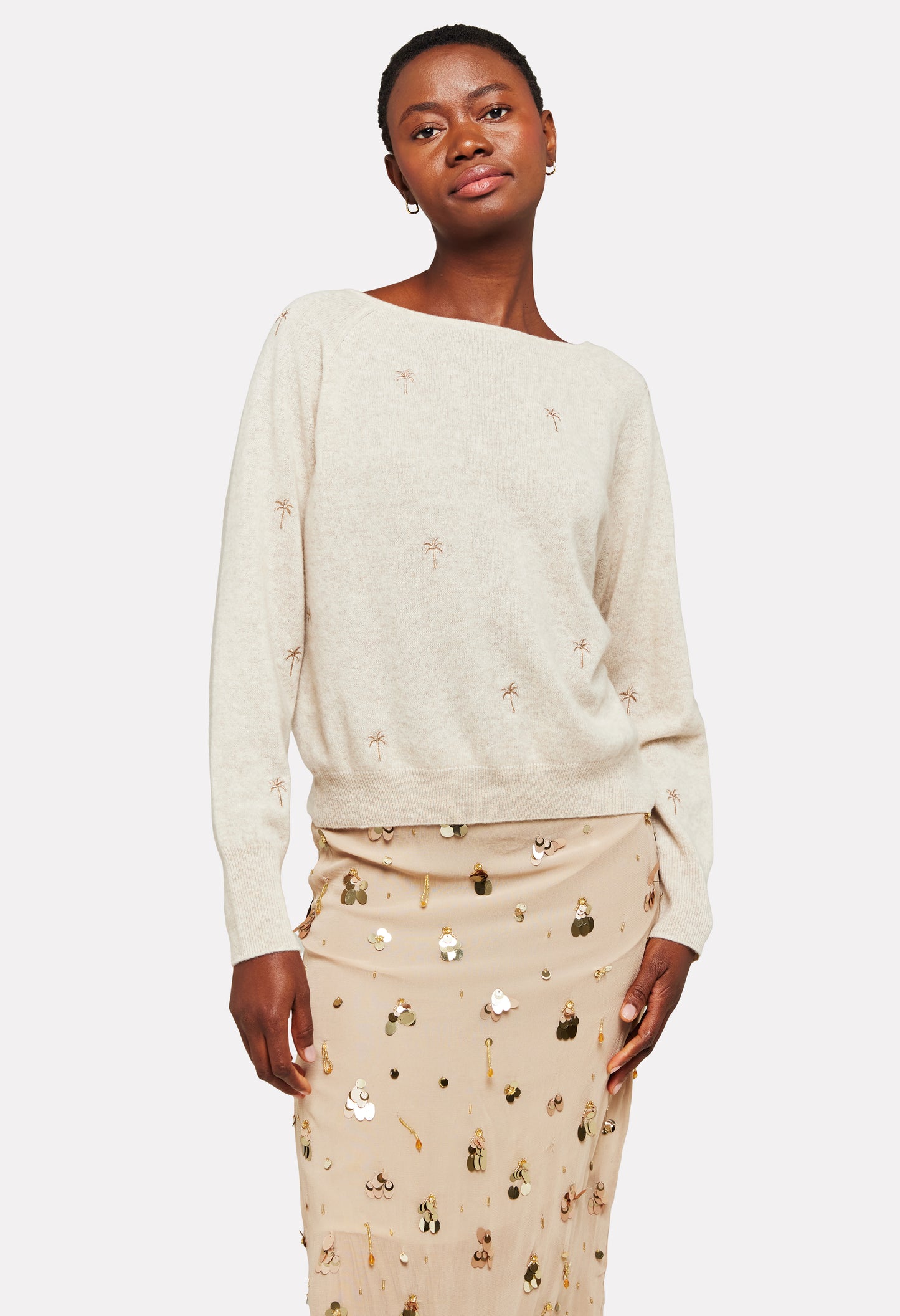 Embroidery Palm Twist Boat Neck