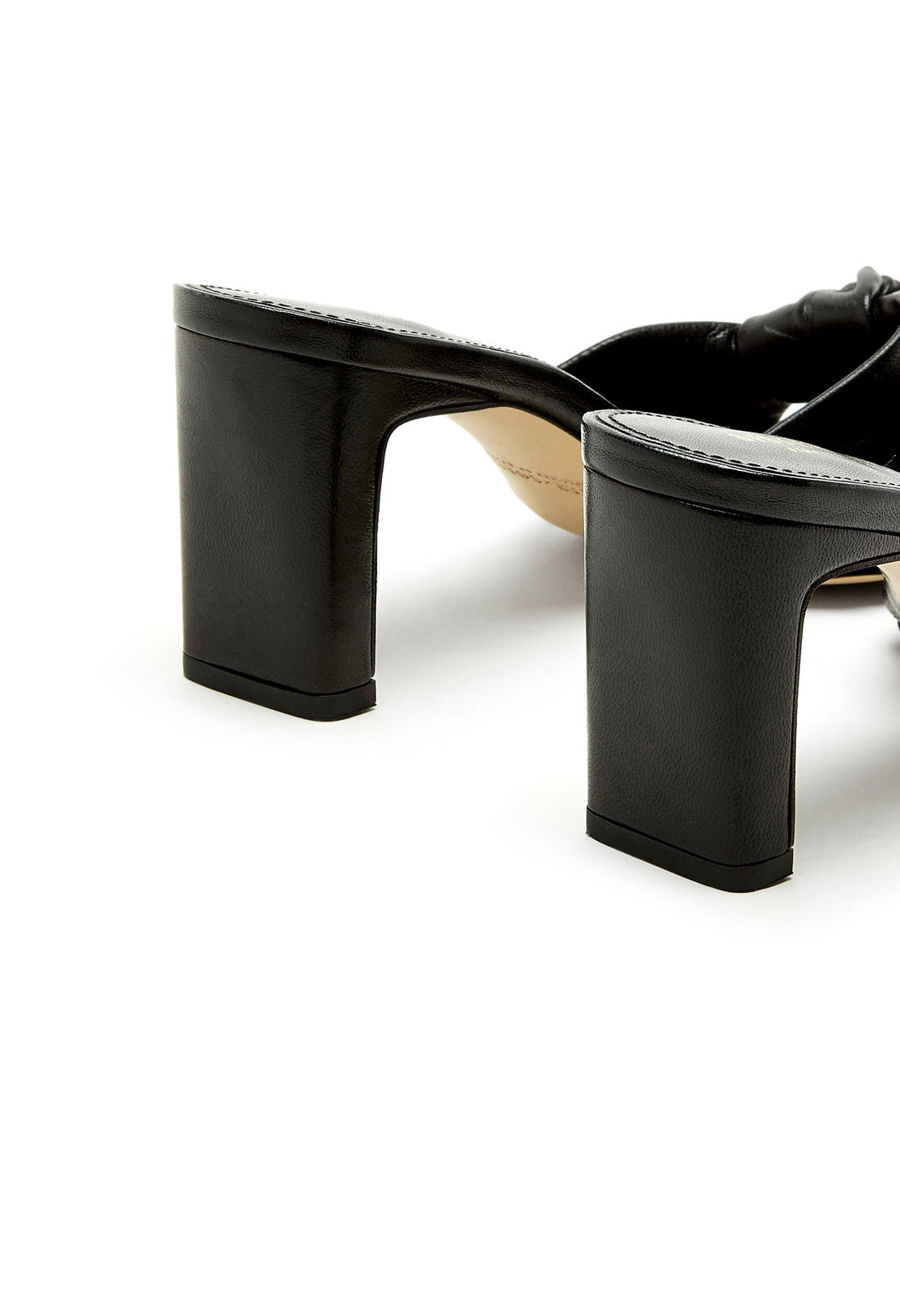 Slip into style with the Emmy slip-on sandal. The covered block heel is paired with a modern round toe and chic knotted strap detail on the upper. The heel is just the right height to keep you on your feet and dancing all night.
