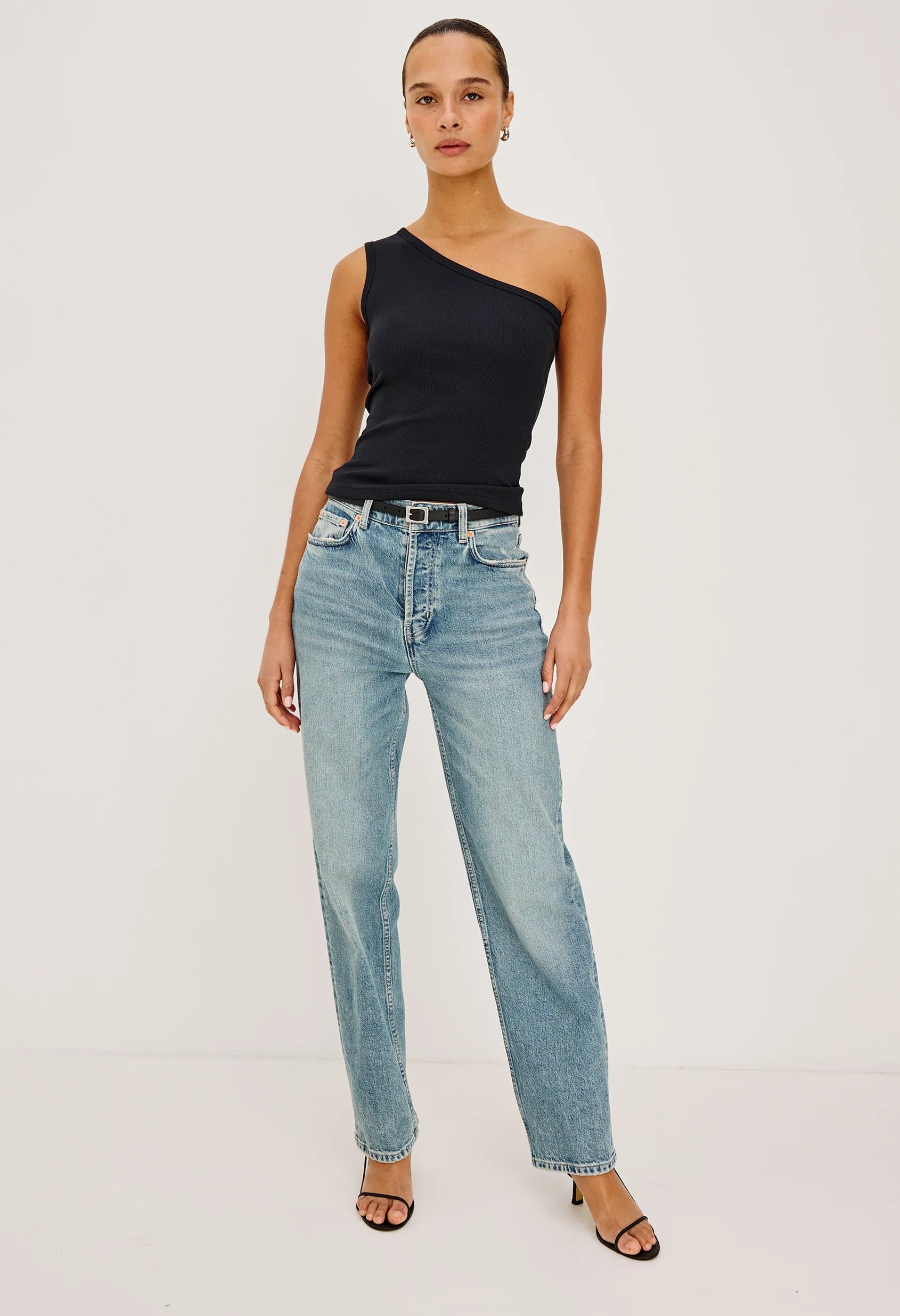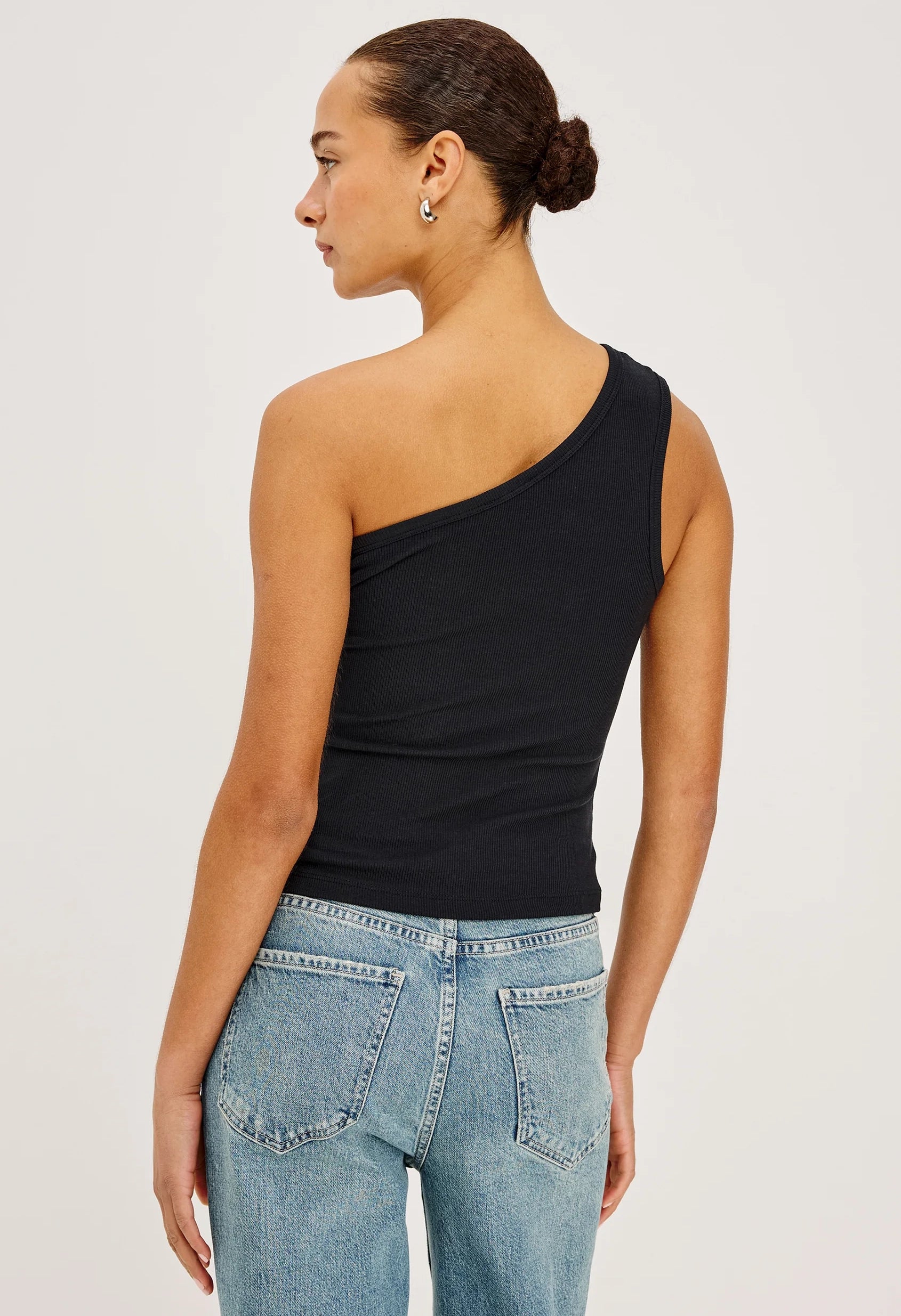 A versatile ribbed-knit tank top with an elegant asymmetrical neckline and sleek fitted cut—the Esti is a wardrobe staple that effortlessly transitions from day to night.
