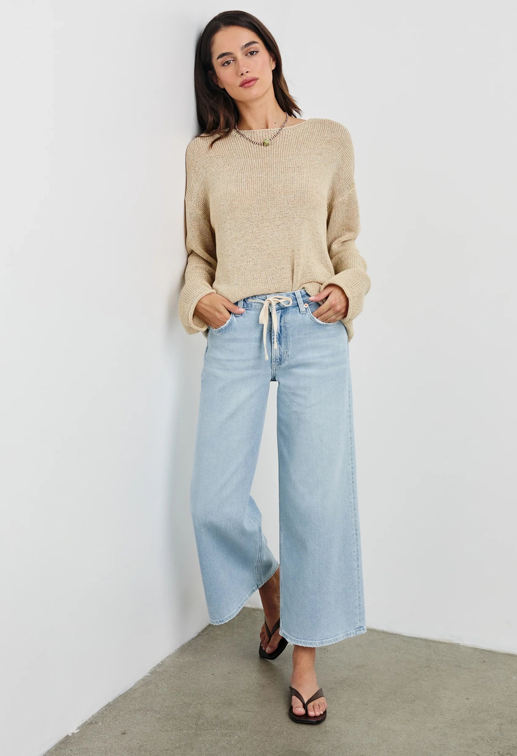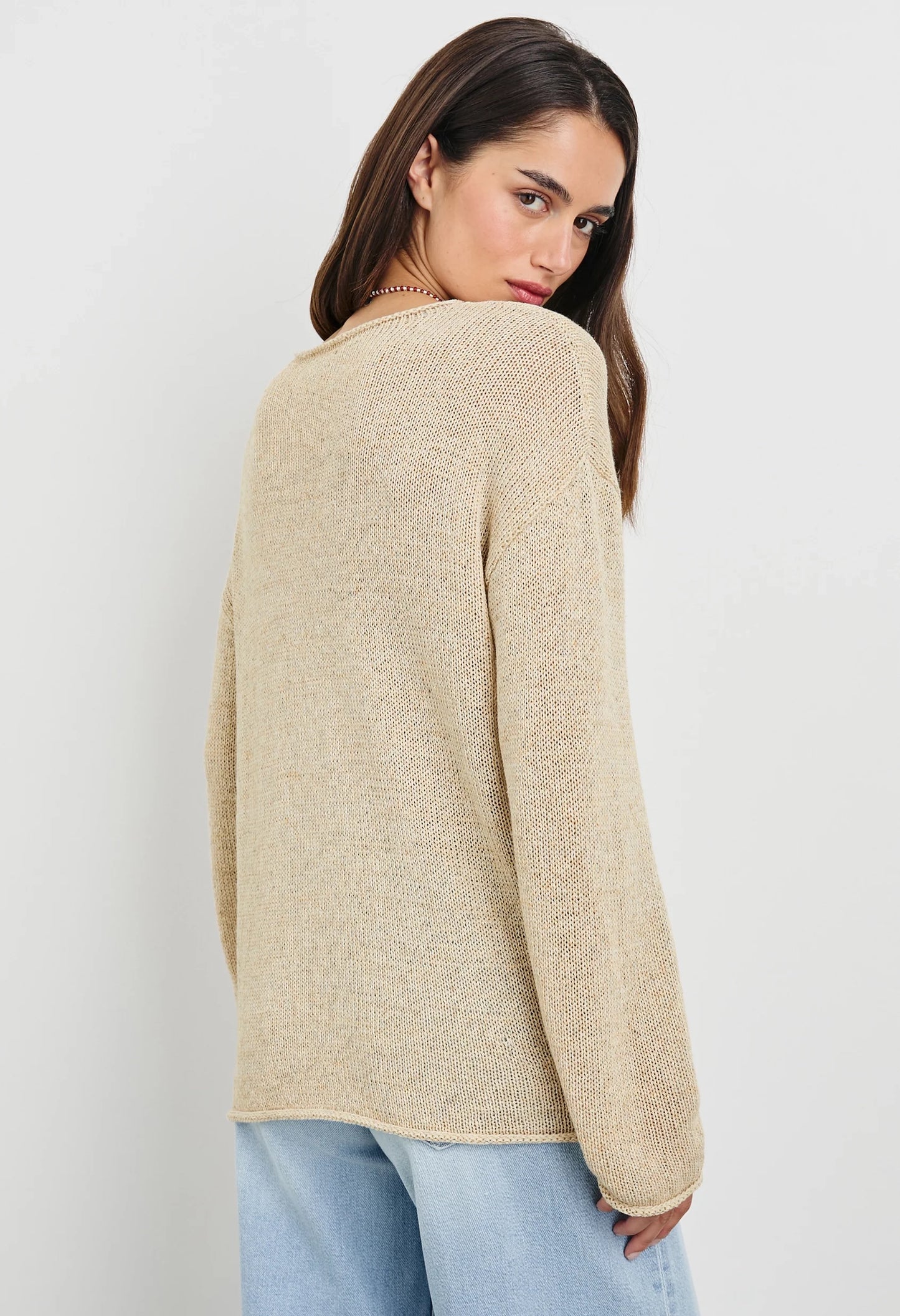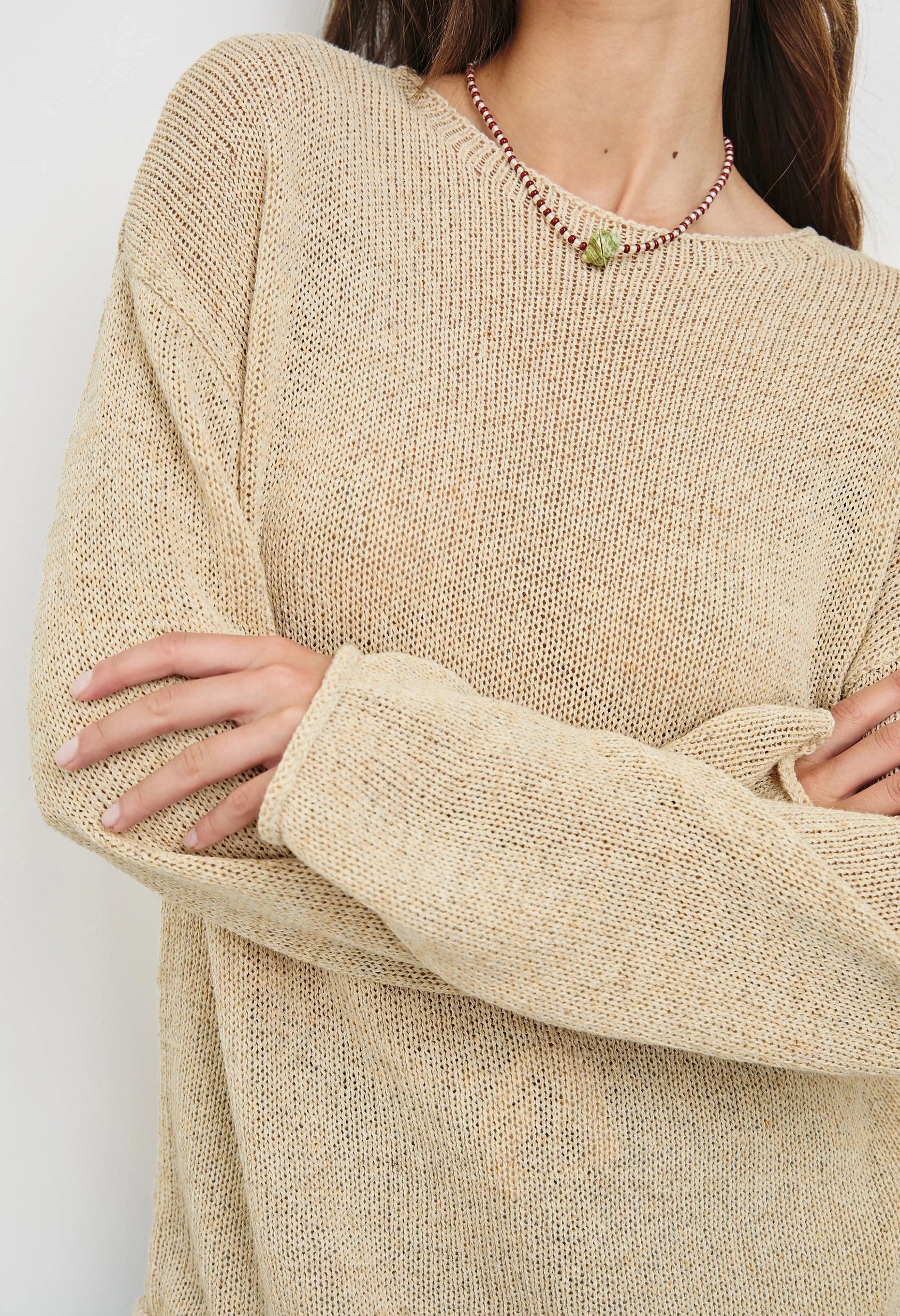 The Evangeline offers a refined lightweight knit design with an elegant boat neckline and comfortable relaxed silhouette. Crafted from a premium cotton blend fabric, this versatile piece provides effortless style and comfort for any occasion.