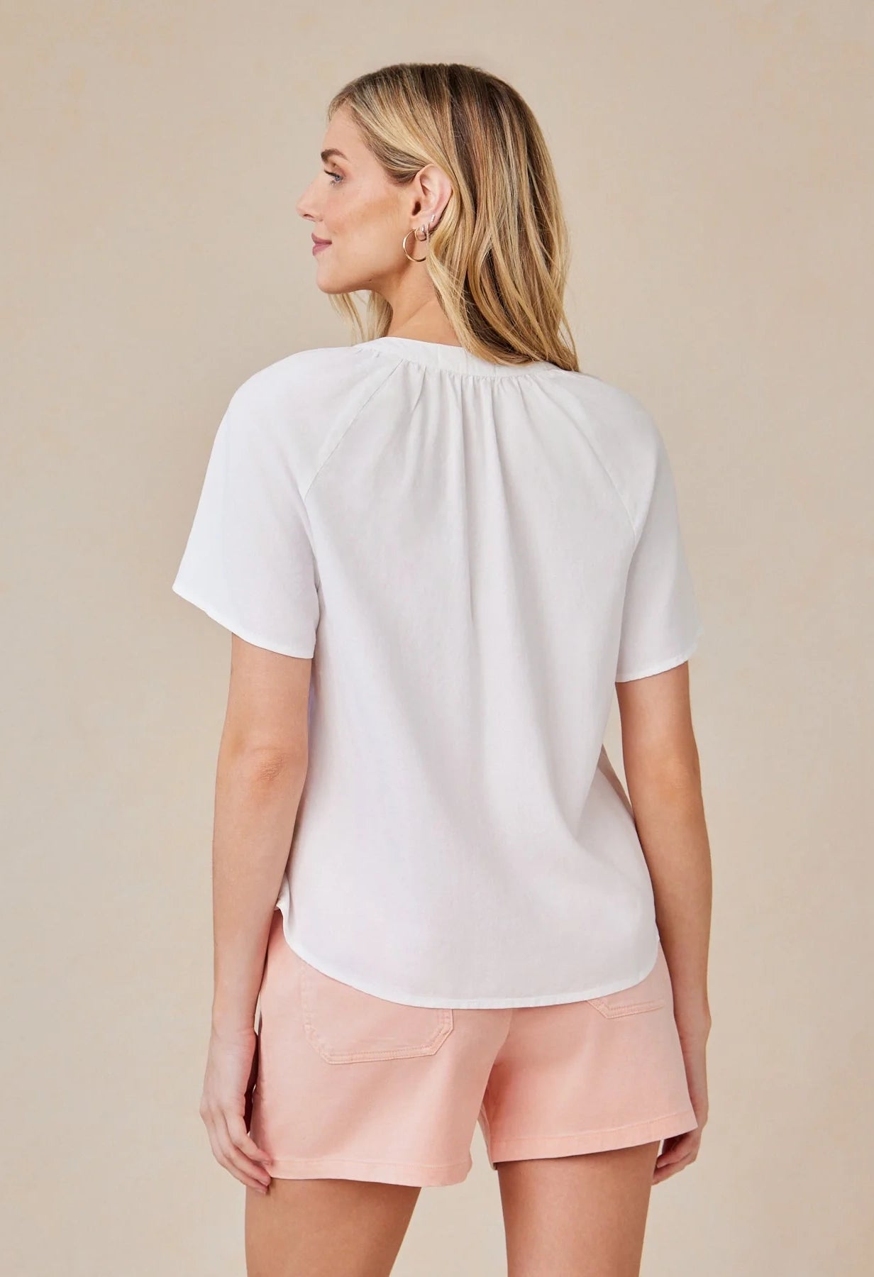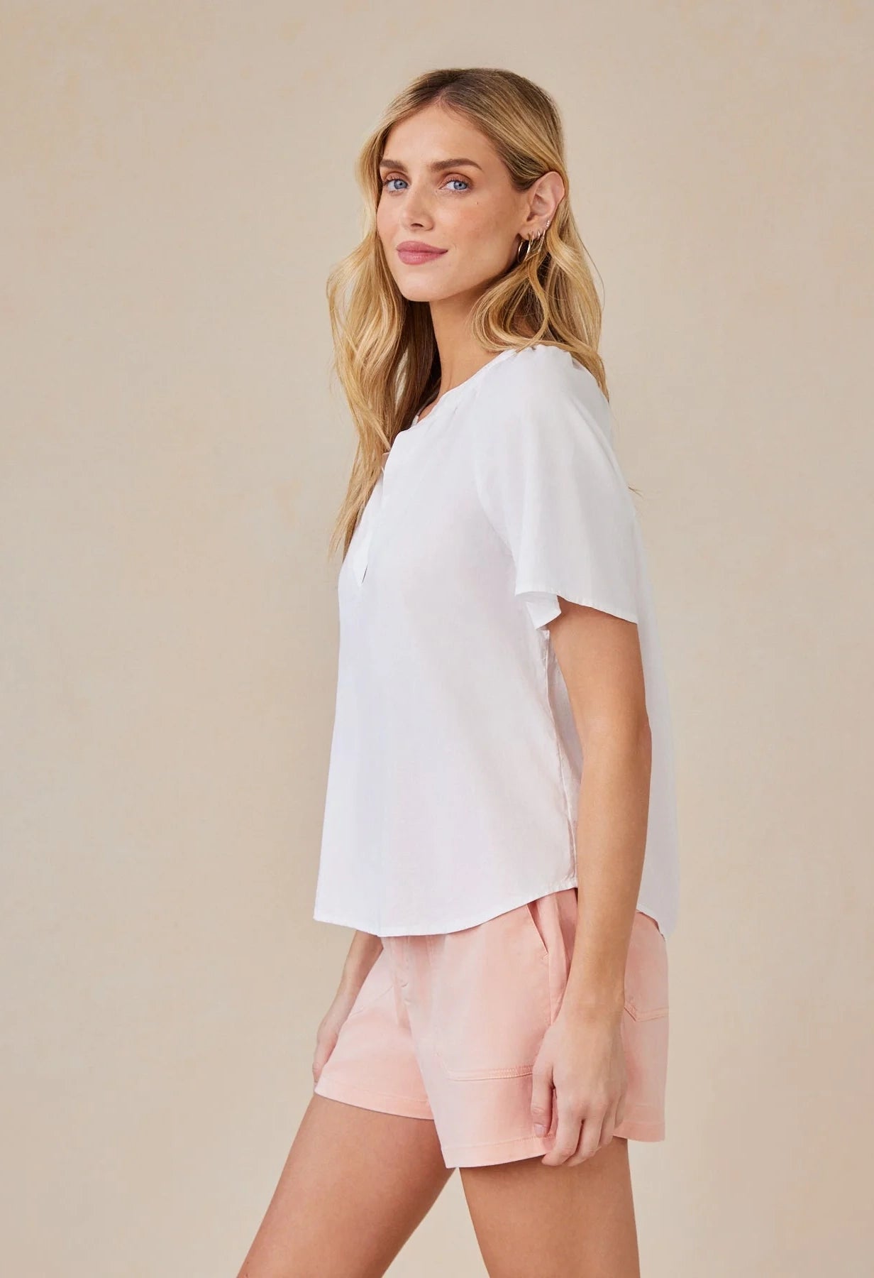 This Flowy Short Sleeve Pullover is crafted to offer a comfortable fit, making it perfect for any event. Its smooth Tencel material and relaxed casual design make it an ideal choice for staying cool and fashionable throughout the day.