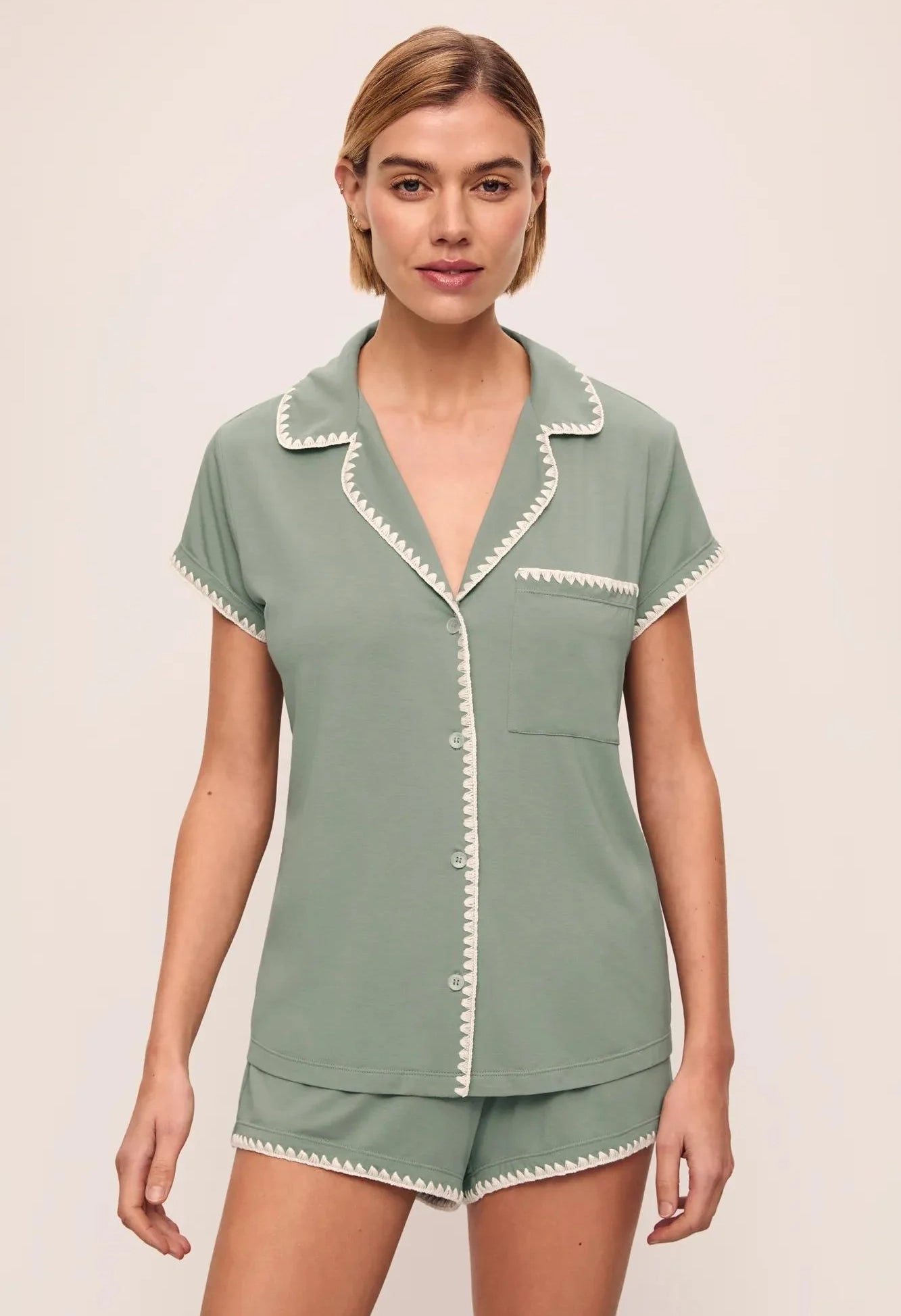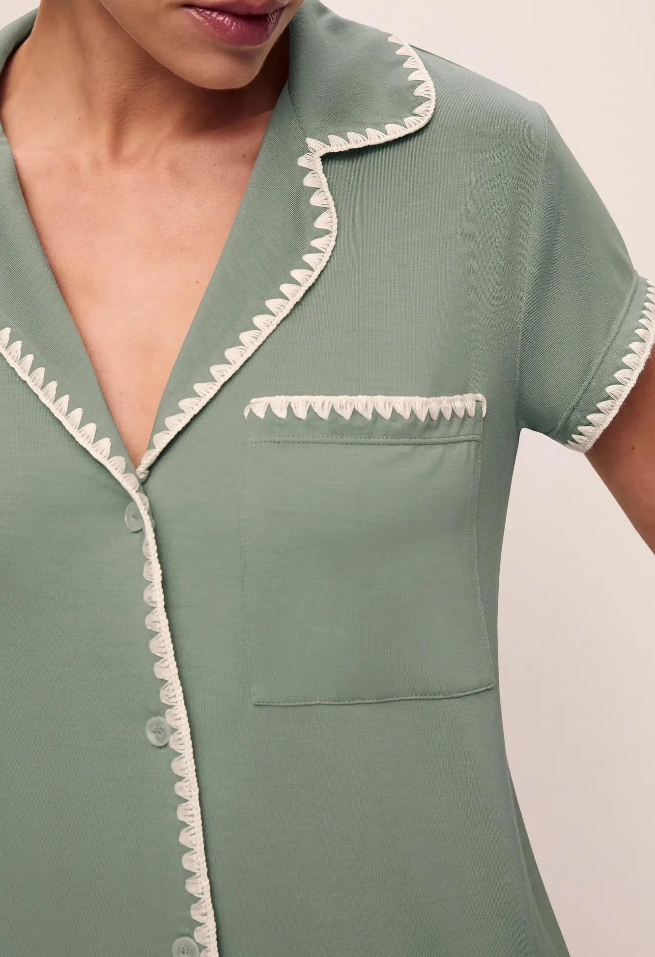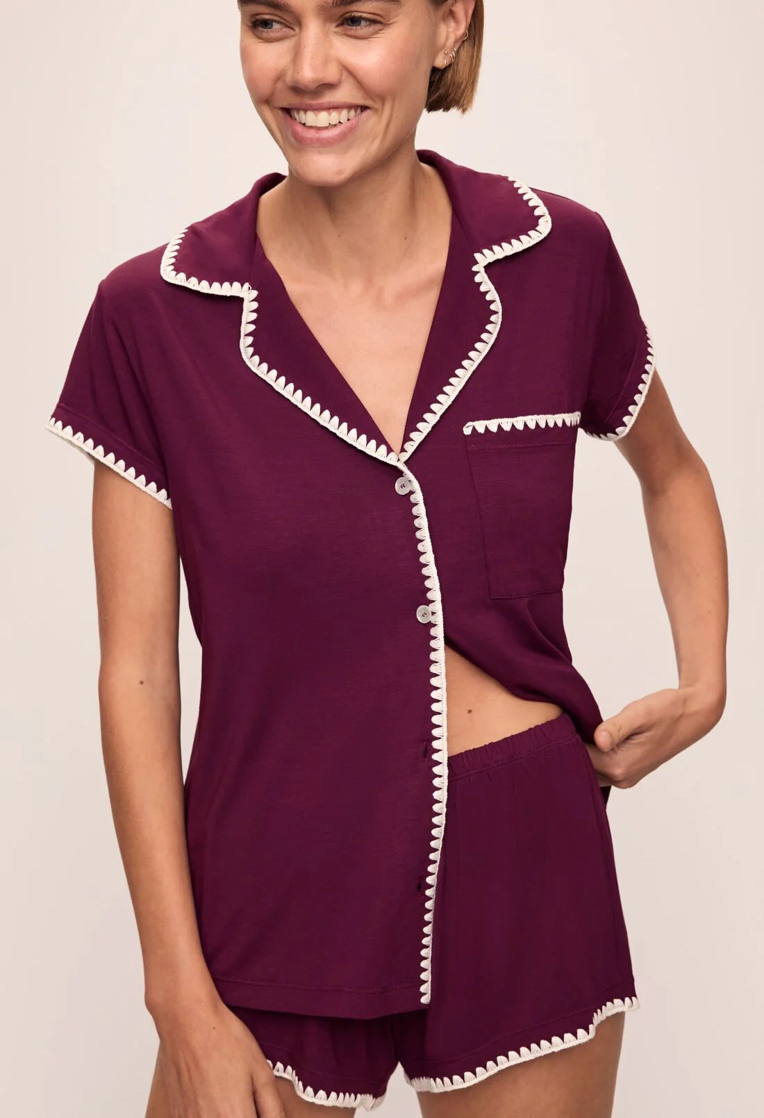 Eberjey took all the best features of the Gisele collection—the softness, the comfort, the temperature-regulating fabric—and added eye-catching artisanal whipstitch piping to both the top and bottom for a playful, Bohemian vibe. Made from TENCEL™ Modal fibers and a touch of spandex, this super soft fabric is verified by OEKO-TEX® Standard 100, meaning it’s dyed with safe and non-toxic dyes. This set has a classic slim fit short sleeve top and a low-rise cheeky short with an elastic waistband, so you can feel comfortable and stylish all at the same time.