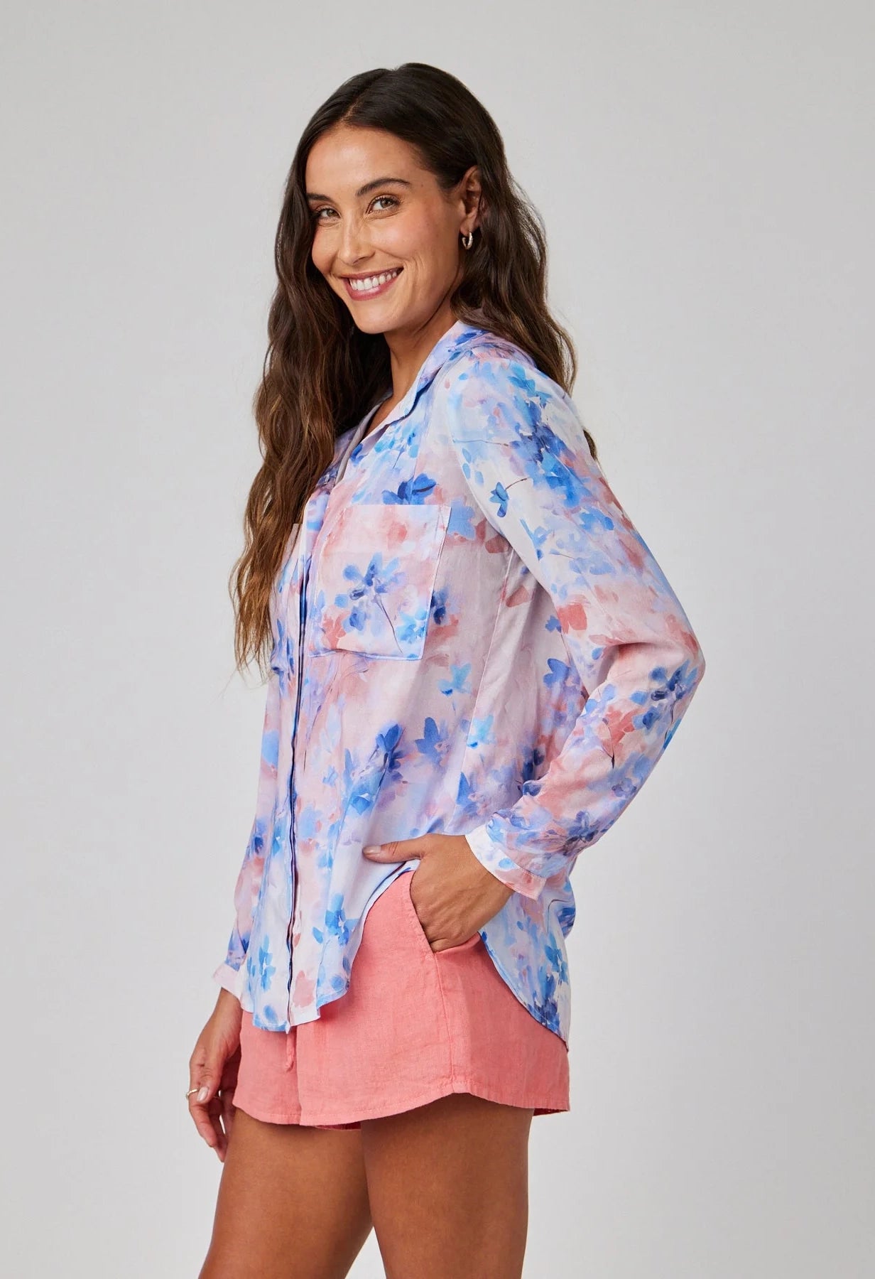 Elevate your spring wardrobe with the Full Button Down Hipster Shirt in Garden Mist Print. This vibrant shirt features a classic, full button-down design that offers both style and comfort. The colorful garden print is perfect for adding a pop of color to any outfit. Don't miss out on this must-have piece for the season.