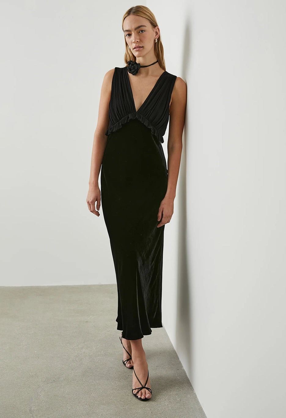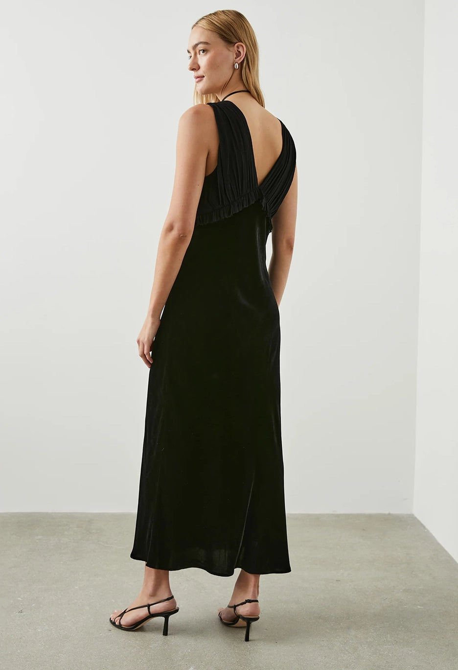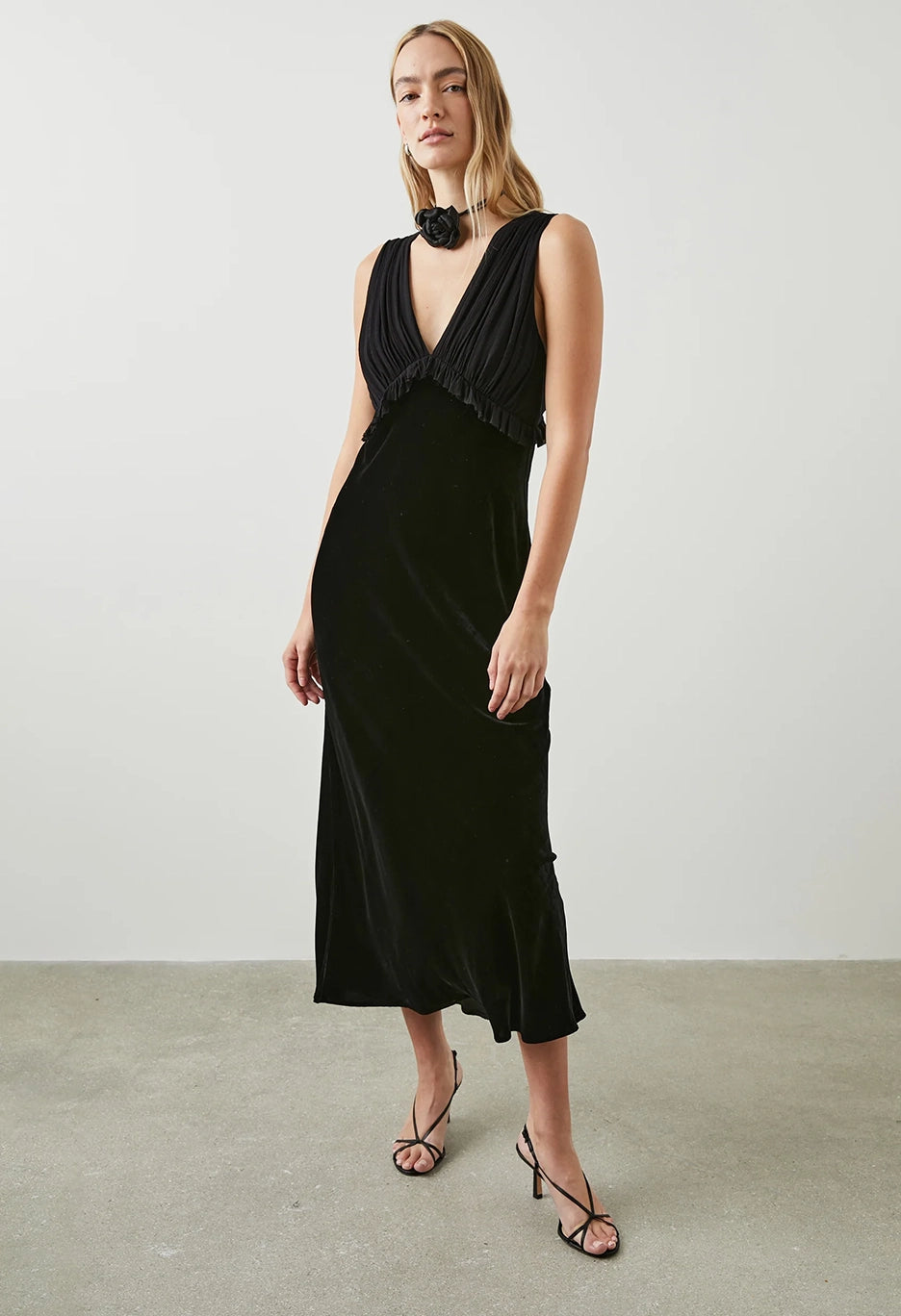 A staple black dress with a velvet spin. The Gilda is made from soft, silky velvet with a chiffon top. It's luxe, versatile and a must-have in your winter wardrobe.