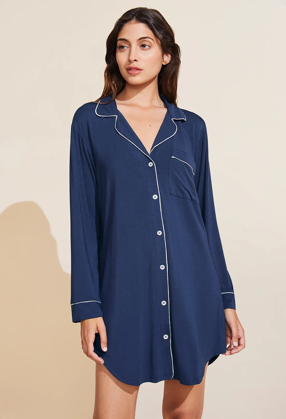 The luxurious, temperature-regulating knit fabric drapes and falls in all the right ways, enveloping the body in comfort. Plus, it’s machine washable, and gentle on skin, so it not only feels beautiful but it’s easy to care for, too. This silhouette feels like you’re sleeping in your favorite tee. Wear it alone or with your favourite PJ bottom.