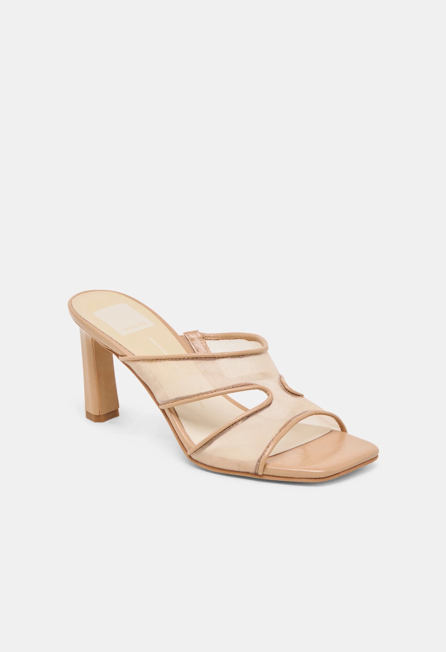 Gitel is a responsibly-made IT sandal. Its square toe, slim block heel, and cut out design are guaranteed to grab attention.