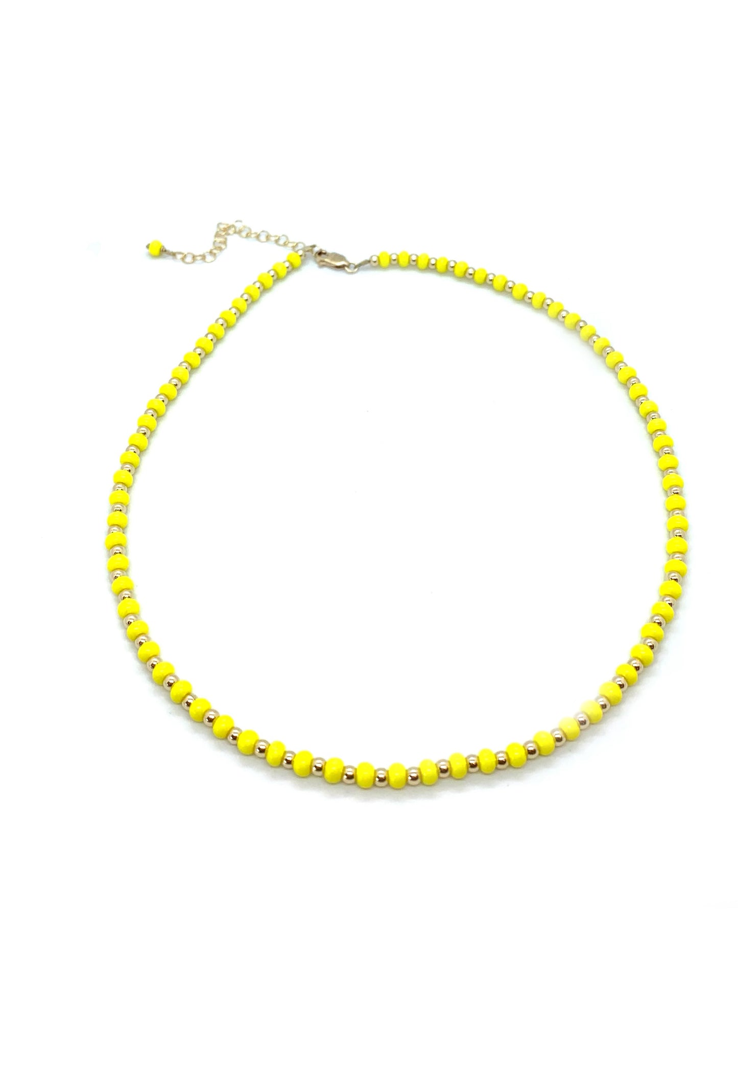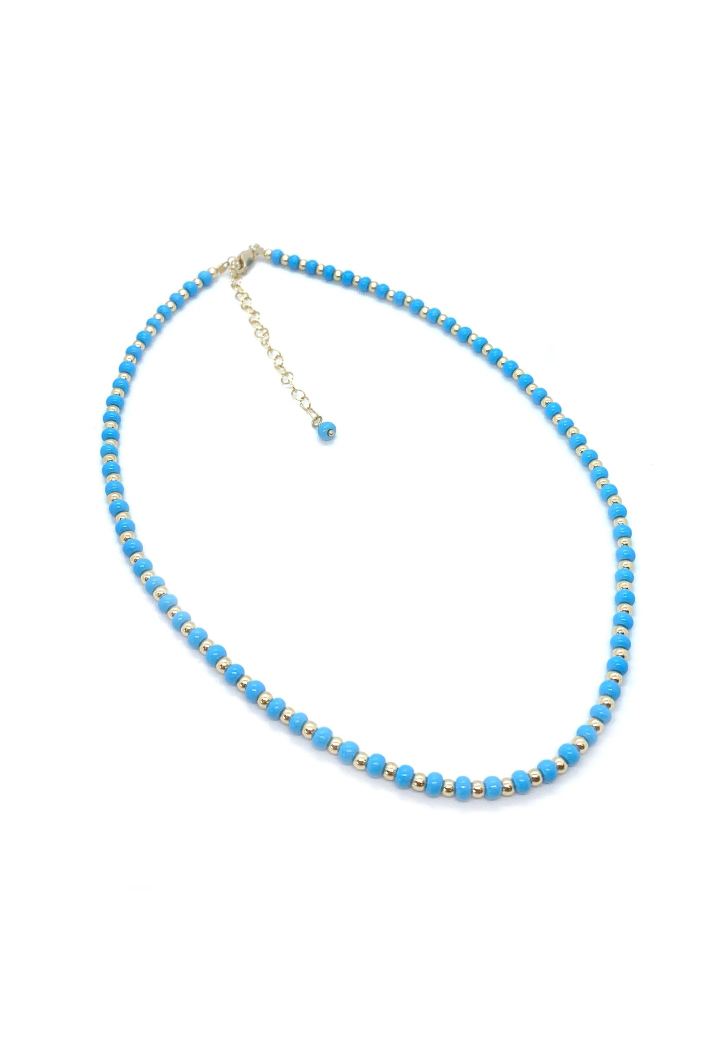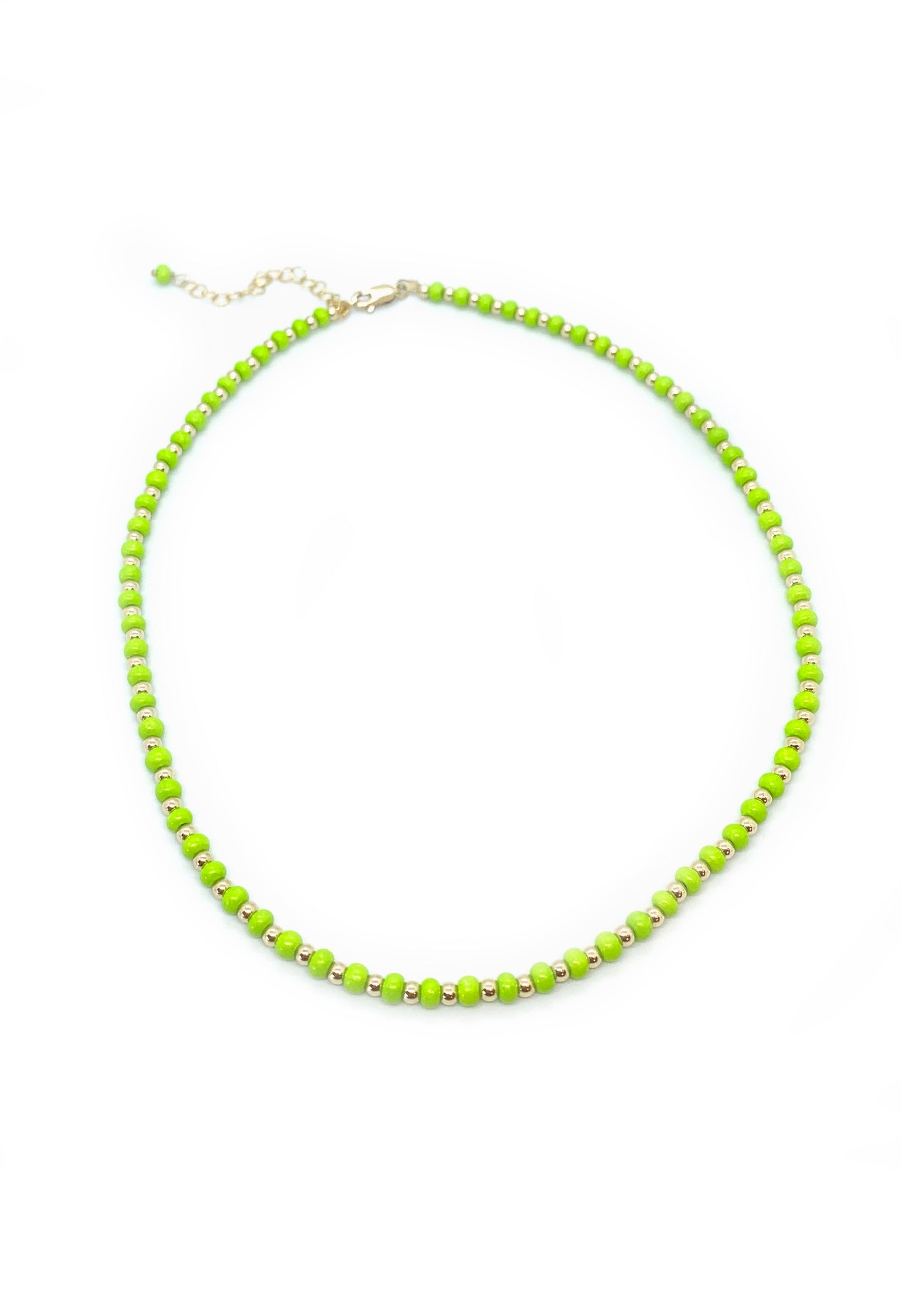 Necklace with alternating gold filled bead and seed bead.