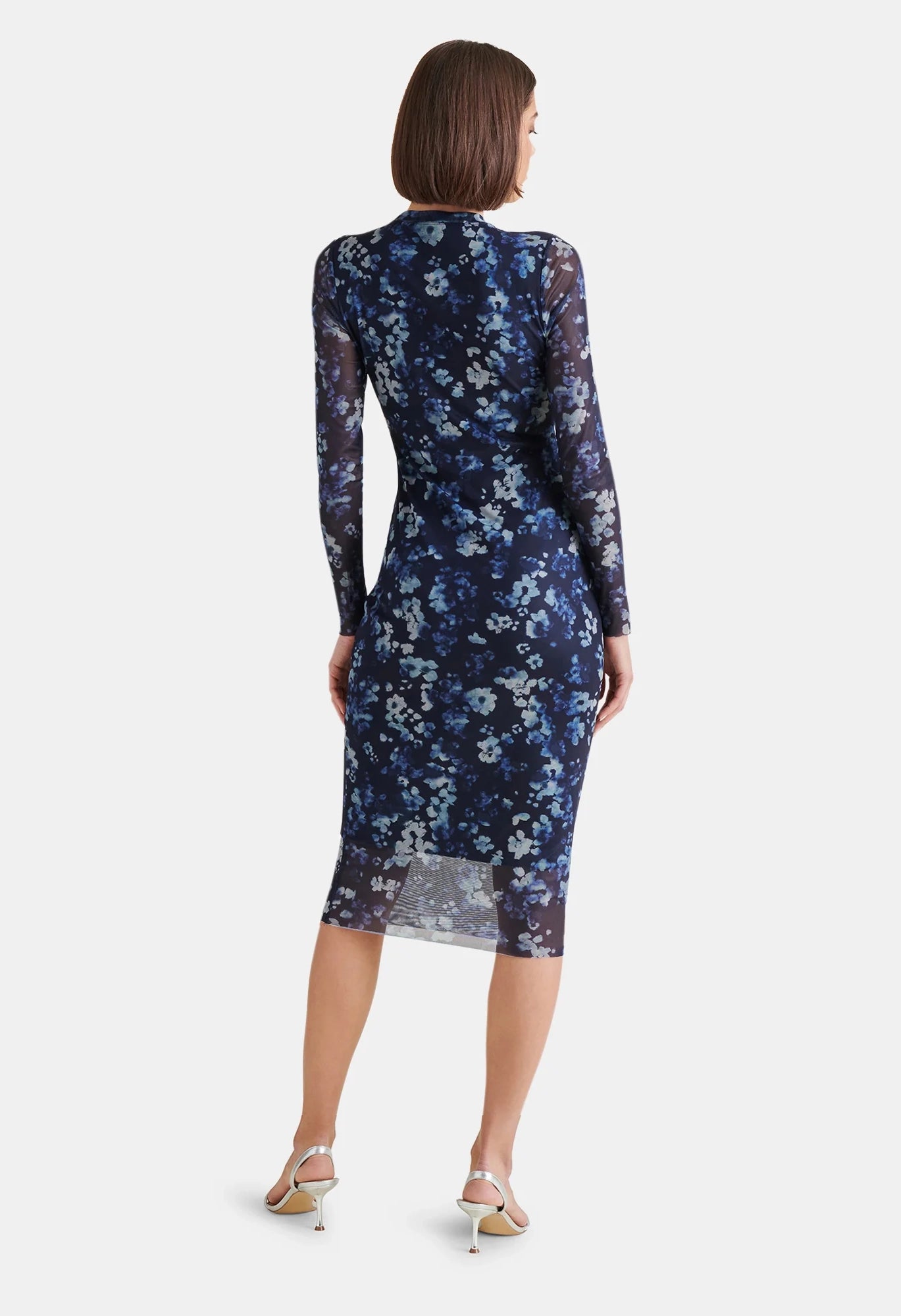 The Hailee Dress features a beautiful floral print and a classic midi length, making it perfect for any occasion. With a round neckline and long sleeves, it offers a professional yet feminine look. The fitted silhouette and straight hemline add a touch of elegance to this must-have dress.
