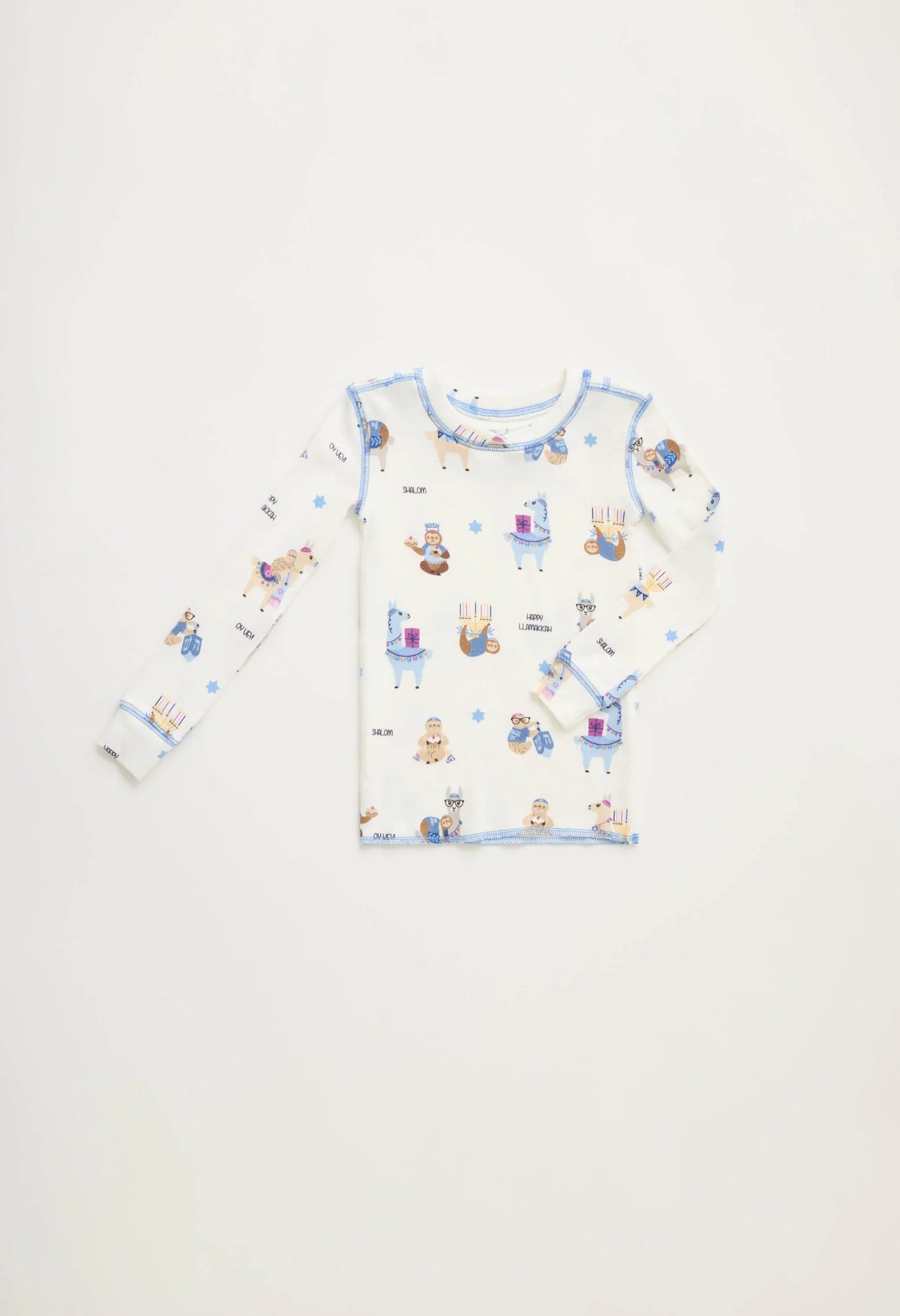 Cozy and stylish, this kids' pajama set features a charming llamas pattern perfect for holiday celebrations. Ideal for fun family nights or snuggly lounging, it also makes a thoughtful gift for the Festival of Lights
