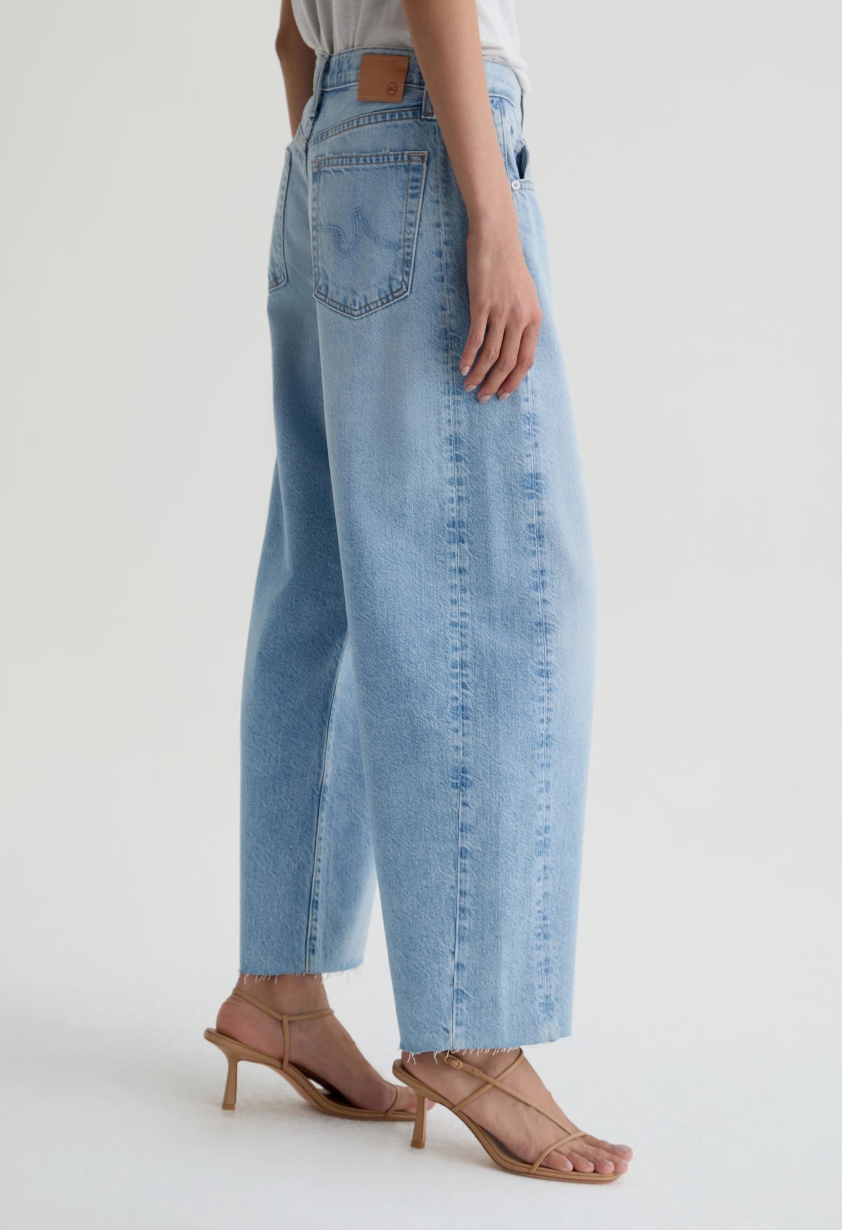 The Hattie Crop reimagines the barrel jean with contemporary style and refined construction. Built from Drapey Rigid Denim, it delivers structure without sacrificing softness, creating an elegant silhouette that moves with you. The high-rise cut and curved leg shape offer a distinctive fit, while the cropped length keeps things modern. Finished in the light Gesture wash with artful whiskering, fading, and a raw-cut hem, this piece balances polished sophistication with effortless edge.