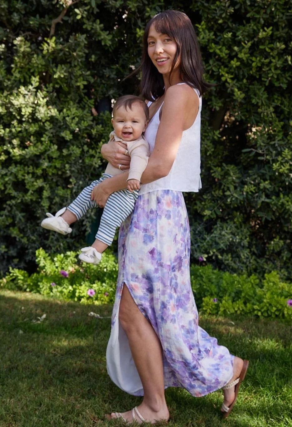 This elegant Iris Floral Print skirt, ensures a comfortable and flattering fit, a beautiful addition to your Spring wardrobe.
