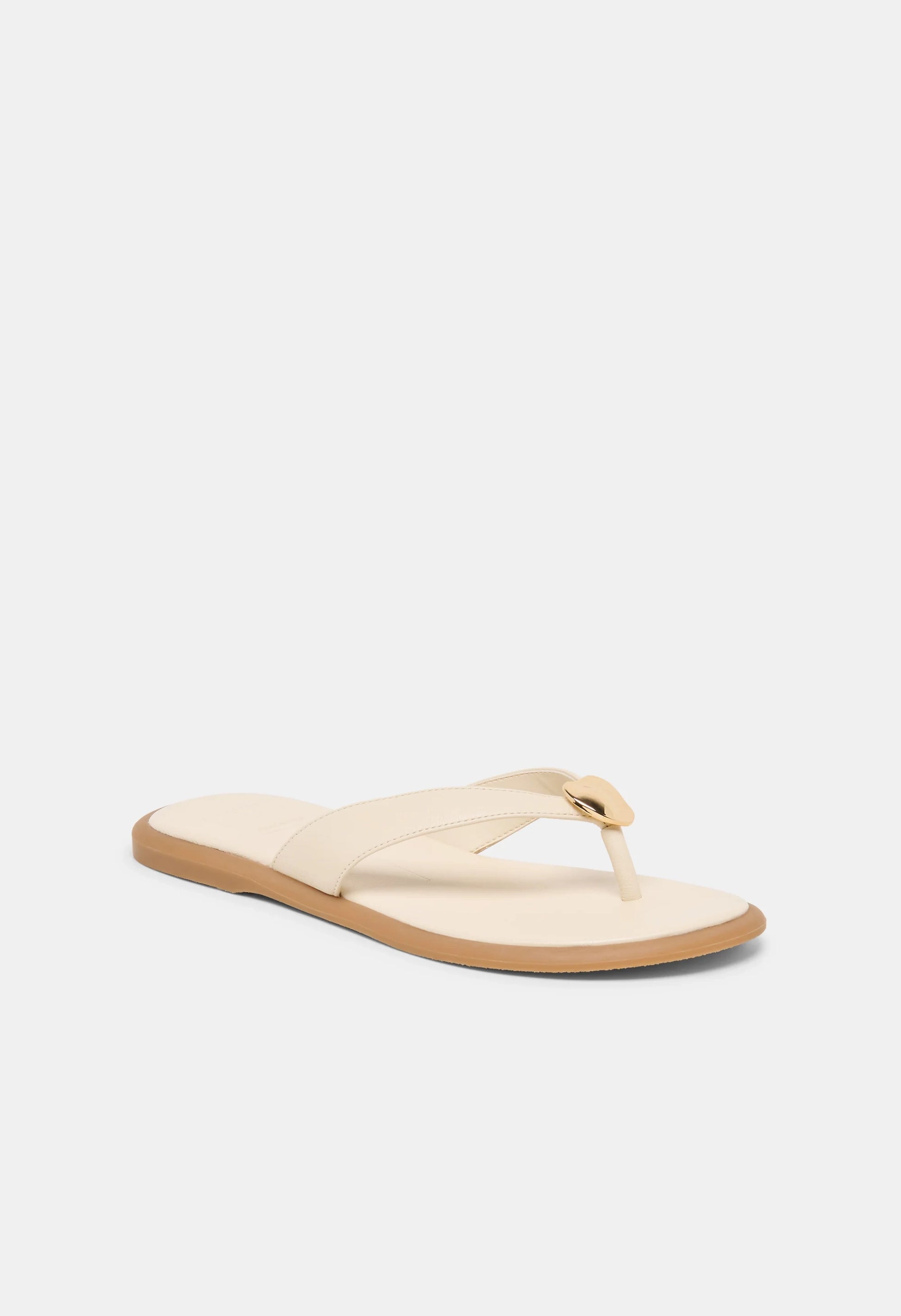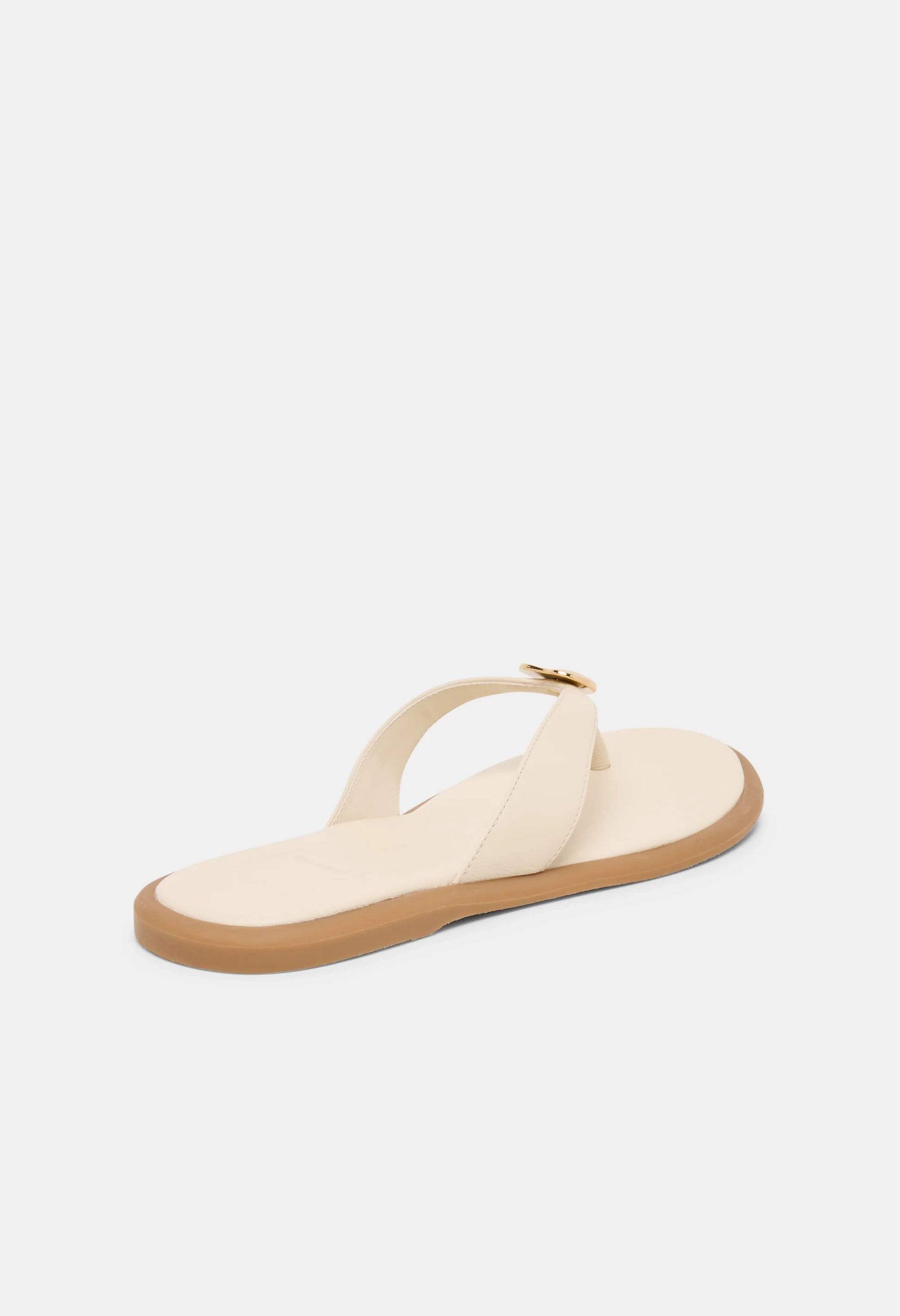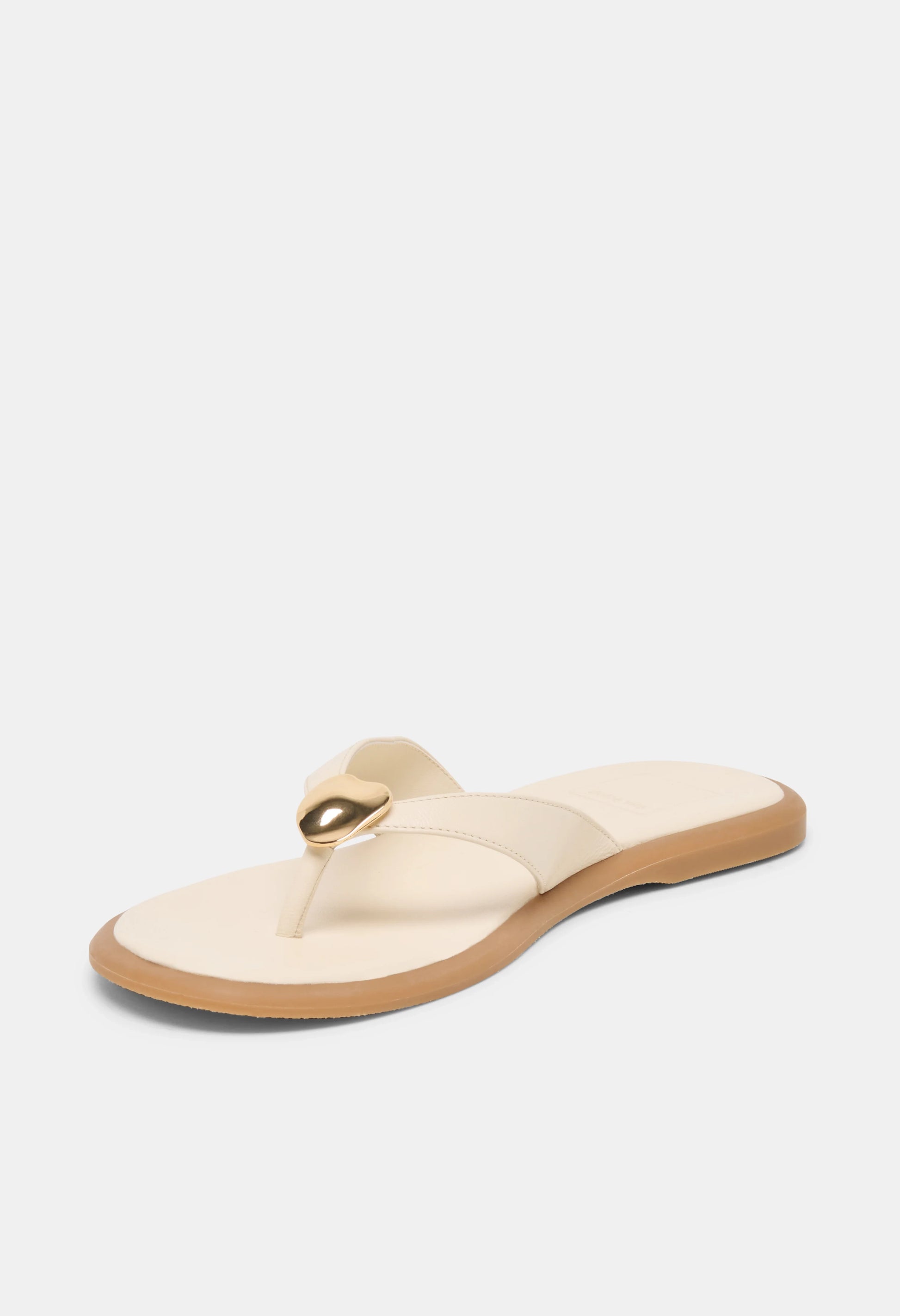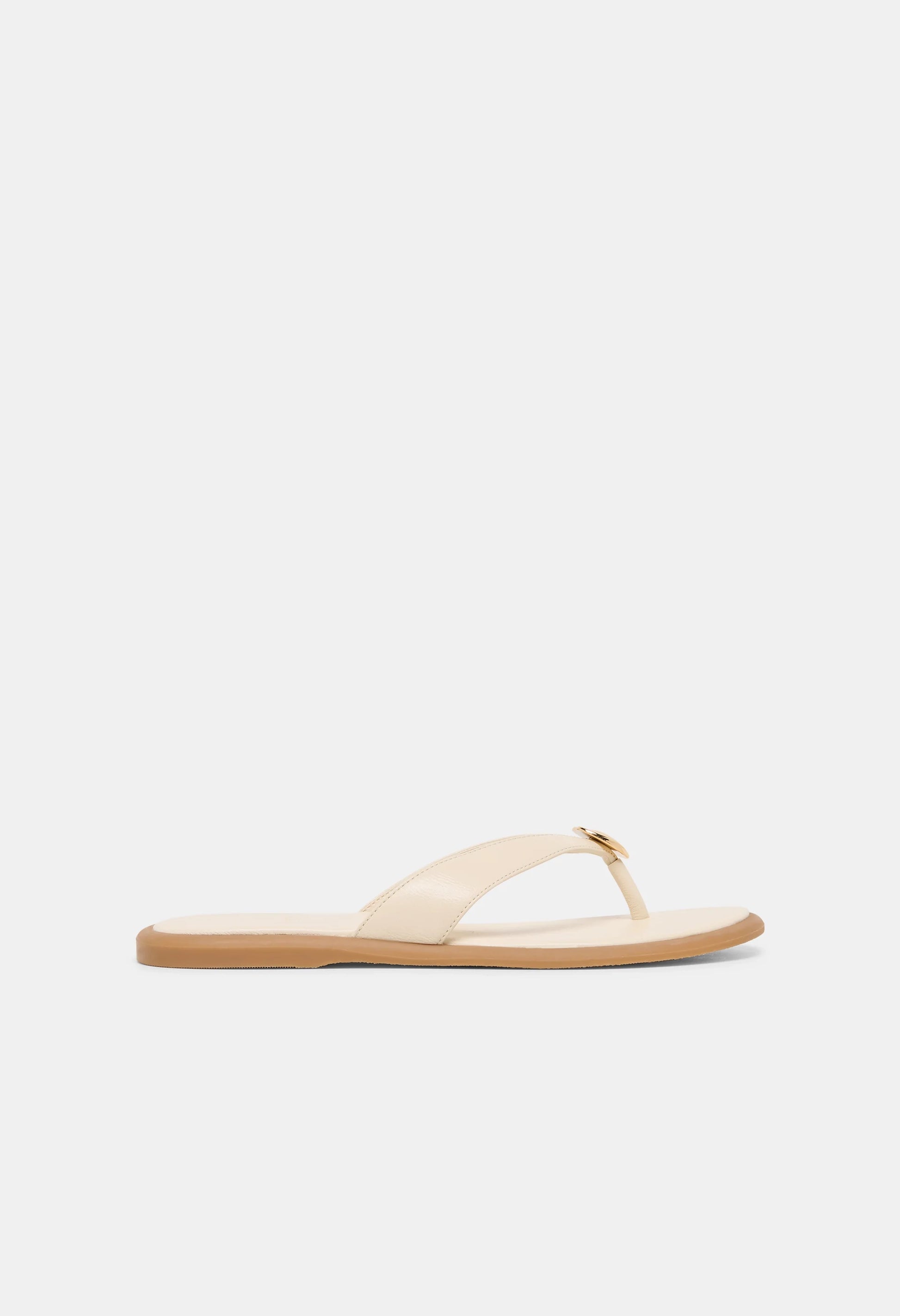 JAINA gives the classic flip-flop a polished upgrade. Sleek leather straps and a chic metal accent create a minimalist look that feels effortlessly refined. Available in black, bone, and dark brown, this versatile sandal pairs perfectly with everything from relaxed denim to breezy dresses.