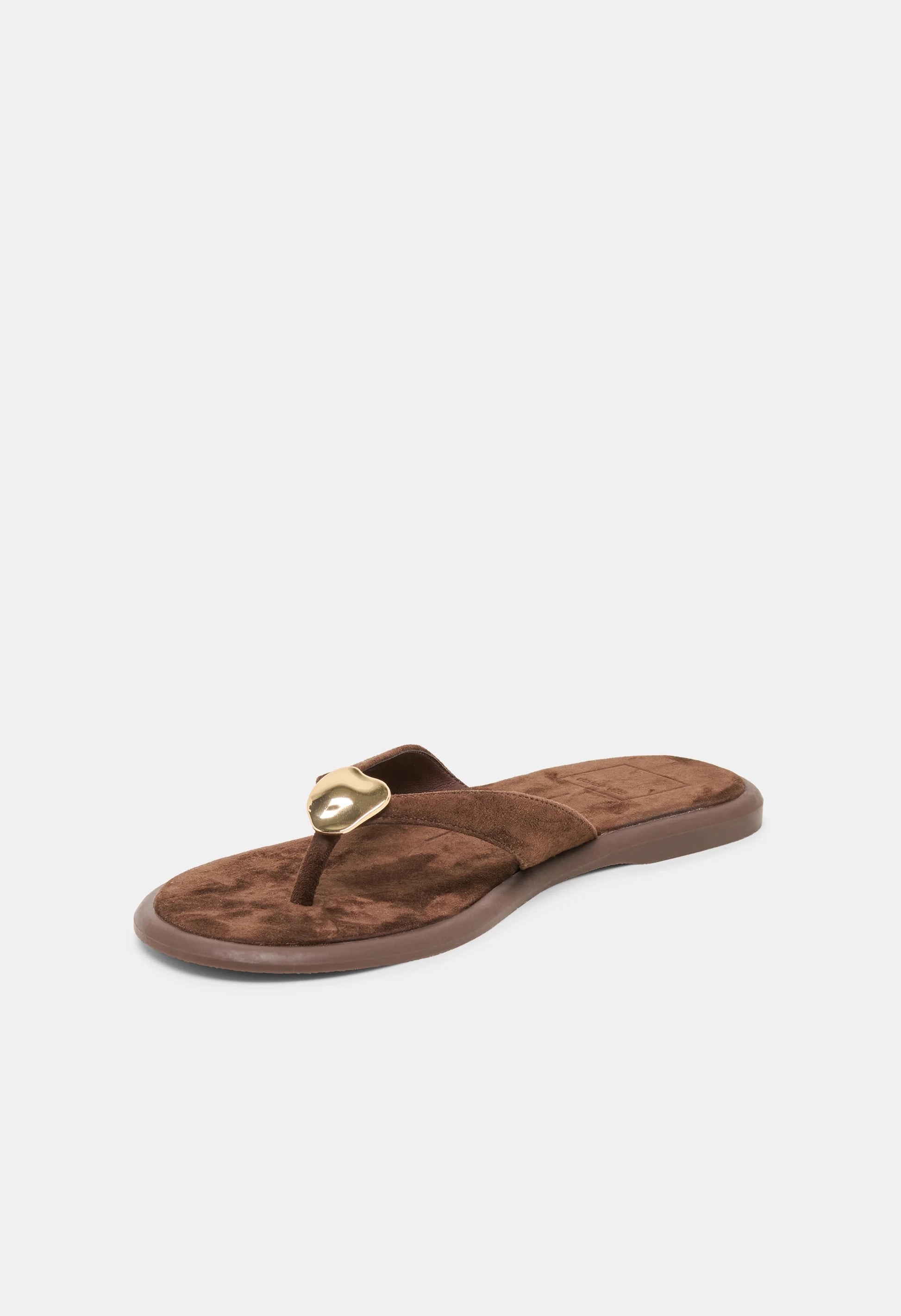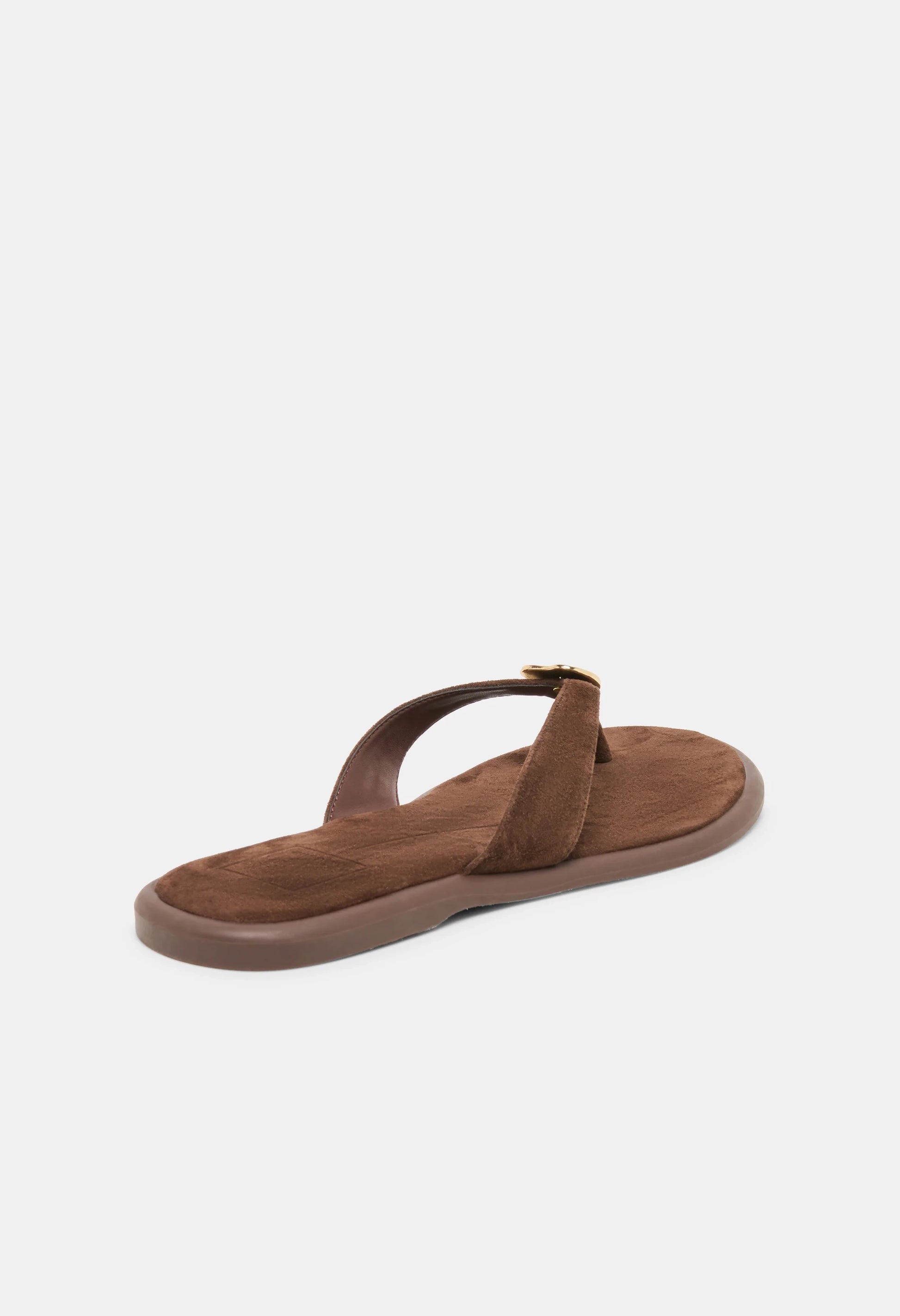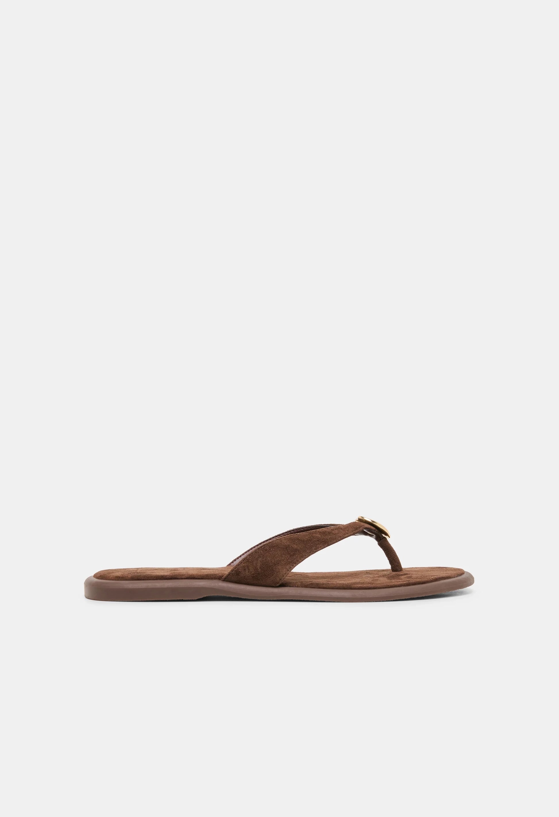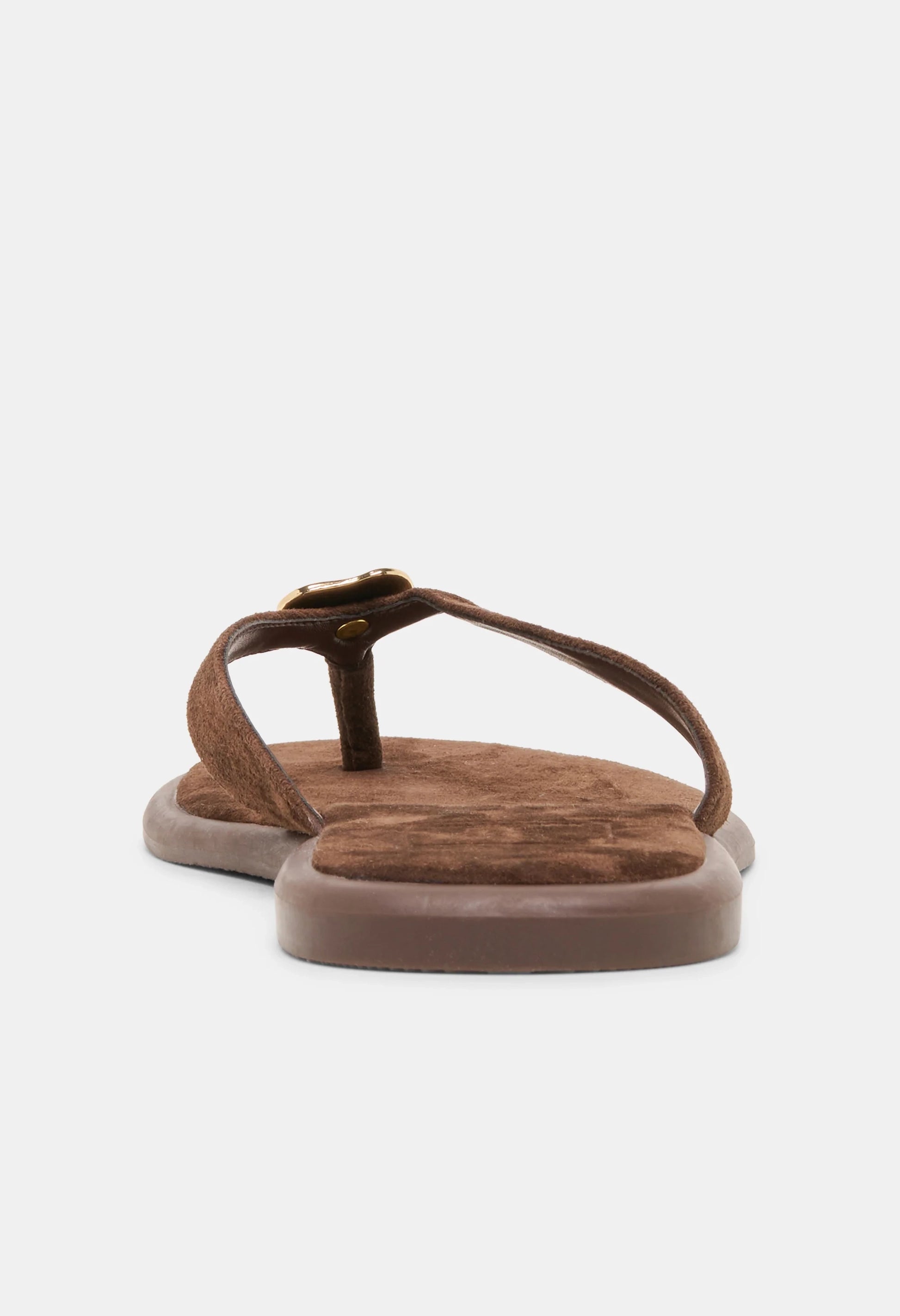 JAINA gives the classic flip-flop a polished upgrade. Sleek leather straps and a chic metal accent create a minimalist look that feels effortlessly refined. Available in black, bone, and dark brown, this versatile sandal pairs perfectly with everything from relaxed denim to breezy dresses.
