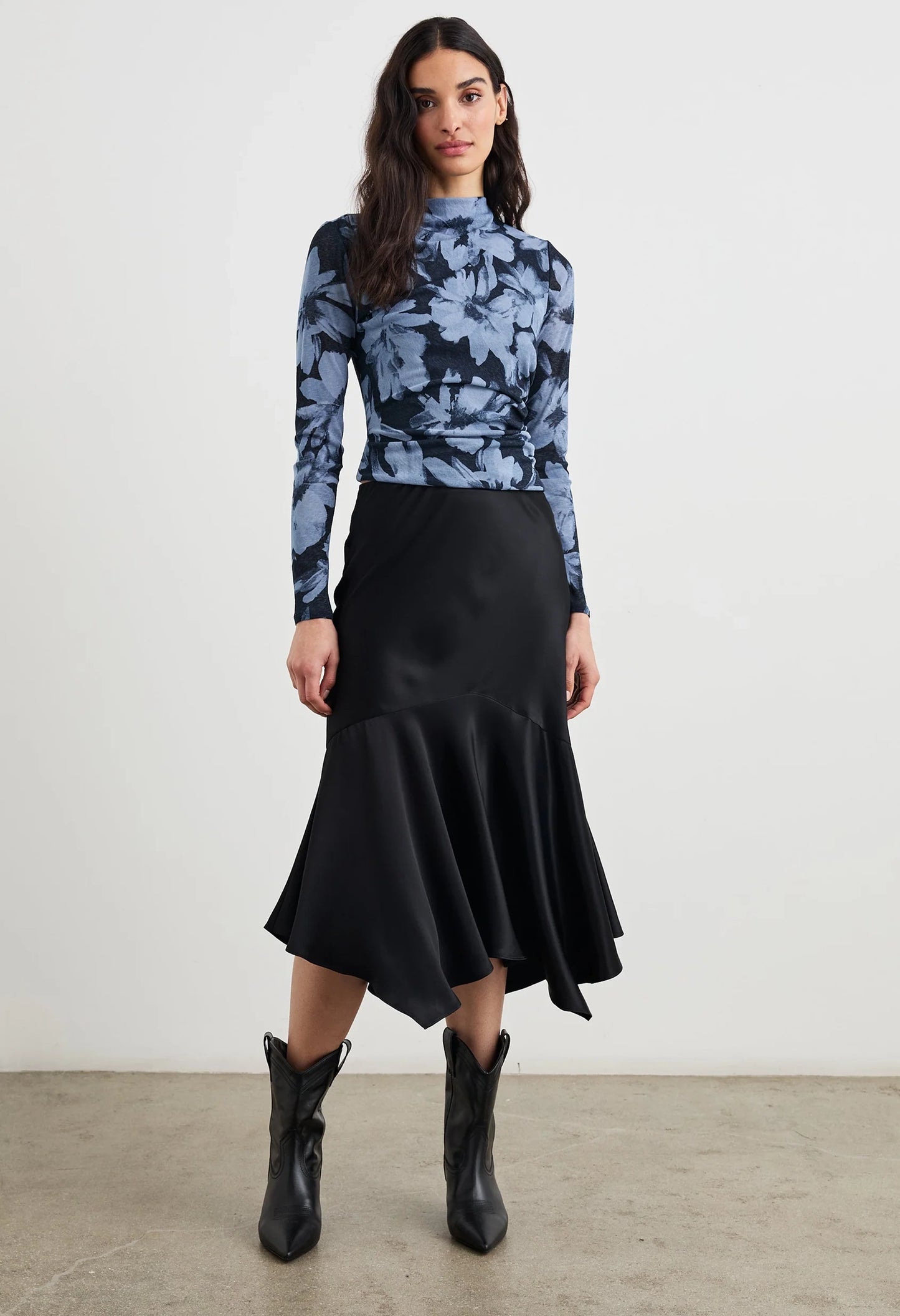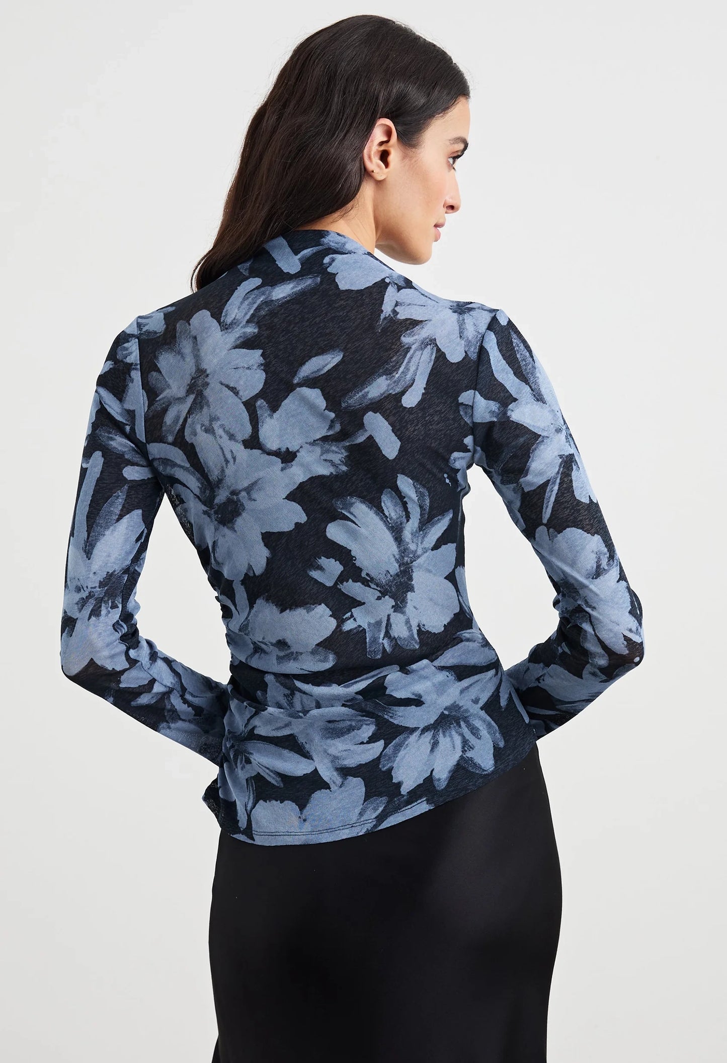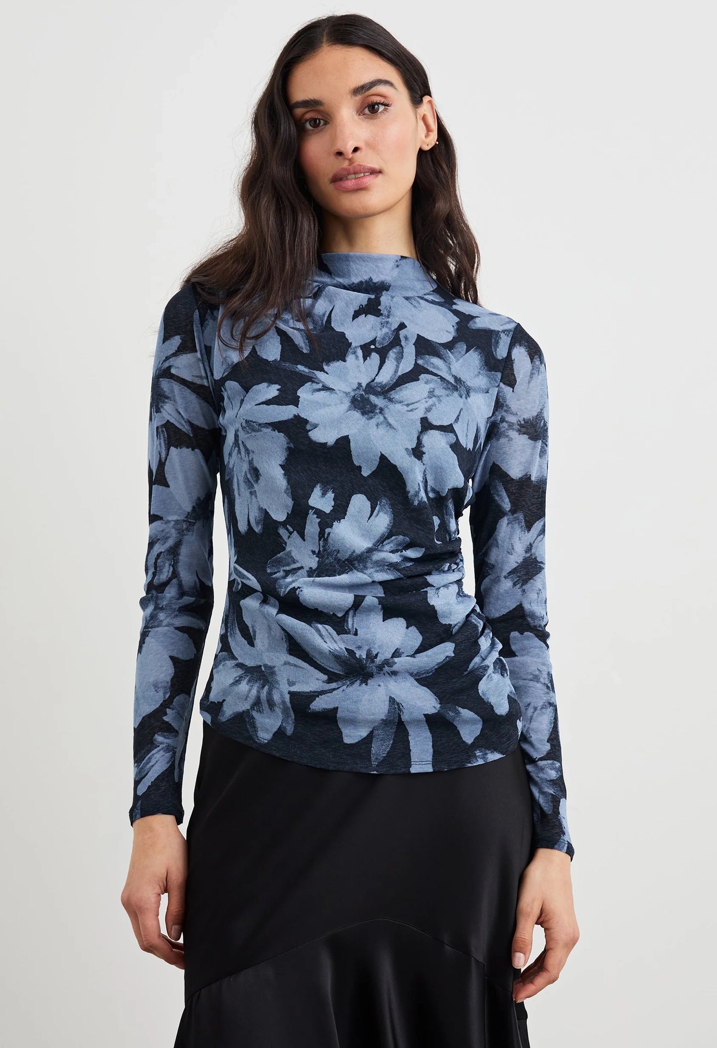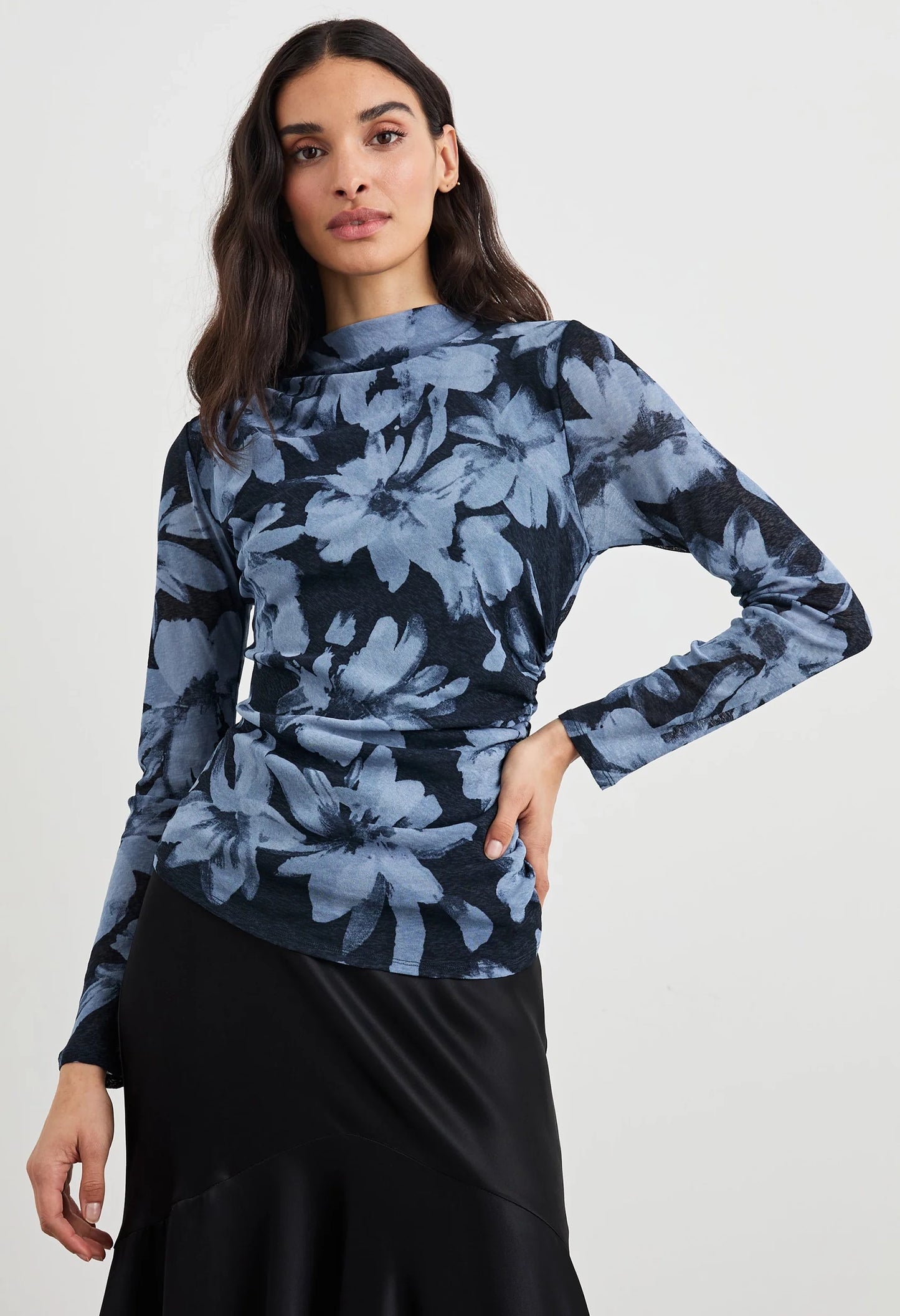 A modern take on the classic long sleeve, the Joelle top is crafted from a soft gauge jersey with an asymmetrical mock neck with shirring details from the right shoulder. Pair with a skirt or your favourite jeans to elevate any outfit.